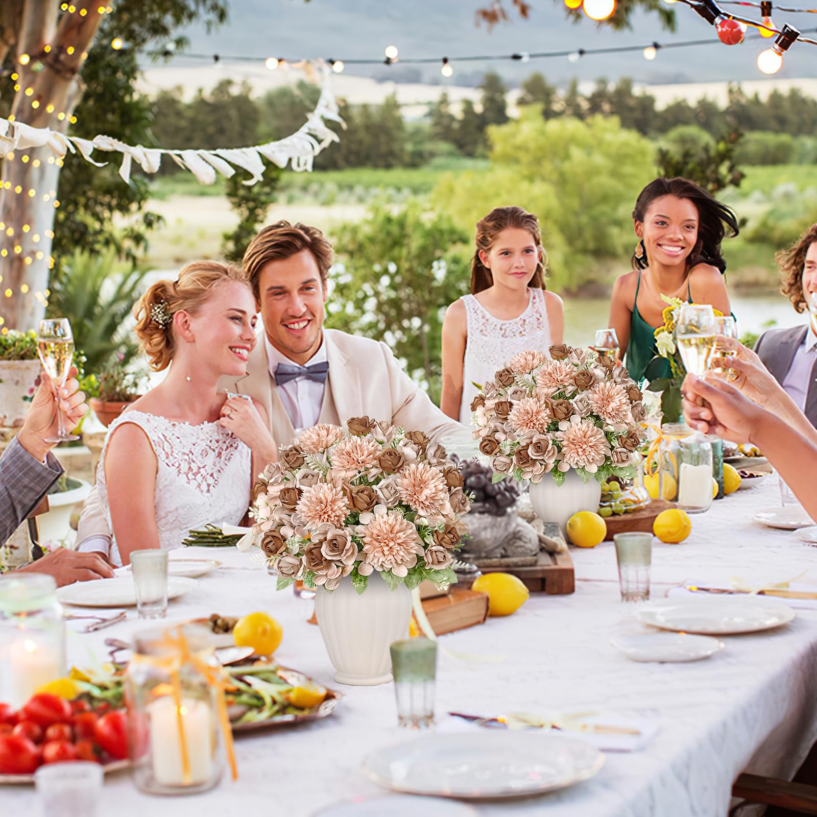 Les feuilles artificielles sont positionnables, les tiges en plastique sont flexibles. Apportez une élégance éternelle à n'importe quelle pièce. Le bouquet artificiel de DEMIUKO combine des hortensias, des roses et des feuillages réalistes pour créer une superbe décoration sans effort. Vous pouvez choisir 2 ou 4 bouquets pour des arrangements luxuriants dans des vases, comme décoration de table ou pour des bouquets. Pourquoi vous allez adorer ces fleurs en soie : Charme de mariage : créez de magnifiques bouquets de mariée, des arrangements d'autel ou des pièces centrales pour la réception, qui restent impeccables du mot oui à la dernière danse. Fleurs artificielles roses avec vase - Fleurs artificielles dans un... Décoration De Mariage Et d'Événement--Les bouquets de roses artificielles convainquent par leurs pétales en soie, leurs tiges en plastique flexible et leurs tailles de plantes graduées. 【Bouquets Réalistes 2/4 De 30 Cm】--Chaque bouquet de fleurs artificielles de 30 cm est composé de roses, d'hortensias, de bourgeons et de feuilles vertes en soie artificielle. Couleurs : blanc, rose, violet, marron clair. Bouquets Artificiels Automne DEMIUKO Lot De 4 Automne Fleurs Bouquets De Fleurs Artificielles Hortensia Artificielle Bouquet de Roses et Hortensias 9 tetes Diametre 20 cm du... Les tons tamisés créent un aspect romantique intemporel - Idéal pour les mariages vintage, les tables de chevet ou les décorations de coiffeuse. L'abondance ronde des hortensias contraste efficacement avec les pétales de rose délicats en forme de coupe - Chaque disposition de tige donne un aspect raffiné et délicat, parfait pour les arrangements décoratifs. 【Fleurs Artificielles Délicates Et Élégantes】--Le bouquet de roses artificielles et d'hortensia mesure environ 30 cm de haut. Reste belle toute la journée ! Bouquets de Fleurs Artificielles Premium (Lot de 3 + 1 Offert 【Au Choix Dans Des Couleurs Très Délicates】--4 nuances élégantes : blanc pur, rose pâle, violet chic et beige vintage s'intègrent harmonieusement dans les compositions. Cadeau bien pensé : surprenez vos proches avec un bouquet qui ne se fane jamais - Avec un vase, c'est un cadeau précieux et durable. Transformez votre pièce dès aujourd'hui. Décoration sans effort : pas de taille ni d'arrosage.