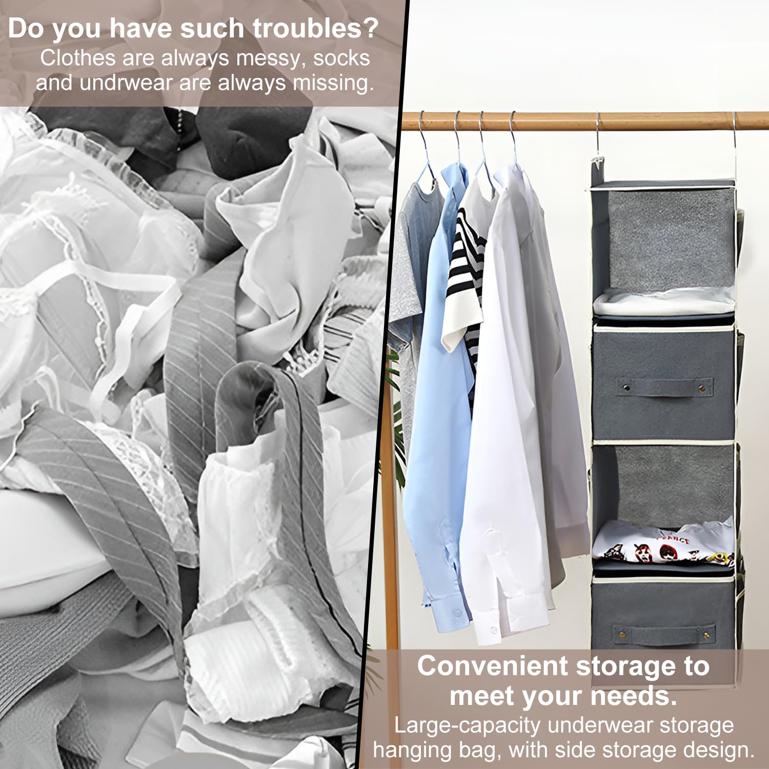 Les chapeaux vous permettent de tirer le meilleur parti de l'espace de votre placard. Range Vêtements Placard Avec Poches Latérales Lot De 4 Boite Rangement, Bacs De Rangement Pliables Pour Vêtements, Organiseurs Pliables Et étagère Suspendue Plus besoin de chercher des pièces perdues. Créer un espace de rangement supplémentaire : l'organiseur est pliable et pliable, étagères parfaites pour la chambre à coucher. Elle est assez rigide pour garder sa forme bien lorsqu'elle est suspendue dans la penderie. Mise à niveau de la garde-robe : le design ouvert des étagères suspendues pour la garde-robe vous permet d'accéder rapidement aux objets dont vous avez besoin, de sorte qu'il est très pratique de mettre ou de retirer les vêtements de l'organisateur d'étagère suspendu. Tiroirs Amovibles Tissu Organisateurs De Rangement Suspendus -Six compartiments pour ranger vos vêtements à l'avance. L'organisateur de placard portable est également une solution idéale pour ranger les vêtements des enfants. Le rangement pour vêtements suspendus est fabriqué en matériau non tissé de haute qualité, chaque couche a un carton comme support solide, il est donc assez rigide pour garder sa forme pendant qu'il est suspendu dans l'armoire. Comme elle ne prend pas de place sur le sol, elle peut créer plus d'espace de rangement pour les vêtements, chaussures, sacs et autres objets, de sorte que vos articles sont bien organisés. Idéal pour la chambre à coucher, la chambre d'enfant, le dortoir d'étudiant et l'organisation de l'armoire. Sacs de Rangement pour Lit Mezzanine ou Dortoir,Sac de Chevet à... Lot de 2 organiseurs de rangeent à suspendre au-dessus de la porte... La conception ouverte vous permet d'accéder rapidement à chaque catégorie, ce qui vous évite de perdre du temps à chercher inutilement. L'organisateur de penderie est facile à installer, il suffit de l'attacher à n'importe quel poteau et vous aurez un espace de stockage supplémentaire. Poches latérales gauche et droite, 18 au total, pour ranger sous-vêtements, chaussettes, écharpes, gilets, ceintures et autres petits objets. Description du produit Vous avez du mal à ranger les petits objets à la maison ? -Essayez cet organisateur de placard suspendu pour maximiser l'espace vertical, réduire le gaspillage d'espace et créer plus d'espace de rangement pour les placards.
