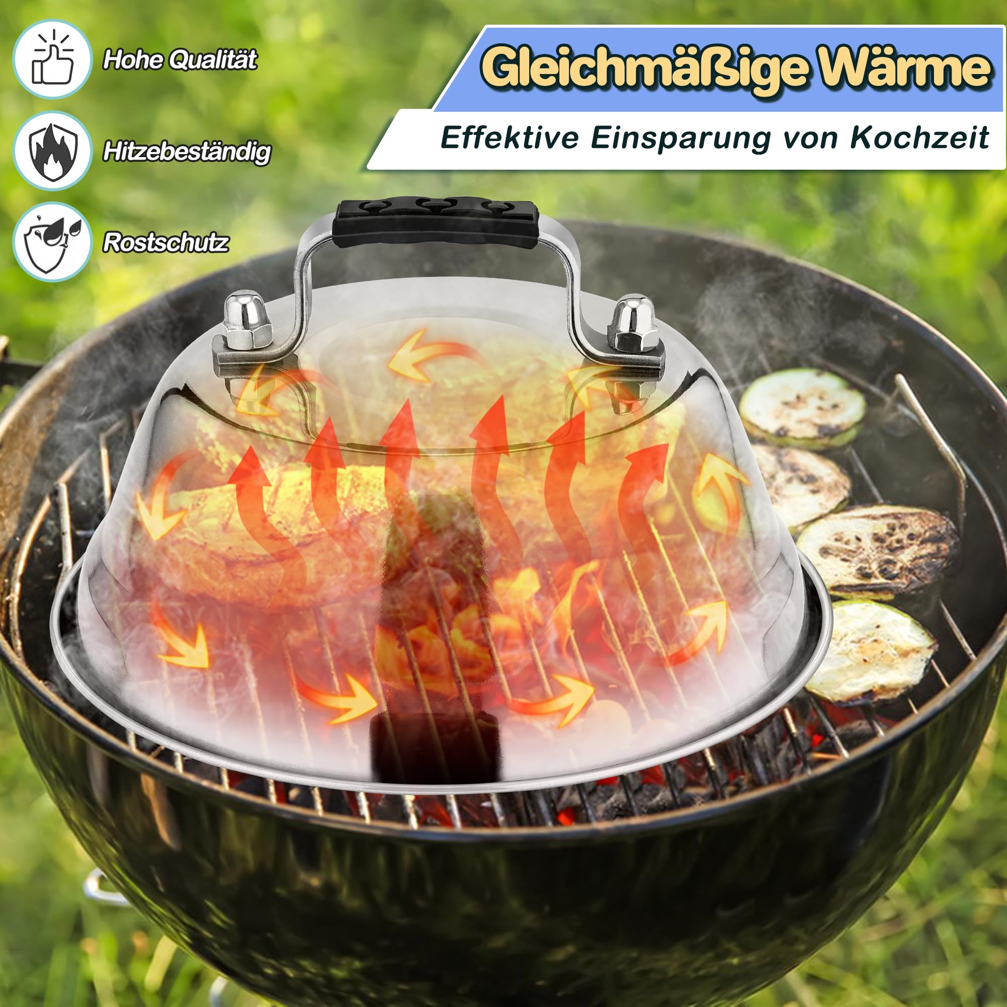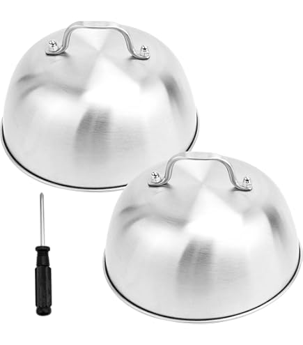 Leonardo Lot de 2 cloches Twenty 4 avec bouton et plateau à gâteau sur ACTOYS Presse à Burger, Presse Steak Haché, 304 Acier Inoxydable oule... Cloche A Fromage Cloche à Burger HaWare Lot De 4 Cloches à Hamburger En Acier Inoxydable Avec Poignée En Caoutchouc - Pour Barbecue, Steak, Fromage, Teppanyaki, Extérieur Et Intérieur - Passe Au Lave-vaisselle - 16,8 Cloche Lave-vaisselle Poignée Silicone Pourquoi choisir le lot de 2 cloches à hamburger HaWare en acier inoxydable ? 1., Fabriqué en acier inoxydable de haute qualité, sain et sûr pour votre utilisation quotidienne., 2., 0,6 mm d'épaisseur ne se déforme pas et ne se tord pas, robuste et durable pour les années à venir., 3., Surface miroir, toujours brillante comme neuve, facile à nettoyer et passe au lave-vaisselle., 4., Poignée en silicone anti-brûlure pour une utilisation sûre, design ergonomique pour une prise en main confortable., 5., Le bon espace pour collecter la chaleur, cycle uniforme efficace et efficace, économise du temps de cuisson., 6., La cloche de barbecue convient non seulement pour cuisiner toutes sortes d'aliments fumés tels que la viande, les hamburgers, les saucisses, les légumes, etc. Contenu de l'emballage : Matériau : acier inoxydable 18/8 + poignée en caoutchouc Finition : poli brillant. Livré avec un tournevis pour un montage facile Artisanat bien pensé - La cloche à hamburger est dotée d'une surface réfléchissante, toucher lisse sans zones rugueuses pour protéger votre main des rayures, nettoyage facile même à la main, passe également au lave-vaisselle pour vous éviter les tracas, l'aspect poli miroir garde les... mais peut également être utilisée pour garder les aliments au chaud. Rincez abondamment à l'eau chaude pour enlever les résidus de fabrication., 2., Après utilisation, veuillez nettoyer et sécher et ranger dans un endroit sec pour garantir une plus longue durée de vie., 3., Ne mettez pas la poignée en contact direct avec des flammes nues. Cuisson efficace - La cloche à hamburger crée un environnement semblable au four où la chaleur peut cirer uniformément à l'intérieur, de sorte que le fromage fond rapidement, empêche la combustion des patties et crée des cheeseburgers juteux, le temps de cuisson est efficacement raccourci, les éclaboussures de graisse chaudes appartiennent au passé et la chaleur jusqu'à servir et éviter les taches Finition exquise - Bords roulés lisses sans zones rugueuses, sûr et pratique à utiliser, acier métallique lourd et construction robuste empêche la déformation ou la déformation, taille compacte de 23 x 8,5 cm, facile à transporter et à transférer, confortable pour l'intérieur et l'extérieur, surface polie miroir, lavage à la main est un jeu d'enfant, coffre-fort au lave-vaisselle, économise du temps et des efforts