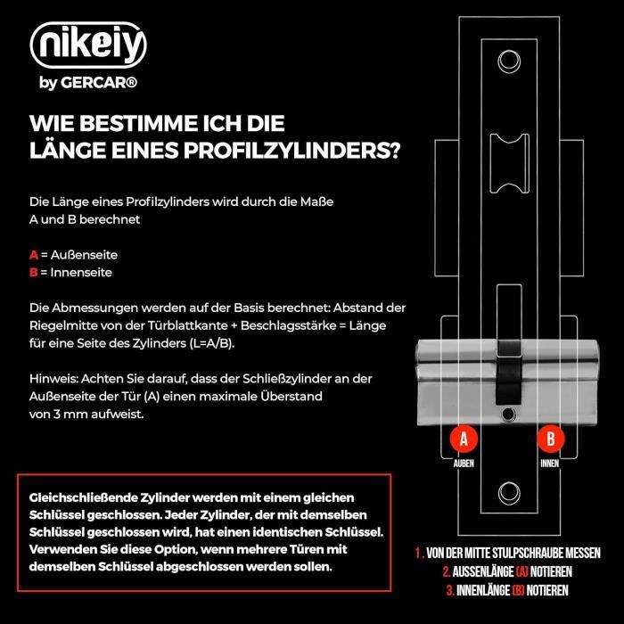 Idéal pour une utilisation tout au long de l'année. Ce kit est idéal pour remplacer les serrures perdues ou endommagées ou pour étendre les systèmes existants. Kit Sécurité équipement Voiture Pro Lot De 4 Cylindres De Serrure Profilés, 40-55, Massifs, À Fermeture Cylindres Serrure Thule One Key Barres à came de rechange pour serrure et - ou loquet avec arbre fileté... Plus de sécurité, plus d'ordre, plus de confort., Swiftctrl. Les cylindres robustes sont fabriqués en alliage d'aluminium et de zinc de qualité supérieure avec un noyau en acier inoxydable. Particulièrement pratique : tous les cylindres peuvent être actionnés avec la même clé - Idéal si vous souhaitez utiliser plusieurs supports avec une seule clé. Utilisation universelle : idéal pour les coffres de toit, les porte-vélos, les porte-skis, les supports de kayak, les planches de surf ou les porte-bagages. Remplace les serrures cassées ou perdues pour plus de sécurité lors de vos déplacements. Ils sont spécialement conçus pour une utilisation en extérieur et résistent facilement à l'humidité, à la corrosion et aux contraintes mécaniques. Facile à comprendre même pour les novices. Le montage est très simple : déverrouiller le trou de serrure, insérer la clé de montage, enfoncer le cylindre – votre nouveau cylindre de serrure est prêt à l'emploi. VEVOR barre transversale de toit pour JEEP GRAND CHEROKEE 2011-2021 en... Pratique pour remplacer ou étendre les systèmes existants - Utilisation à une seule touche. Il suffit de le retirer à l'envers. Parfait pour une utilisation sur les coffres de toit, les porte-vélos, les porte-skis, les supports de canoës, les porte-kayaks ou les porte-bagages. GERCAR Lot de 4 cylindres de serrure à bouton 45/45 à fermeture