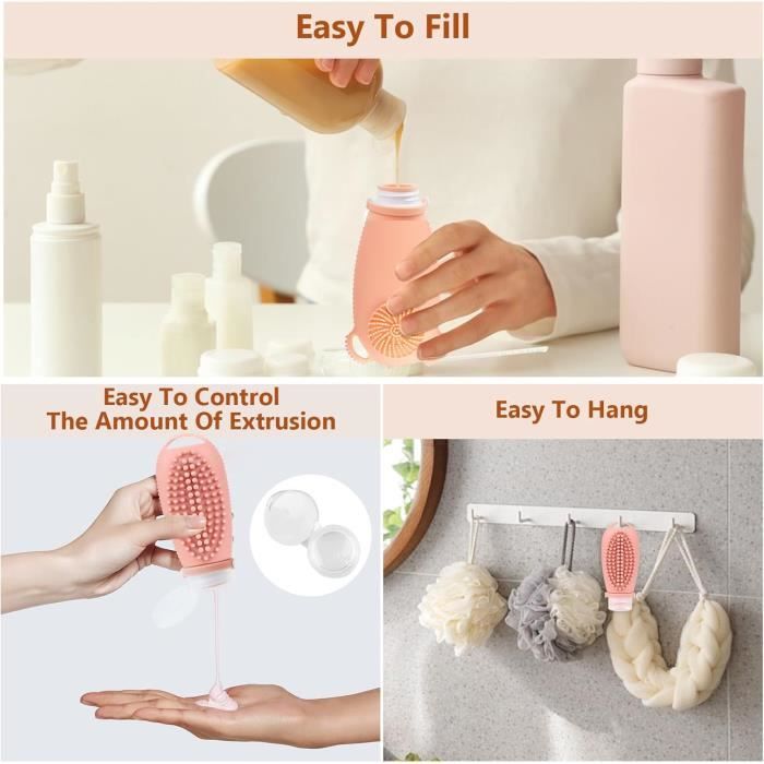 Kit Flacons Voyage étanches Viaggio Accessori Utili Kit De 4 Flacons Voyage Silicone 100 Ml - Avec Sac Étanche Pour Toiletries Accessoire Valise Produits Flacons TSA Sans BPA Petit Contenant Voyage Flacon Voyage En Silicone Set - 18 Pièces Contenant Voyage - Kit Voyage Avion - Bouteille De Voyage Accessoires Kit Avion Trousse De Toilette Flacons de Voyage en Silicone, Revivoer Flacon Voyage Rechargeable et... En outre, il a une bonne élasticité, ne se déforme pas facilement, est facile à remplir et à emballer Légers et compacts, ils se rangent facilement dans une valise, un bagage à main ou même un sac à main. Ils sont amovibles, lavables et réutilisables, ce qui réduit le besoin de récipients en plastique jetables et contribue à minimiser vos déchets de voyage ! 💖Spécifications: -Nom du produit: Set de bouteilles de voyage en silicone -Matériau: Silicone -Couleur:Couleur violette -Taille: Taille du set : 18., 5*3., 5cm 📜 Contenu de l'emballage: Bouteille distributrice de 90 ml*2 Bouteille de 60ml*2 Bouteille en plastique de 20 ml*4 Grattoir*4 Flacon pulvérisateur*2 Brosse*1 Entonnoir *1 Autocollant *1 ✨✨ Fonctionnalité: Il est fabriqué en silicone de qualité alimentaire, respectueux de l'environnement, sain, doux et agréable au toucher. 【Matériel sûr】:Our Accessoires de Voyage Aéroport Contenant Fabriqué en silicone de haute qualité, non toxique, sans BPA, sécurité alimentaire et certifié TSA, sûr, durable, inodore, rechargeable et réutilisable Conception réfléchie】:Our Flacons de Voyage en SiliconeBien que contenant la taille de la capacité, mais également livré avec une feuille de 20 étiquettes autocollantes, vous pouvez facilement distinguer le contenu de chaque bouteille, et parfait pour organiser vos articles de voyage 【Scope d'application】 : Notre Bouteilles de voyage réutilisables en silicone Convient pour le shampoing, l'après-shampoing, le gel douche, la lotion, etc. Flacon Et Pot De Voyage - 11 Flacons Étanches Bouteille Contenant Vide...
