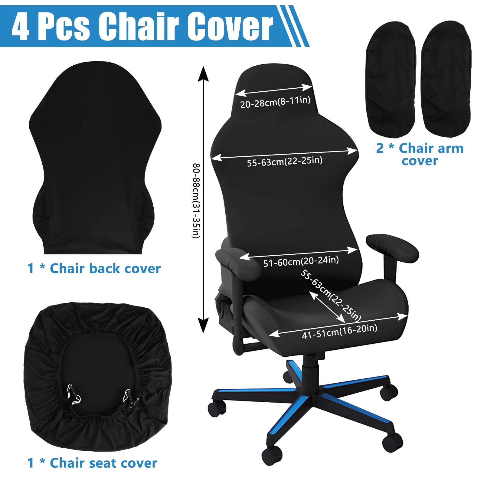 1., Lot de 4 housses de chaise de gaming avec 2 accoudoirs, 1 housse de dossier de chaise, 1 housse de siège pour chaise d'ordinateur, DX Racing, PC La housse de chaise de jeu est fabriquée en polyester de haute qualité, doux, durable, extensible, antidérapant, anti-poussière, anti-taches, anti-rayures, lavable, amovible et facile à installer. Ensemble de housses de chaise de jeu : 4 housses de chaise de jeu comprenant 2 housses d'accoudoir, 1 housse de dossier de chaise, 1 housse de siège ; hauteur applicable du dossier : 80-88 cm, largeur du dossier supérieur : 20-28 cm, largeur du dossier central : 55-63 cm, largeur du dossier inférieur : 51-61 cm, largeur d'assise : 41-51 cm, profondeur d'assise : 55-63 cm, largeur du dossier inférieur : 51-61 cm, largeur d'assise : 41-51 cm, profondeur d'assise : 55-63 cm., 10 cm Dimensions : Hauteur du dossier : 80-88 cm. Caractéristiques du produit : Matière : polyester., Couleur : noir. En même temps, la housse de chaise peut également changer l'apparence de la chaise à des fins décoratives. Même si votre chaise est vieille, les housses pour chaises peuvent lui donner un tout nouveau look, tout comme posséder une nouvelle chaise. Housse Chaise Bureau Lavable Amovible JIANGZHIB Lot De 4 Housses De Chaise De Jeu, Noires, Extensibles Et Amovibles, Lavables, Pour Chaises D'ordinateur Et Pivotantes Housse Anti-poils Chat HOUSSE DE CHAISE - HOUSSE DE MEUBLE,A6-1Pc Chair Cover--Housse de Contenu de la livraison : 1 housse de dossier de chaise., 1 housse de siège., 2 housses d'accoudoir. La housse de chaise de bureau protégera votre chaise avec un nouveau look, et avec la protection de cette housse de chaise de jeu, elle donnera également un bel aspect à votre chaise., 2., Housse de chaise de jeu extensible pour protéger vos chaises de bureau contre les dommages causés par les animaux domestiques. Installation facile : il suffit de glisser le bord de la housse de siège dans le siège pour la maintenir stable et la ranger. Velours Housse Assise Chaise Extensible, Doux Amovible Housse De Chaise... Profondeur d'assise : 55-63 cm. Large application : la housse de chaise protège votre chaise de bureau de la poussière, de la saleté et des rayures. Couleur noire classique, convient à la plupart des gens. 6pcs Housse de Chaise Extensible Noël Imprimé Couverture de Chaise pour... Ensuite, tirez la housse de siège sur le dossier. Superbe housse de chaise de jeu pour chaises d'ordinateur, chaises de jeu, fauteuils, chaises de bureau. Largeur du dossier central : 55-63 cm.
