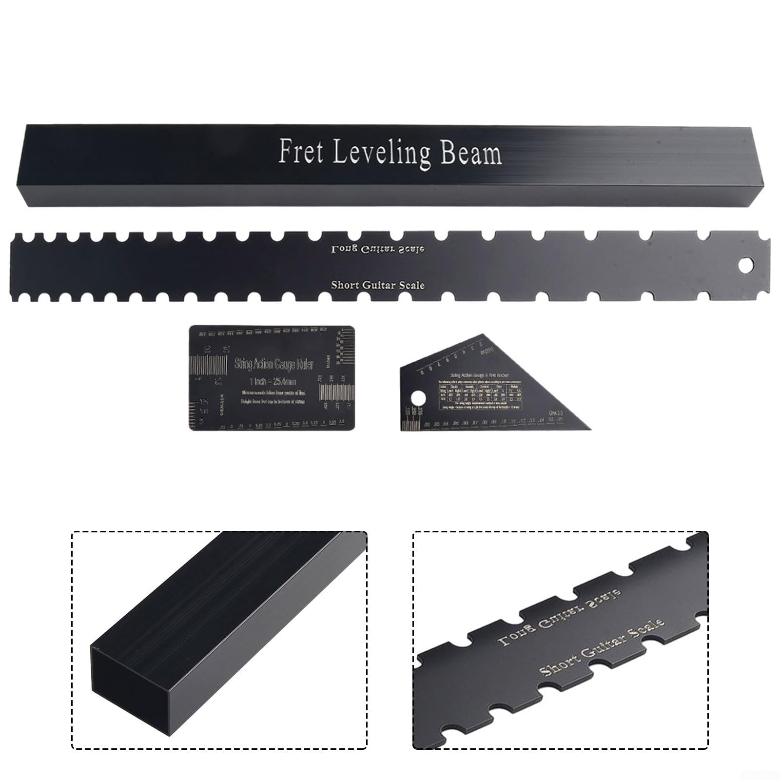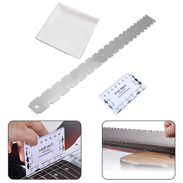 Nivellement Frettes Poutre Ponçage Totority Lot De 4 Outils De Luthier En Acier Inoxydable Pour Jauge Hauteur Cordes Ensemble D'Outils de Guitare en Acier Inoxydable Luthier à Instrument de Luthier en acier inoxydable, dispositif de réparation de nivellement de frettes... * Manche de guitare à bord droit cranté : design à double échelle, fonctionne bien avec la plupart des guitares. * Merveilleux pour vérifier la rectitude du manche de guitare et le plat de la frette et des frettes. Caractéristiques : Nom du produit : ensemble d'outils de luthier pour guitare. Caractéristiques : * Kit d'entretien et de réparation de guitare : vous recevrez 1 règle de nivellement de guitare, 1 règle de corde, 1 outil de nivellement de frette et 1 jauge de hauteur de corde à bascule de frette, différents outils peuvent répondre facilement à vos besoins. Matériau : acier inoxydable., Couleur : noir., Poids : environ 500 g., Quantité : 4 pièces. Poutres de ponçage : ces poutres de ponçage sont parfaites pour niveler les frettes et les touches de contour, vous permettant de personnaliser votre instrument avec facilité. Bord droit à double échelle : le bord droit cranté dispose d'un design à double échelle qui fonctionne bien avec la plupart des guitares, vous aidant à maintenir la droite du manche et la planéité de la touche sans effort. Le Kit Comprend Plusieurs Outils, Dont Un Niveleur De Frettes De 40,6 Cm, Une Lime à Frettes Et Un Manche De Guitare Cranté à Bord Droit
