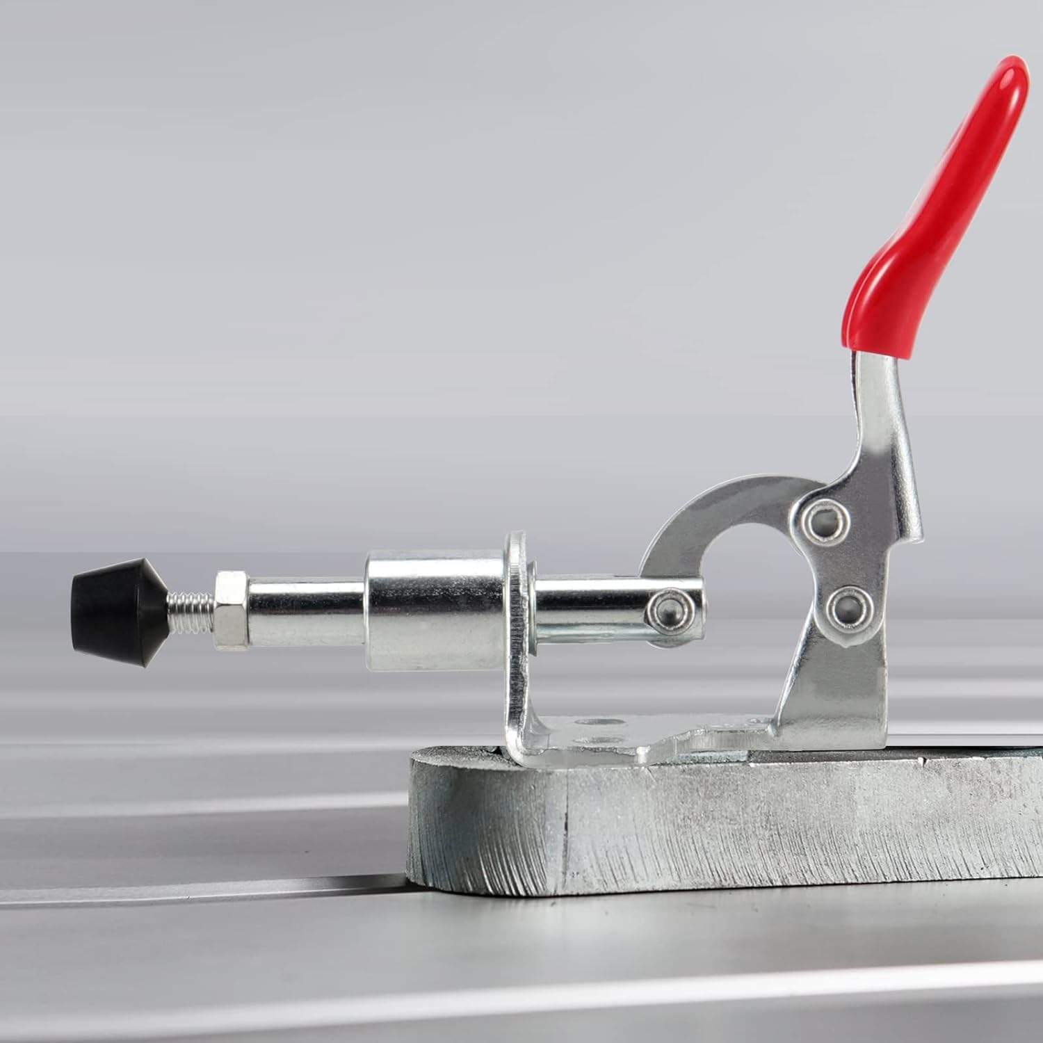 Convient pour maintenir rapidement les tôles ou les circuits imprimés. Largement utilisé : GH-301 AM est un outil de serrage fixe pour le traitement ou l'assemblage, sûr et fiable avec une grande efficacité. Pince Bascule Capacité 45kg Lot De 4 Pinces à Compression à Dégagement Rapide En Fer Galvanisé Pour Pinces Soudage INGDAUM 1 pièce pince à bascule vertical, force de maintien 180 kg, GH-101D, pince à tige de poussée à dégagement rapide, pince à genouillère, plaque de... La pince à bascule réglable peut réduire considérablement le temps de fonctionnement de différentes pièces d'usinage, d'assemblage et de serrage. Convient pour maintenir rapidement des tôles ou des circuits imprimés. Le fer galvanisé sur la surface est efficace pour prévenir l'oxydation. Longueur maximale : 4-1 / 4 ''., Hauteur maximale : 7,8 cm Matériau durable : le dispositif de blocage rapide horizontal est fabriqué en acier au carbone laminé à froid recouvert d'un revêtement en zinc. Il suffit de tirer ou d'appuyer pour réparer ou desserrer. Capacité maximale de retenue : 45 kg. C'est un outil parfait pour économiser votre temps et vos efforts. Pince à bascule zinguée Levier triangulaire - ZJCHAO - 4002 - Galvanisé - Bricolage agrafe... Poignées en vinyle rouge résistant à l'huile et à la saleté avec pointes de pression en caoutchouc réglables Angle d'ouverture de la poignée : 190 degrés. Scénarios d'application : Les pinces à bascule en métal conviennent pour le fonctionnement de machines, le soudage, le moulage, l'assemblage d'appareils électroniques et d'autres domaines. Lot De 4 Pinces à Bascule Avec Dégagement Rapide, Type Levier Horizontal Pour Machine Menuiserie Soudage 99030053
