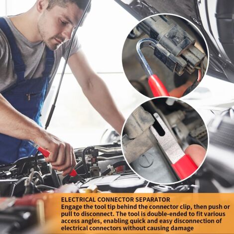 Contenu : 1 pince de déconnexion électrique coudée + 1 pied de biche. * Convient pour : installation électrique, réparation de voiture. Outils Voiture Lot De 4 Pinces De Déconnexion Robustes Pour Travaux Pince De Déconnexion électrique Automobile Nos pinces de déconnexion électrique automobile sont fabriquées en acier au carbone, ce qui les rend durables et résistantes à la rouille et aux dommages. La... *Quantité : 1 pièce, 2 pièces, 3 ou 4 pièces. *Compatibilité polyvalente : conçu avec des mâchoires de préhension réglables, cet outil s'adapte à une large gamme de formes de connecteur, simplifiant le processus de déconnexion électrique sans risque de dommage, ce qui le rend adapté à diverses tâches de câblage. *Couleur : rouge et argenté. [Utilisation légère et confortable] Dotée d'une poignée à double dureté et d'une construction légère, ces pinces permettent un fonctionnement confortable même dans les espaces restreints, ce qui rend la séparation non destructive des connecteurs pour une efficacité maximale. Contenu de l'emballage : Colis n° 1 : 1 pied de biche. *Pour une manipulation de précision : la conception à double tête permet un fonctionnement efficace, permettant aux utilisateurs de déconnecter facilement les connecteurs électriques automobiles en poussant ou en tirant, améliorant la précision et réduisant le temps passé sur chaque tâche. Colis n° 4 : 1 pince de déconnexion électrique droite + 1 pince de déconnexion électrique coudée + 1 pied de biche. *Matériau : acier au carbone. Pince de déconnexion électrique : lot de 4 pièces comprenant 4 outils de déconnexion et 8 extracteurs de broches pour des tâches complètes de réparation de connecteurs électriques automobiles ; fabriquées en acier à haute teneur en carbone avec poignées en plastique pour fournir une résistance durable et une résistance à la... Contenu 2 : 1 pince de déconnexion électrique droite + 1 pied de biche. Colis n° 5 : 1 pince de déconnexion électrique droite + 1 pince de déconnexion électrique coudée + 1 pince + 1 pied de biche., Remarque : 1., La couleur réelle de l'article peut être légèrement différente de celle des photos présentées sur le site Web en raison de nombreux facteurs tels que la luminosité de votre écran et la luminosité., 2., Les mesures étant prises à la main, les tailles indiquées peuvent varier légèrement. * Utilisation facile : avec une poignée à double dureté et un design léger, ces pinces permettent une utilisation à une main et une utilisation confortable même dans les espaces restreints, assurez-vous une séparation non destructive des connecteurs pour plus de commodité et d'efficacité. Extracteur de pince Pince de Type Ciseaux Extracteur Outil de
