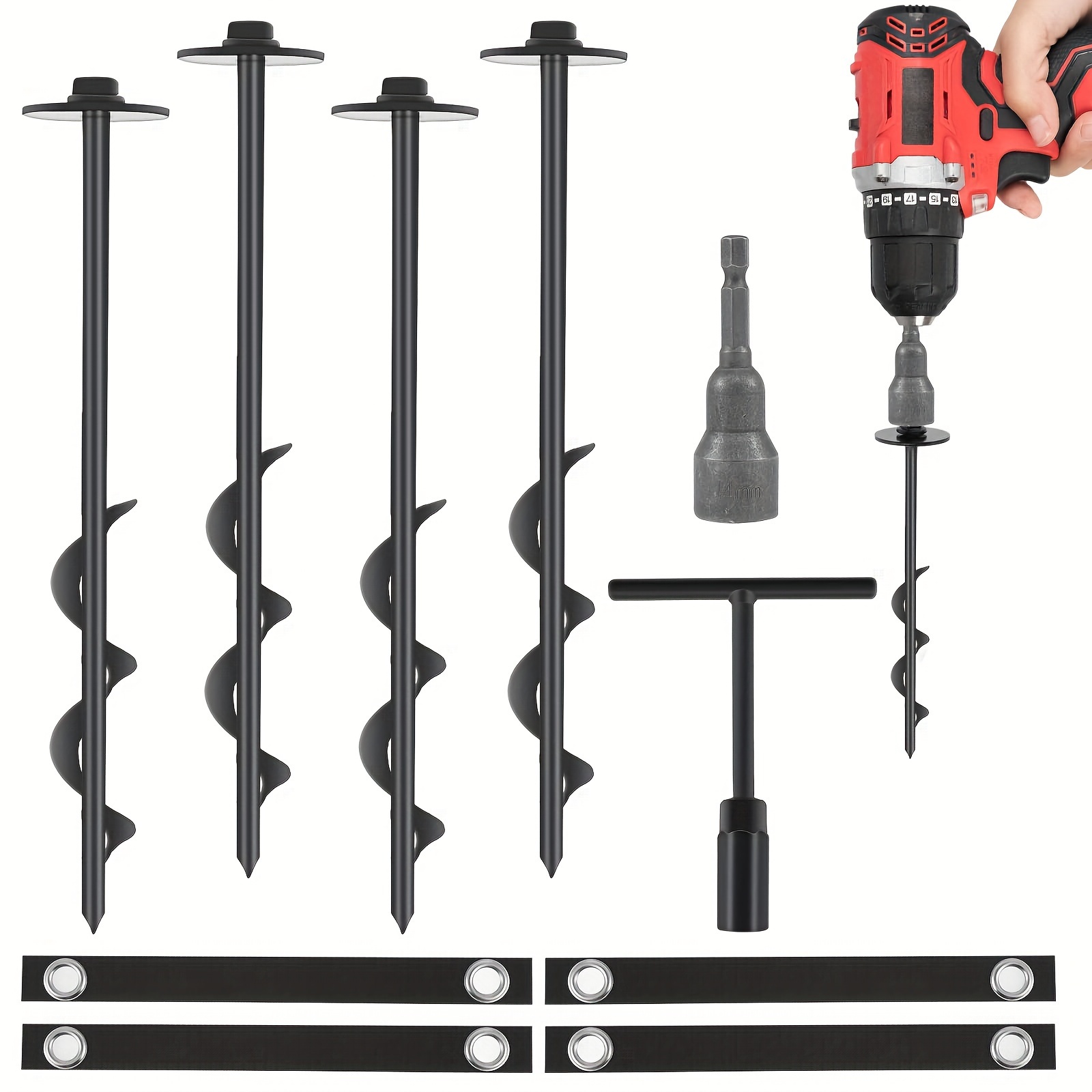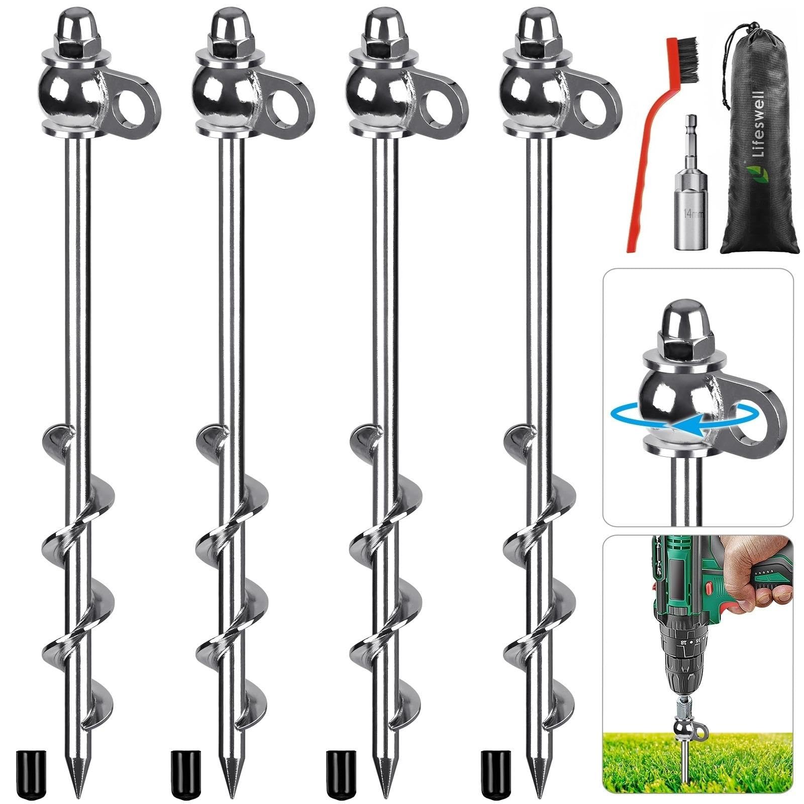 Piquets Fixation Vent Fort Sol Dur Rocheux Lifeswell Lot De 4 Piquets De Tente, Ancrages Au Sol Robustes De 30,5 Cm, Ancrages De Terre En Spirale Entièrement Soudés Pour Tentes De Camping, Trampolines, Abris De Jardin, Balançoires, Sécuriser Piquet Chien Lifeswell Anclajes de tierra de 12 pulgadas, 4 estacas de tienda de campaña resistentes, fáciles Stable et fiable : les pièces d'ancrage en spirale mesurent 12,7 cm de long et sont entièrement soudées à la connexion en spirale, perçant facilement les sols durs ou rocheux et offrant une pr ferme pour votre trampoline.Coupe-vent et antirouille : ce kit d'ancrage au sol est fabriqué en acier de haute qualité avec finition chromée... Ancrages au sol robustes : fabriqués en acier de haute qualité avec une finition chromée, nos ancrages de tente sont durables et résistants aux dommages et à la rouille, assurant une utilisation à long terme dans toutes les conditions météorologiques Stable et fiable : les ancrages en spirale entièrement soudés de 12,7 cm pénètrent facilement dans les sols durs ou rocheux, offrant un maintien ferme pour vos tentes, trampolines et autres installations extérieures, même en cas de vent violent Installation facile : livré avec une douille de 14 mm, vissez rapidement ces ancrages métalliques dans le sol à l'aide d'une perceuse. Utilisez un équipement de protection approprié lors de l'installation avec une perceuse. Installez-les en quelques minutes, ce qui permet d'économiser du temps et des efforts 【Satisfaction garantie】Si vous avez des questions sur le produit, n'hésitez pas à nous contacter, nous serons heureux de vous servir. Brevet américain en instance. Résistant au vent et inoxydable] Cet ensemble d'ancres de sol est fabriqué en acier de haute qualité avec une surface chromée, robuste et durable, pas facile à endommager ou à rouiller. Les piquets de sol pour camping résistent au vent fort et maintiennent votre tente stable et en sécurité