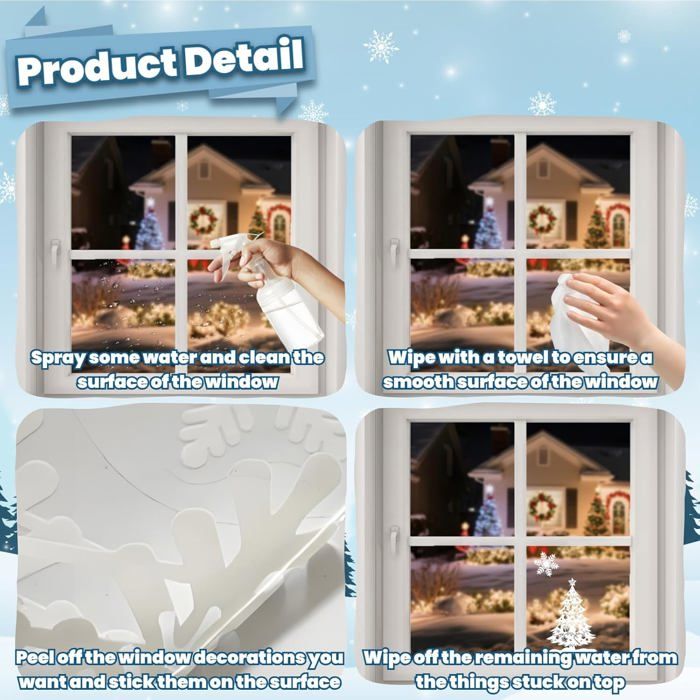 Autocollants PVC Réutilisables Lot De 480 Autocollants De Noël Flocons De Neige Pour Fenêtre Decoration Noel Fenetre Lot de 9 autocollants de Noël pour fenêtres, décorations de Noël, flocons de neige pour l'intérieur, pour portes et fenêtres en verre | Leroy Merlin Variété riche de flocons de neige : dans ce kit, vous trouverez un total de 480 flocons de neige répartis sur 8 feuilles. Les flocons de neige décoratifs pour... Vision double face : la conception double face garantit que les motifs complexes apparaissent clairement des deux côtés, offrant des effets décoratifs complets depuis l'intérieur et l'extérieur afin d'améliorer l'attrait visuel et le raffinement. Installation facile : il suffit d'humidifier la surface de la vitre avant de l'appliquer. Éliminez facilement les bulles d'air pendant l'installation. 480 Pièces Autocollants de Fenêtre de Noël, Blanc Autocollant Noel Fenetre Flocon de Neige, Réutilisable Statique PVC pour Fenêtre Vitrine Décoration de Noël Matériau de qualité supérieure : fabriqué à partir d'un matériau de haute qualité pour les autocollants de fenêtre, il adhère solidement aux surfaces lisses comme le verre et les miroirs sans les endommager. Maximise l'ambiance festive : motifs finement gravés représentant des flocons de neige, des cloches et des couronnes de Noël avec des textures nettes, complétés par l'inscription « Merry Christmas ». Transmet avec précision l'esprit de Noël, améliorant le marketing de la marque pour les fêtes ou rehaussant les traditions festives à la maison. Adhésifs auto-adhésifs : Sans colle, ces décorations de Noël pour fenêtres adhèrent à vos vitres tout seules. Décollez-les ensuite sans abîmer le verre ni la décoration !Matériau de qualité supérieure : Fabriqués en PVC de haute qualité, ces décorations de Noël pour fenêtres sont inodores, durables et réutilisables. Les flocons de neige se collent et se décollent facilement...