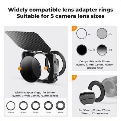 Le filtre à densité neutre variable JJC ND2-ND2000 a différentes tailles de filetage disponibles de 40,5 à 82 mm. JJC Filtre ND gradué 49 mm, filtre à densité neutre graduelle pour objectif Canon EF 50 mm F1.8 / EF-M 15-45 mm F3.5-6.3 / RF-S 10-18 mm F4.5-6.3, pour Sony... Parfait pour la photographie de paysage, la vidéographie, les scènes dynamiques, comme les chutes d'eau, les ruisseaux, les vagues, etc. Il réduit la quantité de lumière atteignant le film sans affecter la couleur pour obtenir l'effet désiré sans dominante de couleur. Filtre Nd 82mm JJC Filtre ND Variable De 49 Mm (ND2 – ND2000) Filtre D'objectif à Densité Neutre Réglable, Revêtement 18 Couches, Verre Optique HD, Pour Objectif D' Appareil Photo Reflex Numérique, Photographie De Filtre Densité Neutre Variable Le filtre ND et la taille de filetage du capuchon d'objectif compatible sont inférieurs : 40,5 mm à 43 mm ; 43mm-Ф46mm; 46mm-Ф49mm; 49mm-Ф52mm; 52mm-Ф55mm; 55mm-Ф58mm; 58mm-Ф62mm; 62mm-Ф67mm; 67mm-Ф72mm; 72mm-Ф77mm; 77mm -Ф82mm; 82mm-Ф86mm; JJC ND2-ND2000 Le filtre à densité neutre variable est spécialement conçu pour filmer des scènes dynamiques, telles que des cascades, des ruisseaux, des vagues, etc. Il deviendra un bon partenaire pour votre photographie de paysage. Revêtement 18 couches sur la surface du verre : filtre anti-rayures, anti-traces de doigts, antistatique, résistant à l'huile et à l'eau. Meilleur contrôle des paramètres d'exposition. La densité neutre peut être ajustée en continu de ND2 à ND2000 en faisant pivoter la partie supérieure du cadre, ce qui résout efficacement le problème du transport de plusieurs filtres ND. Ce filtre est livré avec un boîtier de filtre délicat étanche à l'humidité (sauf le filtre de 82 mm avec une boîte en PP) pour protéger votre filtre et pour un transport facile. Description du produit JJC ND2-ND2000 Le filtre à densité neutre variable est spécialement conçu pour filmer des scènes dynamiques, telles que des cascades, des ruisseaux, des vagues, etc. Le filtre est construit à partir de verre optique HD et possède un revêtement à 9 couches sur chaque surface du verre. Les multiples revêtements nano rendent le filtre anti-rayures, anti-empreintes... Le filtre est construit à partir de verre optique HD et possède un revêtement à 9 couches sur chaque surface du verre. Tailles de filetage disponibles de 49 à 82 mm, veuillez vérifier la taille de votre filtre. Filtre d'objectif / bague JJC Filtre ND variable 58mm ND2 à ND400