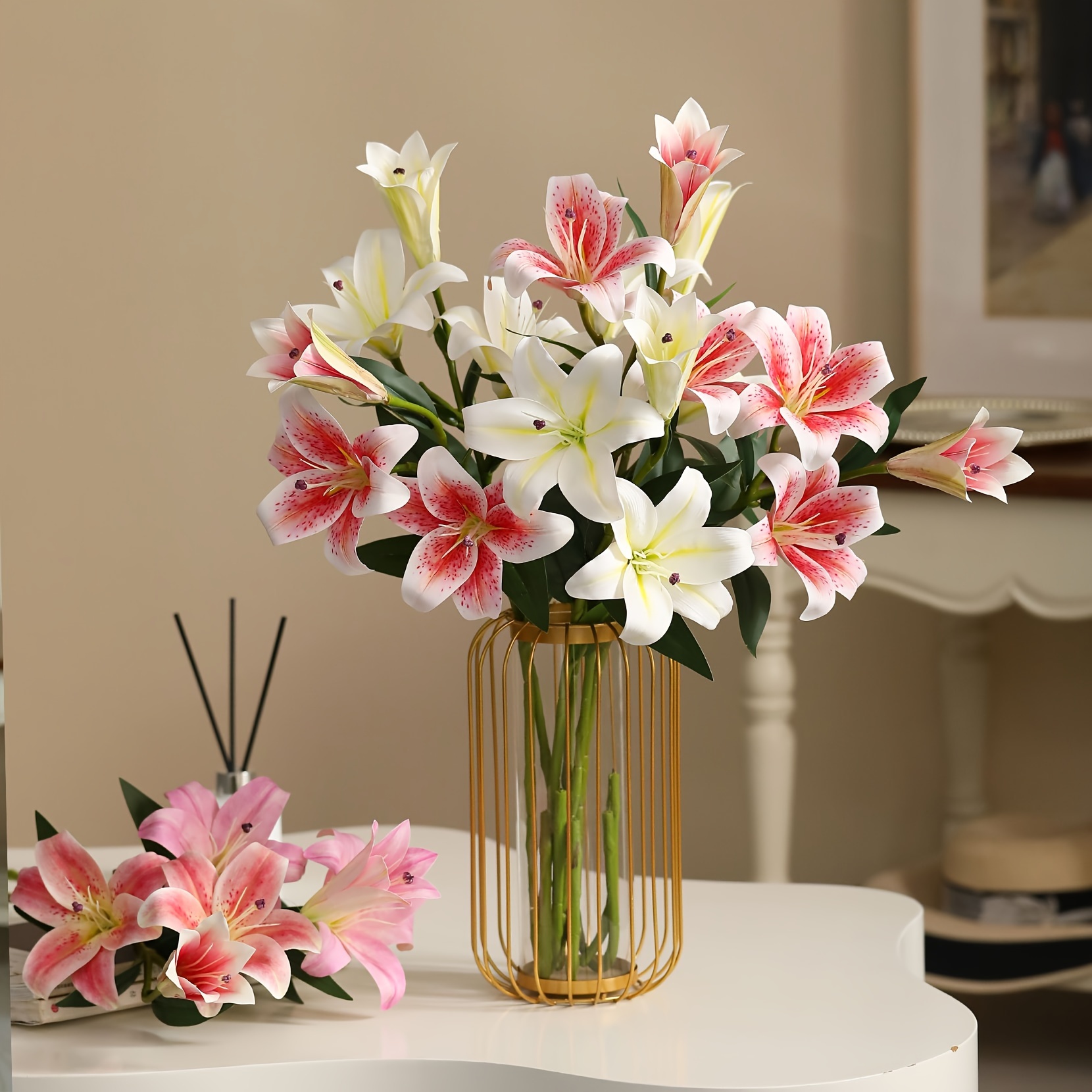 Décoration Maison Fleurs Réalistes Soie PVC Lot De 5 Fleurs Artificielles D'agapanthe Artificielles - Longueur : 75 Cm - Violet - Fleurs Décoratives Pour Compositions Florales - Décoration De Maison, Bureau Fleurs Artificielles Agapanthe Faire tenir des fleurs artificielles dans un grand vase ? | Wild Natur Bouquet de 3 fleurs d'hortensias couleur rose fait main en papier cr Ajoutez une touche de chaleur à votre maison, rendant le temps passé à la maison plus confortable et ajoutant une couleur unique à l'espace. Longueur totale env. 75 cm, diamètre de la fleur env. 14cm; Constituée de fleurs sphériques avec des fleurs fermées etquelques fleurs ouvertes de couleur... Largement applicable : convient pour la décoration de lieux tels que les maisons, les salons, les chambres, les cuisines, les caves à vin, les bureaux, les chambres d'hôtes, les hôtels, etc. Des grappes de belles petites fleurs sont recouvertes de halos, frais et beaux. La tige de la fleur est équipée d'un fil de fer doux, qui peut être plié et coupé sans Spécification : Matériel : tissu de soie + PVC souple Taille : environ 76 cm Couleur : blanc, bleu, rouge Emballage inclus : 3 tiges de fleurs artificielles Conseils chaleureux : En raison du transport pratique, nous plierons le poteau.