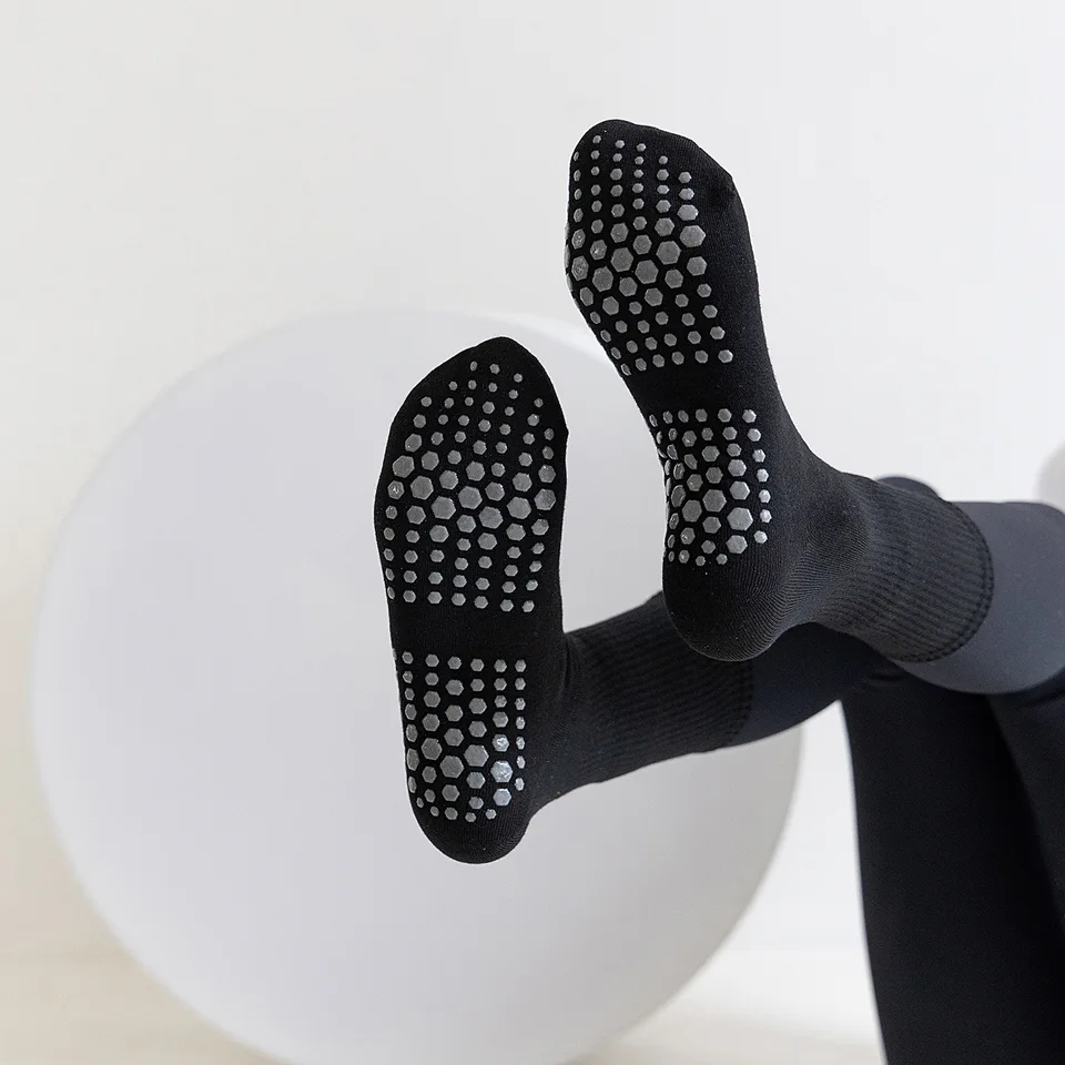 LA Active Grip Chaussettes Antidérapantes - Pour Yoga Pilates Barre Chaussette Pilates Fee Chaussettes De Yoga Intégrales Chaussette... Chaussettes Antidérapantes Pilates Yoga PUJANE Lot De 5 Paires De Chaussettes De Pilates Antidérapantes Pour Femme, Pour Yoga, Gym, Entraînement, 5 Paires (noir, Blanc Chaussette Pilates Femme D'épaisseur moyenne, elles conviennent à toutes les saisons, y compris l'été et l'hiver. Elles offrent une meilleure adhérence sur les sols en bois dur, les sols carrelés, les sols des salles de sport ou les équipements de Pilates, améliorant ainsi considérablement la stabilité et l'équilibre. Les chaussettes sont douces, respirantes et ont une fonction d'évacuation de l'humidité pour garder vos pieds secs et confortables et éviter la sensation de... Tissu Confortable: Les chaussettes antidérapantes femme sont fabriquées en coton respirant et doux pour la peau, pour un confort et une élasticité exceptionnels. Largement Utilisé: Ces chaussettes pilates femme sont parfaites pour une grande variété d'activités. Renforcez votre stabilité, améliorez vos performances sportives et évitez les accidents. Que vous pratiquiez le Pilates, le yoga, la course à pied ou le tennis, ces chaussettes antidérapantes pour femmes sont parfaites pour une variété d'activités.