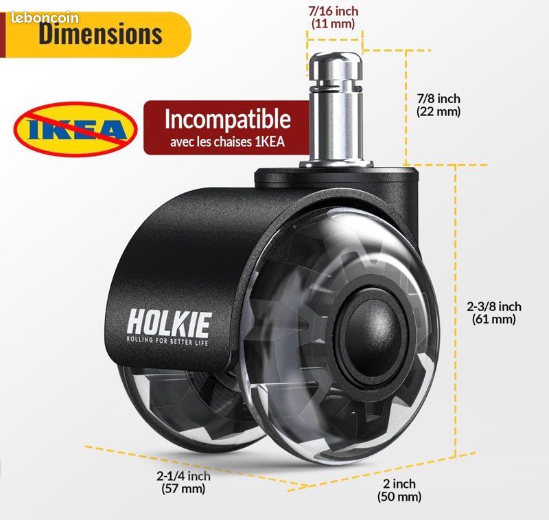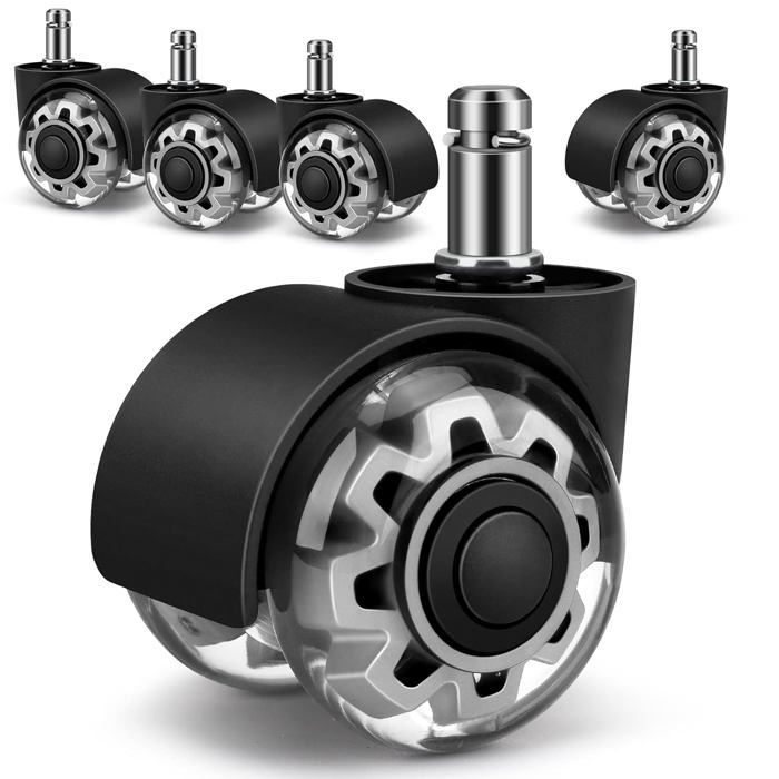 Roues Polyuréthane Chaise BASHLWUA Jeu De 5 Roulettes De Chaises De Bureau 11 Mm X 22 Mm - - Roulettes Pour Roues Rechange Chaise Blanc B - Roulettes De Chaise De Bureau En Polyuréthane Pour Ordinateur, 2.5 Pouces, 5 Pièces 5 pièces roulettes de Chaise de Bureau 48 mm pour Chaise d'ordinateur... Le diamètre de la tige et la longueur de la tige sont décisifs. Dans cette offre, les broches de chaise ont un diamètre de 11 mm et une longueur de tige de 22 mm. Contenu de la livraison : - 5 roulettes de protection de sol de rechange de 76 mm de diamètre, noires, Ø 11 x 22 mm Pour confirmer la compatibilité de ces roues de chaise de bureau, les anciennes roulettes de chaise doivent être démontées et mesurées. ✅ [ÉVITER LES RETOURS COÛTEUX - MESURER LA TAILLE DES ANCIENS ROULEAUX] Retirer les anciennes roulettes de la chaise de bureau et mesurer la taille de la tige au millimètre près. ✅ [ROULETTES DE CHAISE ADAPTÉES À LA PLUPART DES SOLS] Les sont en polyuréthane très résistant et glissent silencieusement sur les revêtements sol durs et souples tels que le parquet, le stratifié, etc. ✅ [ROULETTES INTERCHANGEABLES - FERMETURE AVEC VIS ET ÉCROU DE SÉCURITÉ] Ces rouleaux de parquet et de stratifié peuvent être retirés de monture à l'aide d'un outil et les roues de chaise peuvent être remplacées par des rouleaux en caoutchouc. Découvrez notre kit de 5 roulettes avec frein pour chaise de bureau, conçu pour offrir une stabilité instantanée et une mobilité fluide à votre fauteuil de bureau, chaise de direction ou chaise de laboratoire