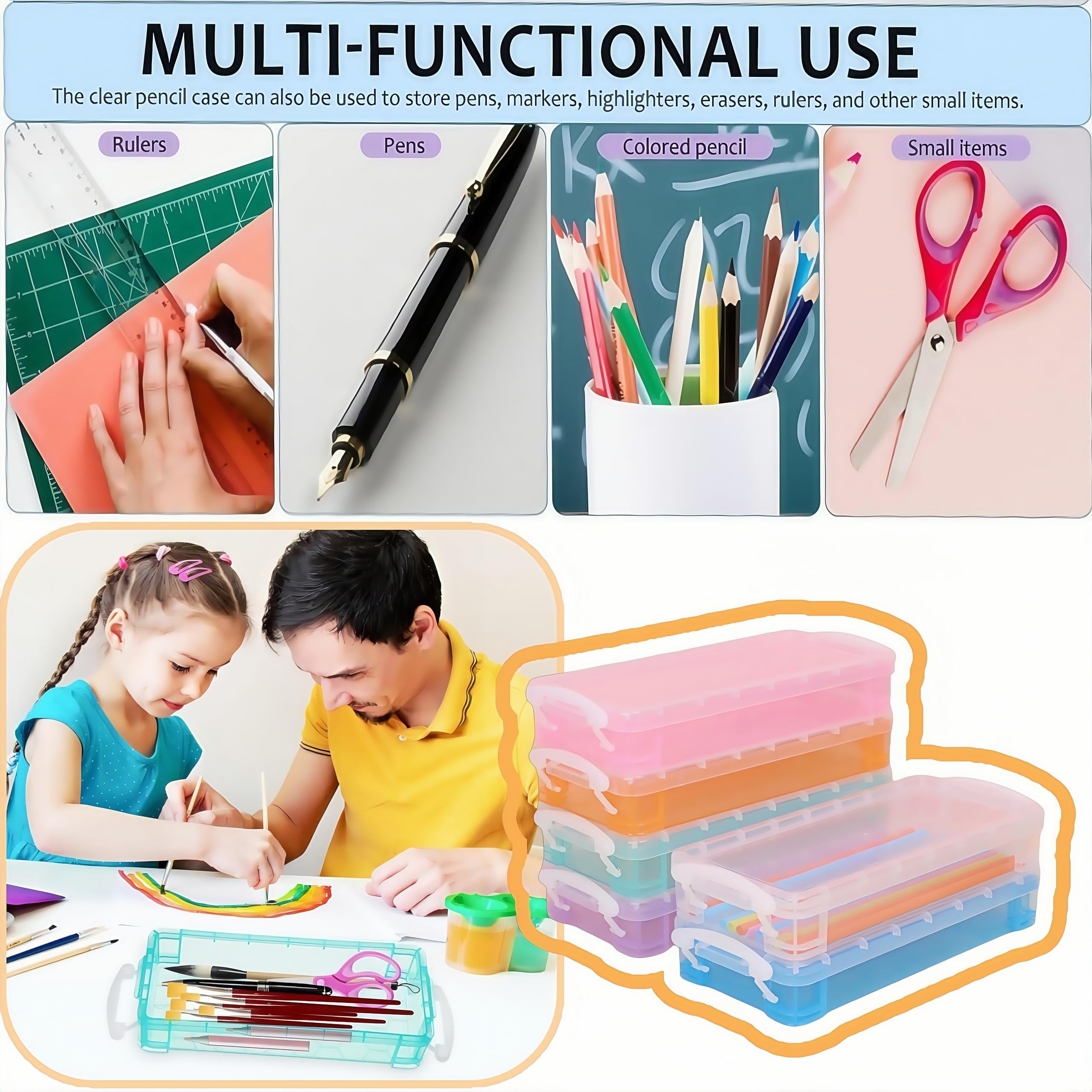 Boîte Rangement Stylos Plastique Transparent SOUJOY Lot De 6 Boîtes à Crayons à Double étage, Boîte à Boîtes à Crayons Transparentes Avec Couvercle Caractéristiques de la boîte à crayons : organisateur de marqueurs. Chaque boîte est fabriquée en plastique transparent de qualité supérieure et dispose d'un couvercle amovible Accessoires de bureau et organiseurs d'espace de travail, ensemble de rangement de 6 pièces pour fournitures de bureau : pot à crayons, porte-cartes de visite, distributeur de notes adhésives, trieur Elle est équipée de boutons-pression avec couvercle hermétique pour que les objets contenus ne tombent pas facilement POT A CRAYON,Pink--Organiseur de papeterie magnétique, accessoires de... Boîte à crayons avec couvercle Utilisation : peut être utilisée comme porte-stylo en plastique avec 6 compartiments, très approprié pour l'école, le bureau et la maison Caractéristiques de la boîte à crayons : organisateur de marqueurs. Chaque boîte est fabriquée en plastique transparent de qualité supérieure et dispose d'un couvercle amovible. Fonction de rangement des stylos : l'organisateur de stylos est adapté pour ranger stylos, crayons, crayons de couleur, notes autocollantes, ciseaux, marqueurs effaçables à sec et autres objets de taille appropriée