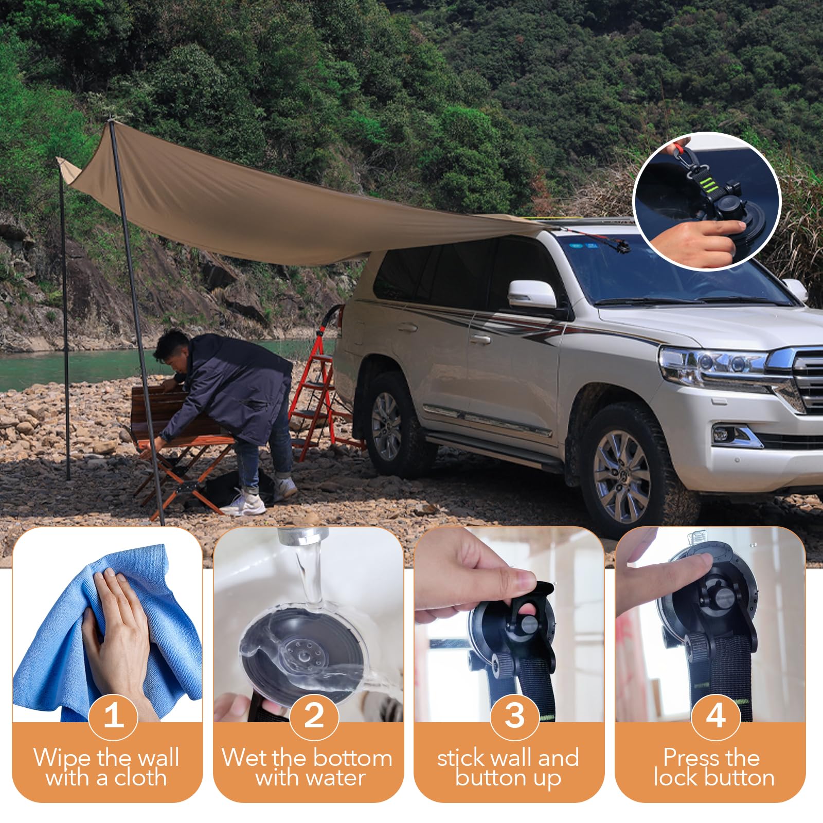 Et la bande en nylon sur le crochet est épaisse, résistante à la déchirure et ne se casse pas facilement. Nous ferons de notre mieux pour vous montrer la couleur exacte., 2., Les mesures étant prises à la main, les tailles indiquées peuvent varier légèrement. Crochets à Ventouse Camping Lot De 6 Crochets à Ventouse Robustes Pour Auvent De Voiture Crochets à Ventouse Camping Extra Forts Lot de 2 ventouses solides ancre d'arrimage multifonctions ventouse puissante robuste avec crochet de fixation rotatif à 360 °. 20,81€. 32,02€. Livraison... Contenu de la livraison : 6 crochets à ventouse solides, 3 crochets en S en acier inoxydable, 1 chiffon en microfibre et 1 sac de rangement en nylon. Liste des pièces : 6 crochets à ventouse de camping., 6 crochets., 1 chiffon de nettoyage., 1 sac de rangement. Large application : ces crochets à ventouse robustes sont parfaits pour les voyages, les tentes ou autres pique-niques familiaux et les activités de camping en plein air, offrant une solution fiable et stable. Nos crochets à ventouse sont uniquement conçus pour une utilisation sur des surfaces lisses et plates telles que le verre, les plaques de bois, le métal, les voitures, etc. Ventouses extra puissantes : ces crochets à ventouse sont fabriqués en PVC, les ventouses sont fabriquées en silicone amélioré pour plus de stabilité et une plus grande capacité de charge. Description : Les crochets à ventouse de voiture sont solides, durables, résistants à la chaleur et peuvent supporter jusqu'à 10 kg par crochet. Un accessoire de camping parfait. Principales caractéristiques : Réutilisable : lorsque l'adhérence des ventouses robustes est affaiblie par des dépôts de poussière, il suffit de les rincer à l'eau et de les laisser sécher à l'air libre pour restaurer l'adhérence des ventouses. Utilisation étendue : adaptés aux pièces de rechange pour tentes, aux fixations pour auvents de camping-cars ou aux ventouses, ces crochets peuvent répondre à divers besoins en extérieur, du camping à la fixation d’équipements nautiques pour les ventouses d’auvent Chaque crochet supporte jusqu'à 10 kg. [Facile à installer] Avant utilisation, veuillez sécher la surface avec un chiffon propre pour vous assurer qu'il n'y a pas d'eau ou de poussière et que la surface est lisse ; retirez le film des ventouses, placez-le à plat sur une surface lisse, tournez la poignée et appuyez dessus, il créera un vide très puissant qui le verrouille fermement en place. Profitez de la fiabilité et de la stabilité de ces crochets à ventouse robustes pendant vos activités de plein air. Lot de 6 crochets à ventouse pour camping - Extra solides