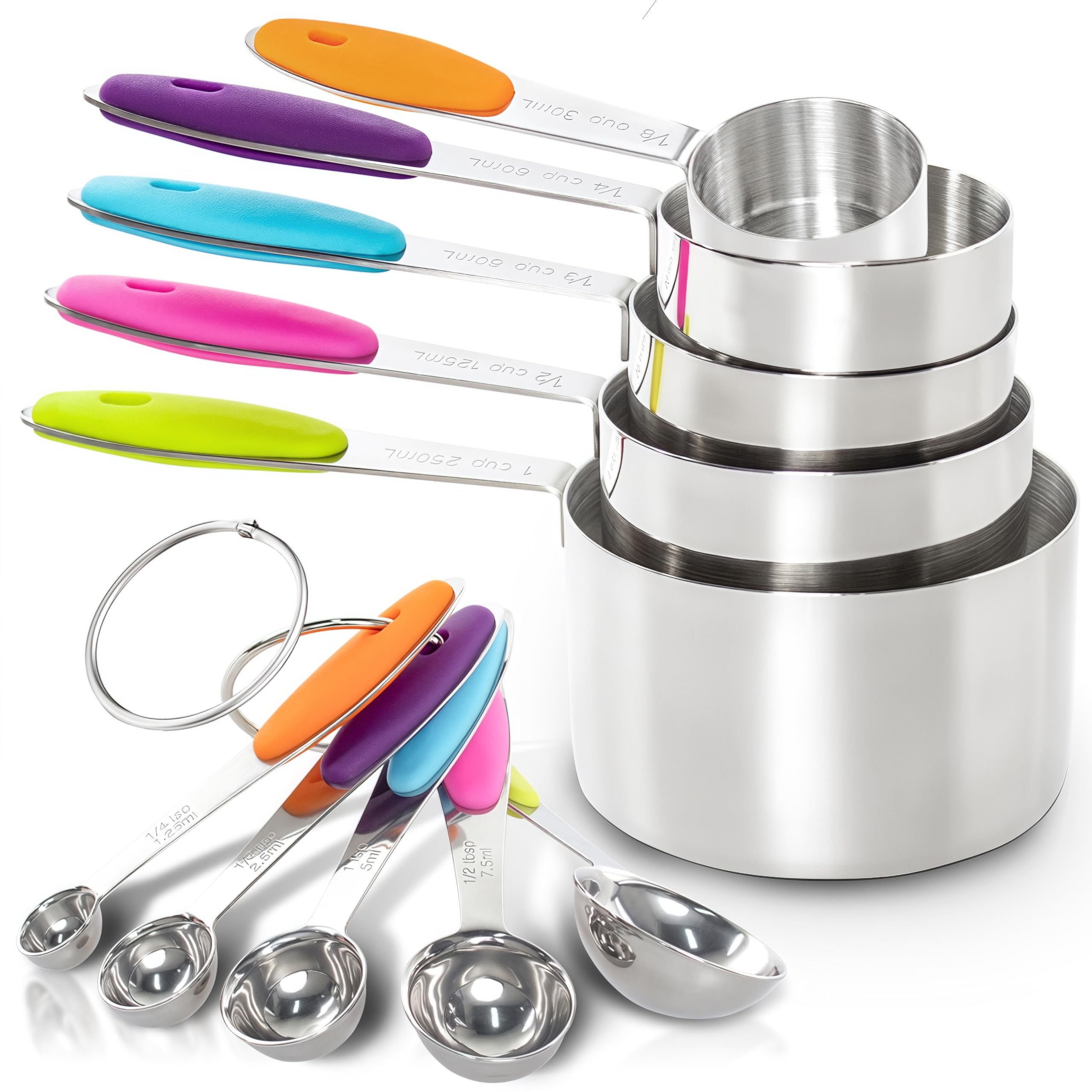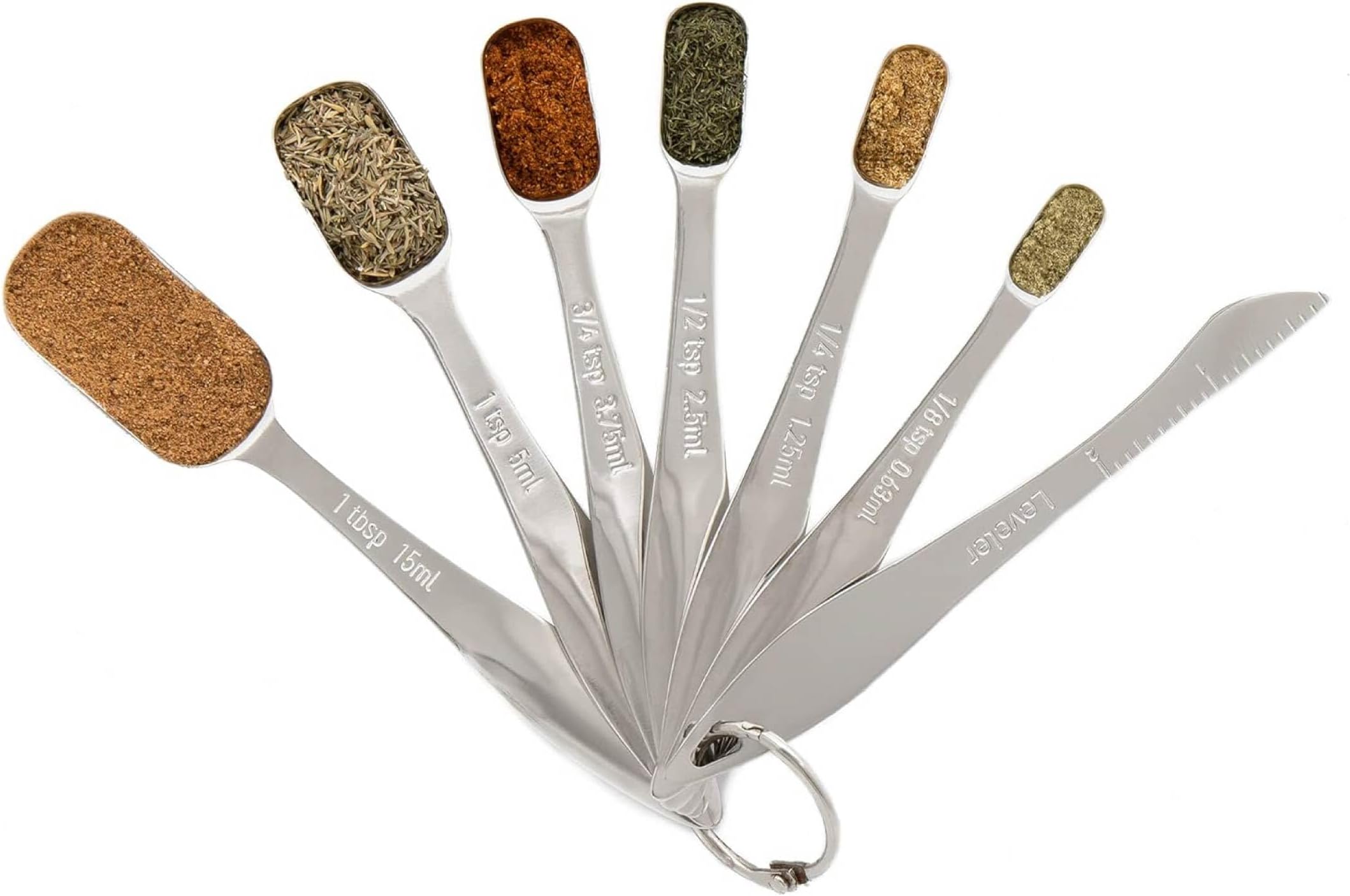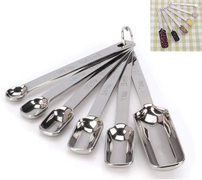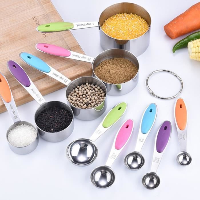 Le set comprend toutes les tailles dont vous avez besoin : 1/8 cuillère à café, 1/4 cuillère à café, 1/2 cuillère à café, 1 cuillère à café et 1 cuillère à... Clairement marquées en ml et cuillères, elles garantissent des mesures précises pour tes gâteaux, sauces ou cocktails. L'anneau de rangement en métal les garde... Rena Chris Lot De 6 Cuillères à Mesurer Robustes En Acier Inoxydable 18 Edelstahl Messbecher und Löffel Set Gravierte Messungen Messbecher Löffel Alibab