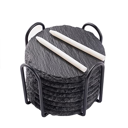 Parfait pour toutes les occasions. Dessous Verre Ardoise Lot De 6 Dessous De Verre "Ardoise" 10x10cm Gris Cadeau Mariage Noël Dimensions : 10 x 10 cm - Hauteur : environ 0,5 cm. Laissez-vous convaincre par ces jolis dessous de verre esthétiques et fonctionnels ! Il vous suffit de placer une bouteille ou un verre sur chacune des plaques en ardoise afin de garder votre cuisine ou votre table propre La surface est très lisse et les boissons tiennent fermement et en toute sécurité. Les dessous de verre en ardoise sont livrés en lot de 8 pratiques avec support et crayon à craie. HAUTE QUALITÉ]Les sous-verres en ardoise sont livrés dans un ensemble de 8, comprenant un support et un marqueur à craie. Ils ont un diamètre de 10 cm et une... Avec 4 patins en feutre antidérapants pour éviter les rayures sur la table. Le set de dessous de verre convient à la plupart des gobelets à eau. Les dessous de verre en ardoise ne passent pas au lave-vaisselle. Dessous de verre ARDOISE et socle personnalisé Ardoise naturelle : Chaque sous-verre est unique et peut varier légèrement en épaisseur et en texture. Le dessous de verre en ardoise est idéal comme cadeau ou pour compléter votre décoration de table, par exemple pour un mariage, Noël ou un anniversaire.