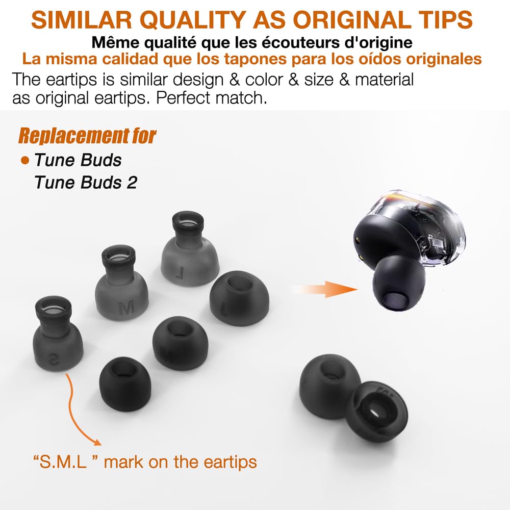 Embouts Lavables Hygiène Lot De 6 Paires D'embouts De Rechange Pour écouteurs JBL Tune Coussinets Rechange écouteurs Blanc Coussinets de rechange pour casque - AQSACOKIYA - JBL E55BT(E55 BT) - Gel de refroidissement... Rechange écouteurs Intra-auriculaires 8 Paires Embouts Silicone JBL Tune Flex - 4 Tailles XS/S/M/L - Blanc - Remplacement écouteurs Intra-auriculaires Embouts 4 Tailles Remplacez vos anciens coussinets pour redonner à votre casque un aspect neuf. Ce kit de 6 embouts en silicone souple est compatible JBL Tune Buds. Il inclut 3 tailles (S, M, L) pour un confort personnalisé. Parfait pour remplacer des... Dites adieu à la fatigue du conduit auditif : les bouchons d'oreille de rechange peuvent éliminer la fatigue du conduit auditif qui se produit lors d'une utilisation prolongée, assurant ainsi une expérience d'écoute agréable même en cas d'utilisation prolongée. Matériau : fabriqués en silicone de qualité supérieure, ces bouchons d'oreille sont doux, flexibles et amovibles. Ils offrent un confort optimal, sont lavables et interchangeables. Compatibilité : les coussinets en silicone sont compatibles avec les écouteurs JBL Tune Buds