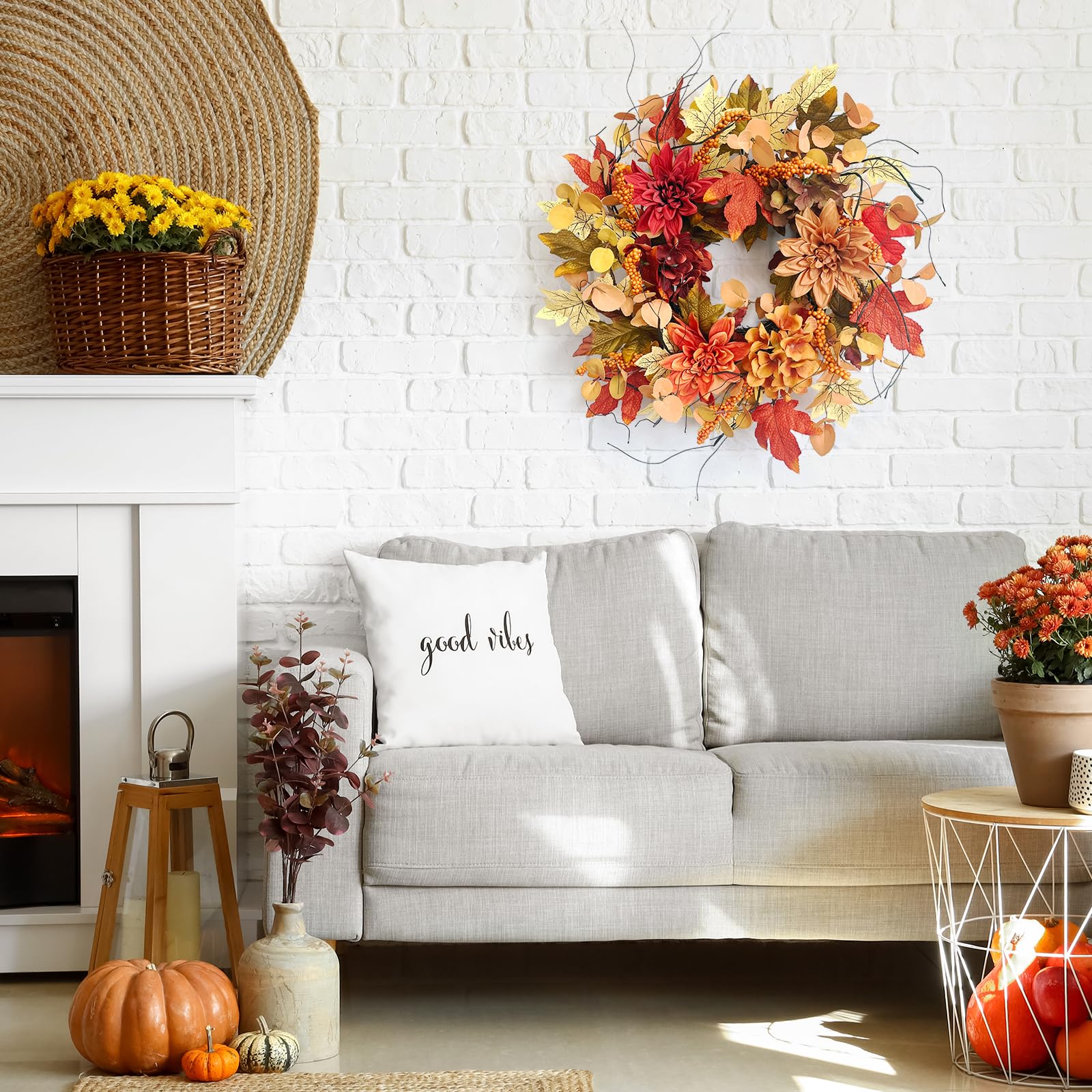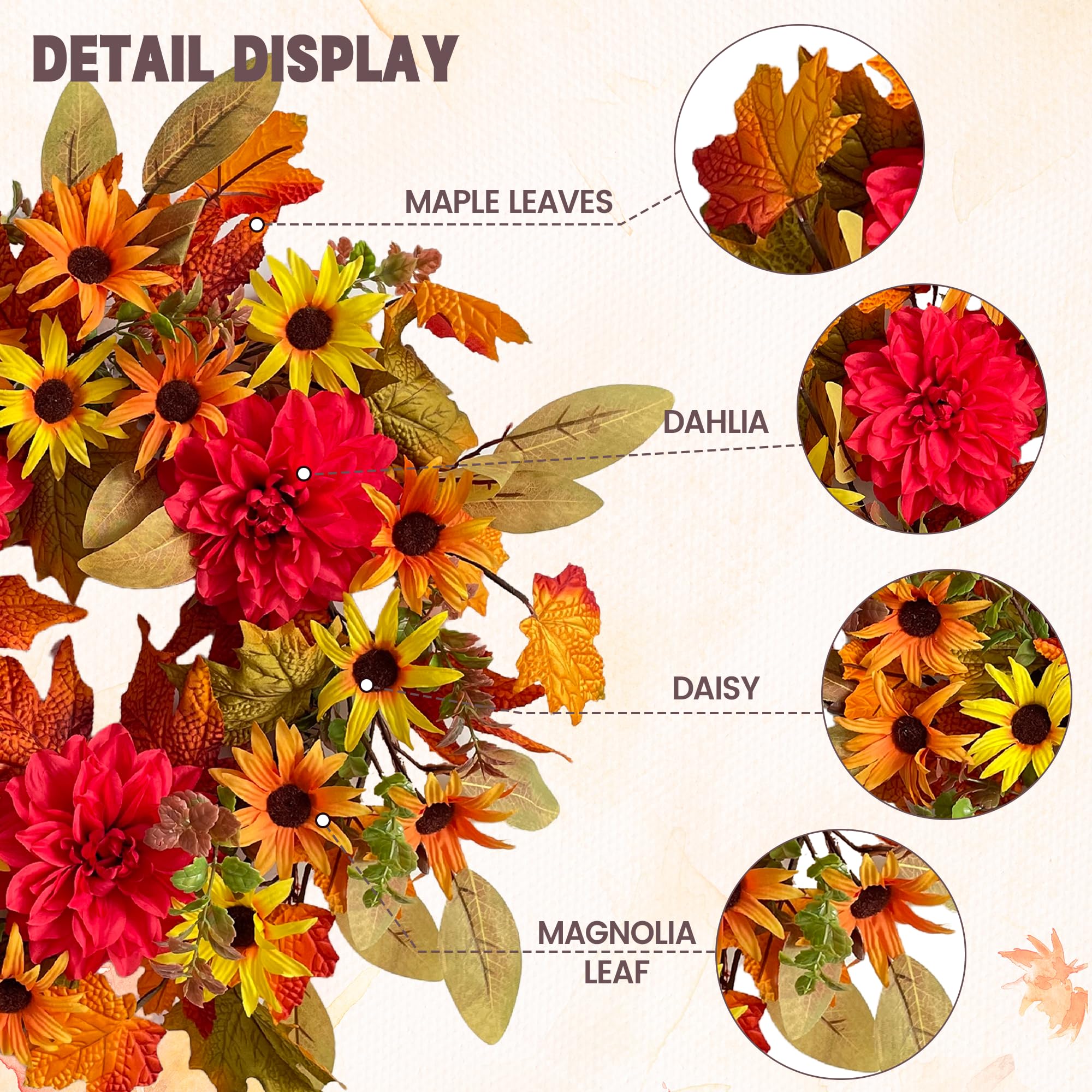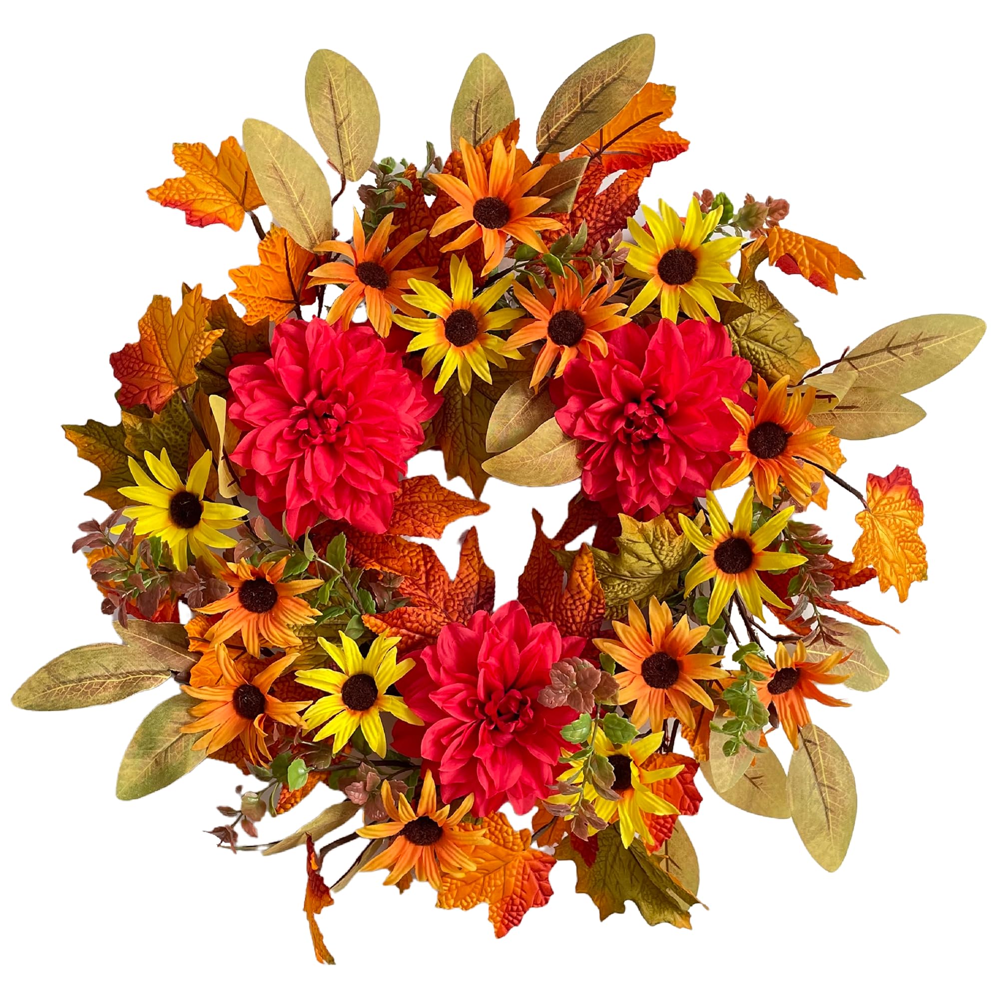 Primrue Couronne de porte en tournesol 26 po Gallivat Faux Eucalyptus Berry - Canada 1 Décoration Noel Couronne D'automne Marron De 61 Cm Pour Porte D'entrée, Couronne D Décor Automne Fleurs Artificielles Taille : la couronne d'automne a un diamètre total impressionnant de 61 cm, ce qui la rend parfaite pour embellir votre porte d'entrée. Et avec un design réglable, les branches et les feuilles peuvent se plier, ce qui rend la couronne belle et pleine Taille : diamètre extérieur 45 cm, couleur : couronne d'automne orange avec baies et feuilles d'érable pour la décoration de la maison, bon choix pour une...