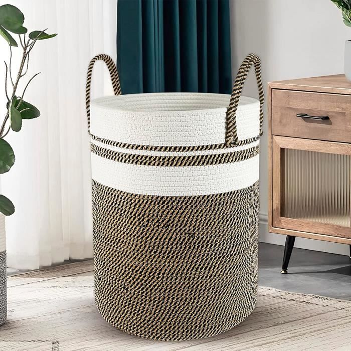 Il est possible de lui redonner sa forme initiale en le remplissant de couvertures ou en le repassant à l'aide d'un fer à repasser. Présentation du produit Otauoaea 65L Paniere Linge, Paniere a Linge en Corde de Coton,Panier de Rangement Sale Osier,Panier Rangement Bebe pour Jouets a141 Ce grand panier de rangement est idéal pour ranger les couvertures, les coussins, les écharpes, les serviettes et les peluches grâce à ses dimensions de 55 cm (L) x 38 cm (l) x 29 cm (H... Tissé avec une corde en coton souple, ce panier est doux et résistant à la déformation, ce qui garantit confort et sécurité lors de son utilisation. -Chambre à coucher : idéale pour le rangement au chevet du lit. Rangement Déco Salon Grand Panier à Linge De 65 Cm De Hauteur, Panier à Linge En Corde De Jute Tissée Et Coton, Panier à Linge Sale Pliable Avec Poignée, Organisateur De Buanderie Panier Plaid Sa portabilité permet de transporter le linge sale facilement et sans effort, que ce soit en montant ou en descendant les escaliers ou en le déplaçant vers la buanderie. Paniers à linge, paniers à linge pliables, grands paniers à linge -Couleur : Jute et blanc/Jute et -Matière : coton -Dimensions du produit : 55 (diamètre) x 29 (hauteur) x 38(largeur)cm Le panier à linge est polyvalent. -Nettoyage : lavable en machine, il est recommandé de le mettre dans un sac à linge. En tant que cadeau, ce panier décoratif s'intègre parfaitement dans une buanderie, une chambre à coucher, une chambre d'enfant ou un salon grâce à son design coloré unique. Il est non seulement idéal comme cadeau pour les bébés, les enfants, les mamans ou même les animaux de compagnie, mais il constitue également un choix intelligent pour économiser de l'espace grâce à son rangement pliable. -Buanderie : idéale pour ranger le linge sale de toute la famille. -EMBALLAGE : La corbeille peut présenter quelques plis au moment de la signature. Ce grand panier de rangement est idéal pour ranger les couvertures, les coussins, les écharpes, les serviettes et les peluches grâce à ses dimensions de 55 cm (L) x 38 cm (l) x 29 cm (H) et à sa grande capacité de 65 litres. Le design blanc et marron n'est pas seulement pratique, il ajoutera une touche de style à votre salon, votre chambre, votre buanderie ou même votre chambre d... Pour ranger les couvertures, les coussins, les jouets, etc. Pour éliminer plus rapidement les plis, un fer à repasser sera votre meilleur allié. PETITE PANIERE A LINGE AVEC COUVERCLE FACON CORDE NOIR