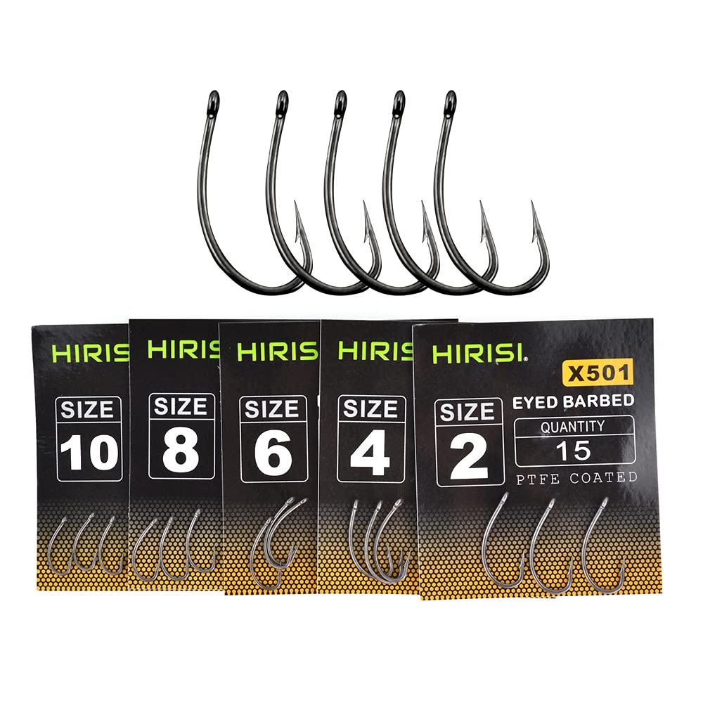 Lot Hameçons Pêche Eau Douce Hirisi Tackle Lot De 75 Hameçons Barbelés Avec Revêtement Lot Hameçons Carpe Tailles Assorties Convient pour la pêche à la carpe: Ce produit est spécifiquement conçu pour la pêche à la carpe, ce qui en fait un excellent choix pour les pêcheurs ciblant cette espèce Barbble-Size 10 - Hameçon de pêche à la carpe, revêtement PTFE, acier à Quantité : 75 pièces, (lot de 5), 15 de chaque taille 2, 4, 6, 8, 10 , Revêtement PTFE JIA Plate-forme de carpe Pêche à la carpe Ronnie Rig plate-forme de... Longue tige, idéal pour la pêche à la carpe Description : - Micro crochets barbelés, œillets. Hameçons micro barbelés, œillets, tailles assorties X919 Contenu : Taille 2 : 15 pièces., Taille 4 : 15 pièces., Taille 6 : 15 pièces., Taille 8 : 15 pièces., Taille 10 : 15 pièces.