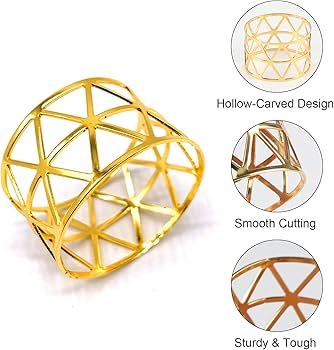 Ronds Serviette Dorés Lot De 8 Ronds De Serviette Dorés - Boucle De Serviette En Argent Porte-serviettes Mariage Ronds de Serviette en Tissu, 20 Ronds de Serviette de Salle à Manger... 8 Ronds de Serviette avec ruban satin Casse Noisette 16x4 cm - Vegaooparty Design surround : les boucles de serviette en métal doré disposent d'un entourement fin et vif de feuilles, ce qui donne à la table une atmosphère naturelle et fraîche, elle est classique polyvalente, peut en outre ajouter une vivacité jeune et augmenter l'atmosphère de repas Utilisation polyvalente : l'anneau de serviette doré est adapté aux endroits quotidiens tels que les maisons, les restaurants, les bars, etc., il convient également aux mariages, anniversaires, remises de diplômes, banquets ainsi que les jours fériés comme Thanksgiving, Noël et ajoute une touche spéciale aux décorations de table de... facile à enlever, il est très facile à entretenir, économise du temps de nettoyage et de l'énergie et assure un état propre et attrayant Matériau de haute qualité : l'anneau de serviette est fabriqué en fer de haute qualité et a été galvanisé, le matériau est stable et fiable, se décolore rarement, ne se casse pas ou ne se déforme pas facilement, résiste à la rouille et réutilisable Dimensions : rond de serviette élégant en métal diamètre intérieur 4 cm et hauteur 4 cm, il convient à la plupart des serviettes, serviettes et peut même être utilisé pour décorer de petits bouquets de fleurs, il peut facilement fixer des serviettes et d'autres objets proprement et rendre la décoration de table plus ordonnée et ordonnée Nom du produit : Ronds de serviette Spécification: Fabriqué en fer de haute qualité, stable, a moins tendance à rouiller et peut être réutilisé Diamètre : 4 cm, hauteur : 4 cm, s'adapte à de nombreux objets et est facile à fixer Avec un design entouré de feuilles, fin et vif Surface lisse, peut être nettoyé par simple essuyage, confortable et sans effort Informations sur le produit : 1., Matériau : fer 2., Couleur : doré Contenu de l'emballage : 8 boucles de serviettes en métal.