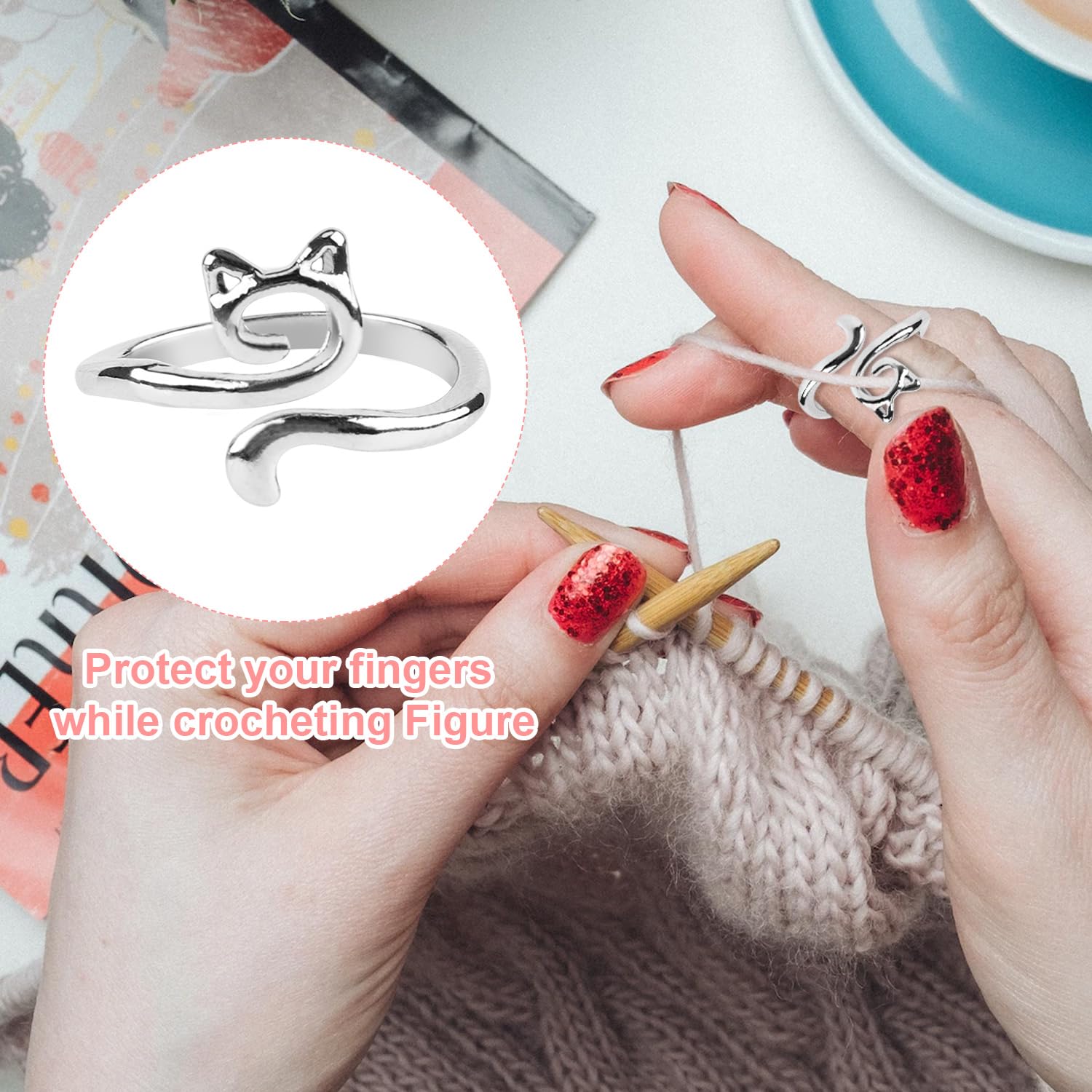 Boovnll Kit d'Outils, Anneau de Doigt au Crochet Réglable Anneau de Anneau de guidage de fil pour crochet. Cadeau Tricoteuse Débutante Homoyoyo 2pièces Lot De Anneaux De Crochet Boucles De Tricot Anneau Doigt Tricot Ajustable - Anneau de crochet : les anneaux de crochet protègent vos doigts et fil, ce qui en fait un outil pratique pour les amateurs de crochet. Ensemble de crochets : vous recevrez 2 supports de fil à motif chat de couleur noire pour les doigts. Les anneaux de fil à crochet sont polyvalents pour... Facile à Utiliser : Le Dé à Coudre Norvégien Est Placé Sur Le Bout Des Doigts Pour Maintenir Le Fil ; Deux Fentes De Fil Contrôlent La Fibre Pour Maintenir... Cadeau unique : de guidage de fil est un excellent cadeau pour les amis, la famille ou les proches qui s'intéressent au tricot, au crochet et à d'autres travaux manuels, guide-doigt de fil pour tricot, anneau de tension de fil Informations sur les marchandises Anneau guide-fil. À et unique : cet anneau de guidage de fil au crochet n'est pas un outil pratique mais aussi un accessoire élégant qui peut porté comme un anneau quotidien, des anneaux de crochet au crochet, des anneaux de marqueurs au crochet - Apparence unique : de tension au crochet présente un joli motif de chat, ce qui en fait un accessoire unique et adorable pour les anneaux de guidage de fil au crochet. Avec son adorable motif de chat, cet anneau est à la fois mignon et pratique, et deviendra un incontournable de votre trousse à outils., Anneau à tricoter. forfait comprend 2 x anneaux Caractéristiques -Informations sur produit : Anneau de queue d'oreille de chat -Matériau : anneaux de tension en alliage pour crochet -Couleur : anneau de doigt d'outil de régulateur de tension de crochet de couleurs assorties -Taille : 2,00 x 2,00 x 1,00 cm/0,79 x 0,79 x 0,39 pouces guide-fil pour tricoter - Artisanat : la surface est lisse et confortable à porter, garantissant une expérience de crochet agréable et sûre.