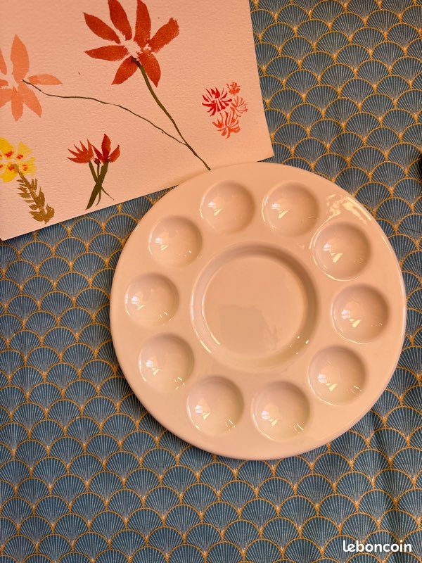 Palette Peinture Céramique SURENHAP Palettes De Bac à Peinture De Peinture En Porcelaine 12 Puits Peinture Porcelaine Palette peinture porcelaine ronde - 12 compartiments - Facile à Avec ses 12 alvéoles, cette palette offre amplement d'espace pour disposer plusieurs teintes et effectuer des mélanges de peinture avec une grande liberté. Sa... La surface émaillée est facile à nettoyer et retrouve sa couleur blanche d'origine après avoir été rincée à l'eau., 3., 【Matériau sûr et écologique】Fabriquée à partir d'un matériau céramique de qualité alimentaire, elle est non toxique et inoffensive, et convient à une utilisation à long terme. 【Surface en céramique】Fabriquée à partir d'un matériau céramique cuit à haute température, la surface est lisse et délicate, ce qui permet un mélange homogène des pigments sans pénétration, facilitant ainsi l'obtention d'une correspondance précise des couleurs. 【Conception scientifique à 12 compartiments】Les compartiments de mélange des couleurs et les zones de mélange sont répartis de manière raisonnable, ce qui permet de manipuler plusieurs couleurs simultanément, d'éviter la contamination croisée des couleurs et d'améliorer l'efficacité créative. Description: 1., 【Palette en céramique】Cette palette de 7 pouces est fabriquée en céramique haute température avec une surface lisse et émaillée qui ne déteint pas. 【Base antidérapante robuste】La base présente une conception antidérapante élargie, avec un poids modéré qui empêche le basculement. 【Facile à nettoyer et à entretenir】La surface émaillée permet d'essuyer facilement les résidus de pigments et ne laisse pas de taches après le lavage. Elle ne jaunit pas et ne se décolore pas, même après une utilisation prolongée, ce qui facilite son entretien. Surface en céramique]Fabriquée à partir d'un matériau céramique cuit à haute température, la surface est lisse et délicate, ce qui permet un mélange...