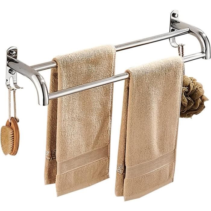 Caractéristiques : Double porte-serviette., - Couleur : argenté. Barres pour serviettes salle de bain - Leroy Merlin Support mural sécurisé : comprend des vis pour une installation ferme et stable. Barre Porte Serviettes Double Acier Inox Double Barre Porte-serviettes De Bain, 50,8 Cm, En Acier Porte Serviettes Inox 50 Cm Salle De Bain Équipé de vis pour une installation sécurisée, il offre suffisamment d'espace pour contenir plusieurs serviettes tout en gardant votre salle de bain propre et bien rangée., Installation : 1., Sélectionnez l'emplacement et marquez-le avec un stylo., 2., Percez des trous avec un foret de 6 mm., 3., Extension en plastique., 4., Fixez et fixez les vis., 5., Appuyez sur le chapeau décoratif., 6., Terminez l'installation. - Matériau : acier inoxydable. Ibiza-G30109 Barre Porte-Serviettes Double (60Cm), Accessoires De Salle... Sa construction robuste peut contenir plusieurs serviettes avec facilité. Utilisation polyvalente : convient pour les salles de bains, les cuisines ou les buanderies, cette barre à serviettes double offre une solution fonctionnelle et élégante pour organiser les serviettes et autres éléments essentiels. Porte-serviettes, porte-serviettes avec porte-serviettes double... Les couleurs peuvent varier légèrement en raison des différents écrans. - Dimensions : 50 x 14 x 5 cm. Grand espace de rangement : la conception à double barre offre deux fois plus de capacité de stockage dans le même encombrement. Description : Améliorez l'organisation de votre salle de bain avec la double barre porte-serviettes en acier inoxydable robuste de 50,8 cm. Acier inoxydable robuste : fabriqué en acier inoxydable, le porte-serviettes de salle de bain est résistant à la rouille, assurant une performance durable même dans les environnements humides de la salle de bain.