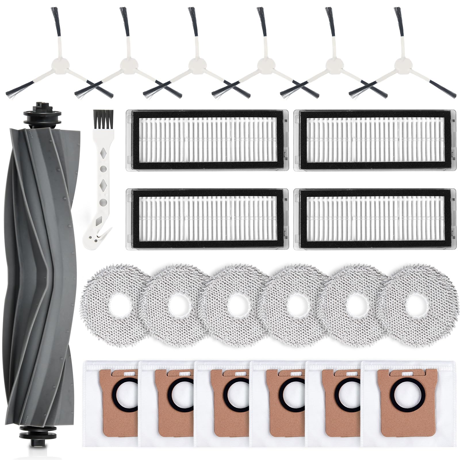 Cette conception excelle dans le traitement des enchevêtrements de cheveux et le nettoyage des tapis. Pièces Remplacement Robot Nettoyage Accessoires De Balayeuse,8--Chiffons, Brosse Principale Et Latérale Brosse Principale D20 Pro Plus Elle nettoie les bords et les coins inaccessibles au corps principal du robot. Elle est lavable et réutilisable. Sa couche de filtration de précision bloque efficacement 99,99 % des particules, garantissant une fraîcheur durable de l'air intérieur. Les accessoires s'usent avec une utilisation prolongée, ce qui réduit l'efficacité du nettoyage. Filtres À Brosse Principale Chiffons En Microfibre Compatibles Avec La couche de filtration de précision peut bloquer 99,99% des particules, gardant l'air de la maison frais. 【Chiffon ultra-absorbant】La serpillière en microfibre du D20 Pro Plus offre une capacité d'absorption exceptionnelle, associée à un système de rotation à grande vitesse qui frotte vigoureusement les surfaces pour éliminer sans effort les taches tenaces. Elles fonctionnent en tandem pour battre le tapis, puis exploitent une puissante aspiration pour éliminer en profondeur la poussière et les taches, offrant ainsi des résultats de nettoyage en profondeur exceptionnels. 【Filtre HEPA】 Le Filtre de rechange D20 Pro Plus utilise une structure de filtration composite multicouche qui capture efficacement 99,99 % des particules de poussière fines pour garantir une purification optimale de l'air. Il est recommandé de les inspecter et de les remplacer régulièrement. Parfaite compatibilité]Ce kit de pièces de rechange est compatible avec le robot aspirateur Dreame D20 Pro Plus. Veuillez vérifier votre modèle de robot avant l'achat pour assurer une compatibilité optimale et un fonctionnement fluide. Le Aspirateur Robot Kit d'accessoires de rechange comprend... Kit d'accessoires pour Dreame L20 Ultra / L20 Ultra Complete, 4 serpillères, 6 sacs à poussière, 1 brosse principale, 2 filtres, 2 brosses latérales, pièces... Avec une conception étanche entièrement scellée, la poussière n'entre et ne sort qu'à l'intérieur. Les accessoires comprennent : 2 brosses principales, 4 serpillières, 4 filtres de rechange, 6 sacs à poussière, 4 brosses latérales, 1 brosse de nettoyage. Elle laisse les surfaces impeccables et brillantes comme neuves. Notre brosse de ménage est dotée de poils de haute qualité qui éliminent efficacement la saleté incrustée, les poils d'animaux et les débris des tapis et des sols durs.