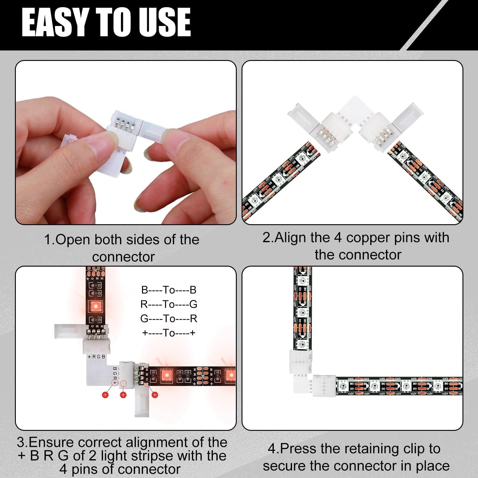 Le design en L et les connecteurs droits garantissent une continuité et une flexibilité accrues dans vos configurations d’éclairage. Rubans À Led 4M Rgb Smd 2835 Led Bande Avec Télécommande Ir, Bande... Parfait pour les installations autour des coins ou pour étendre vos installations de bandes LED sans discontinuité Fonction: Ces connecteurs bande LED sont spécialement conçus pour permettre une installation rapide et facile des bandes LED RGB, sans nécessiter de soudure. Accessoire éclairage Led 10mm Connecteur D'angle De Bande LED RGB 5050 LED Strip Connector Connecteur à Angle Droit Ruban LED Adapter Forme L Rallonge 17cm Long Câble Stripe LED Pour RGB 5050 LED Strip De 10mm Connecteurs Angle L Ruban Led Connecteurs en Forme de L et Droit: Le 4 broches 10mm raccord LED ruban kit inclut 10 connecteurs d'angle en L et 10 connecteurs droits sans interruption, vous permettant de créer des configurations d'éclairage flexibles, y compris des virages de 90 degrés ou des extensions linéaires continues. Nom du produit: Connecteurs LED 4 Pin 10mm pour bandes RGB SMD 5050 – Kit de 20 pièces, avec 10pcs Connecteurs en L et 10pcs Connecteurs droits. Compatible avec les Bandes LED 10mm RGB: Les connecteurs ruban LED 4 broches 10mm sont conçus pour être utilisés avec des bandes LED SMD 5050 de 10 mm de largeur, qu'elles soient étanches ou non. Installation Soudure Sans Effort: Ce kit de connecteurs LED 4 broches pour bandes LED RGB 10mm permet une installation rapide et sans soudure. Il suffit de respecter l’alignement du terminal positif (+) pour garantir un montage précis et sans erreur. Dimensions: Connecteurs ruban LED 4 broches 10mm compatibles avec des bandes LED de 10 mm de large, adaptés aux bandes RGB SMD 5050., Matériau : Plastique de haute qualité, conçu pour résister à des installations répétées et garantir une connexion sécurisée et durable. Les 4 broches 10mm connecteurs LED sont spécialement conçus pour les bandes LED RGB SMD 5050 de 10 mm de largeur et permettent une installation simple et rapide, avec une fonctionnalité parfaite pour les applications domestiques ou professionnelles. Contrôleur LED Tactile RGB pour Rubans LED 12/24V • France Quantité: Le kit comprend 20 pièces – 10 connecteurs en forme de L (angles) et 10 connecteurs droits (gapless 4 broches 10mm). Design Pratique et Compact: Les raccord ruban LED sont conçus pour offrir une connexion propre et professionnelle. Connecteur d'angle LED, paquet de 20 connecteurs de bande lumineuse 10 pièces en forme de L + 10 pièces 4 broches pour conducteur 5050 SMD RGB 4