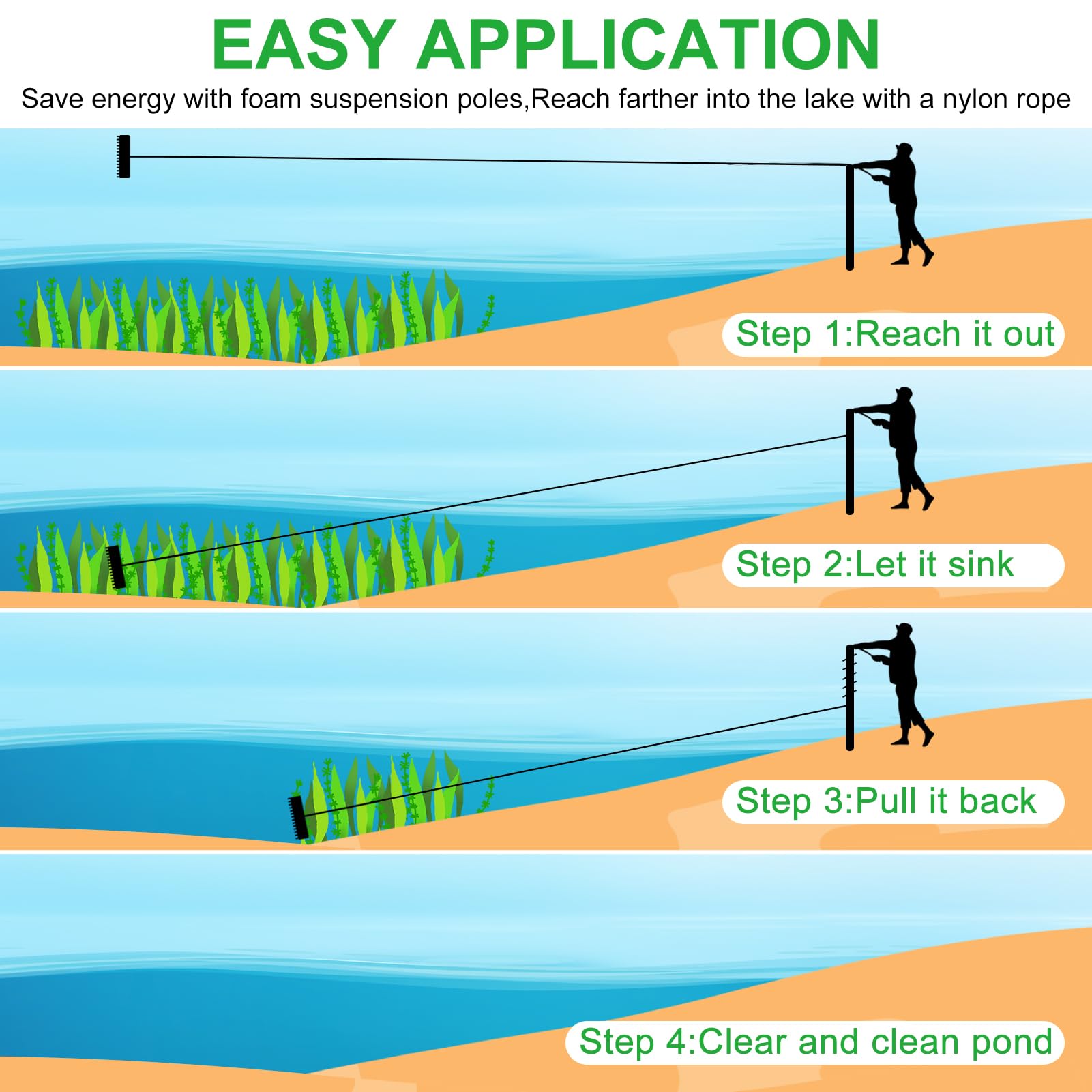 Gain de place : conception de tête pliable facile à placer et à ranger, garantit qu'il ne prend pas de place inutile tout en conservant la fonctionnalité pour les besoins d'entretien des bassins. Râteau Flottant Nettoyage étang Râteau De Bassin, Outil De Désherbage, Lames En Acier De 40,6 à 81,3 Cm Râteau Bassin Tête Pliable Transport La poignée antidérapante offre une prise en main sûre lors de son utilisation, même dans des conditions humides. Télécharger Examen Permis Poids Lourd pour iPhone / iPad sur l'App... Poids du produit : 3200 g. Remarques : En raison de l'éclairage et des paramètres propres à chaque écran, la couleur de l'article peut légèrement différer de celle de la photo. La corde de lancer de 600 cm est conçue pour retirer rapidement les plantes aquatiques et les algues sur le rivage. Avec son manche en 3 sections et son design... Tige d'extension : 2,5 m. Conçu pour flotter, éviter les pertes dans l'eau et améliorer son utilité dans divers environnements tels que les plages, les jardins, les patios, les terrains de baseball et les terrains de softball. Portée étendue : manche en aluminium ultra léger qui garantit une couverture maximale pour éliminer les déchets à distance avec contrôle précis et confort ergonomique, sans effort physique supplémentaire Aquatic Lake & Bassin Désherbeur et râteau avec grandes dents longues – Ensemble de nettoyage de plage/rivage (manche de râteau de 3,4 m Dimensions du produit : Largeur du râteau de bassin : 36 pouces Longueur de la corde : 20 pieds. Ergonomie optimisée : manche triangulaire antidérapant réduit la fatigue en utilisation continue, garantissant un maintien sûr et confortable pour l'entretien des étangs sans effort