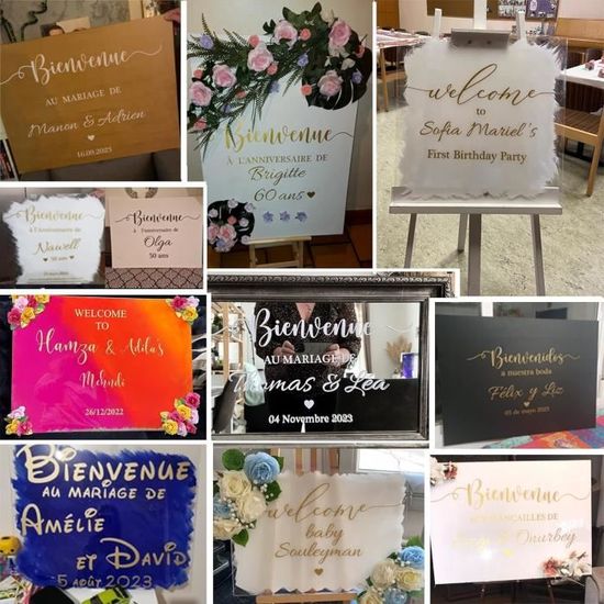 Magnifiquement conçus, ces autocollants ajoutent une touche de sophistication et de style à votre décoration de mariage et améliorent l'ambiance de votre événement. Gufacai Autocollant miroir en vinyle personnalisé avec nom et date Ils constituent également de magnifiques décorations for les réceptions de mariage, les fêtes et autres célébrations Stickers Miroir Mariage Autocollant Personnalisé De Bienvenue Dans Notre Miroir De Mariage, Autocollant De Miroir En Vinyle Personnalisé Avec Noms De Mariés, Lettres Miroir Personnalisé Autocollants de mariage personnalisés Personnalisables avec des noms, des dates et plus encore, célébrez votre journée spéciale avec ces élégants autocollants de panneau de mariage. Disponible dans une large gamme de couleurs et de tailles, vous pouvez trouver l'autocollant parfait for compléter le thème et la palette de couleurs de votre mariage. Personnalisez le vôtre avec vos noms dès aujourd'hui. Ce vinyle s'applique au bois, au verre et à l'acrylique, qui ne sont disponibles qu'en permanence et doit... Ils constituent également des souvenirs inoubliables for vos amis et invités Choisissez-les selon vos besoins. Ce Panneau de Bienvenue personnalisé guidera vos invités avec style lors d'un repas de mariage ou baptême. Vous pourrez disposer à votre convenance les autocollants sur votre miroir. Il doit être disposé à l'entrée du lieu de réception. L'impression est réalisée avec une jolie typographie manuscrite haute qualité Disponibles dans une variété de couleurs, ils apporteront une touche festive à tout événement Garantie de service : Si vous avez des questions, veuillez laisser un message à notre équipe, notre équipe vous répondra rapidement. [Décoration multifonctionnelle] : Ces autocollants en vinyle personnalisés conviennent non seulement aux miroirs, mais aussi aux murs, aux plans de table et à la signalétique de réception. Description du produit. [Magnifique cadeau] : Les autocollants de mariage personnalisés sont un cadeau idéal for vous-même le jour J.