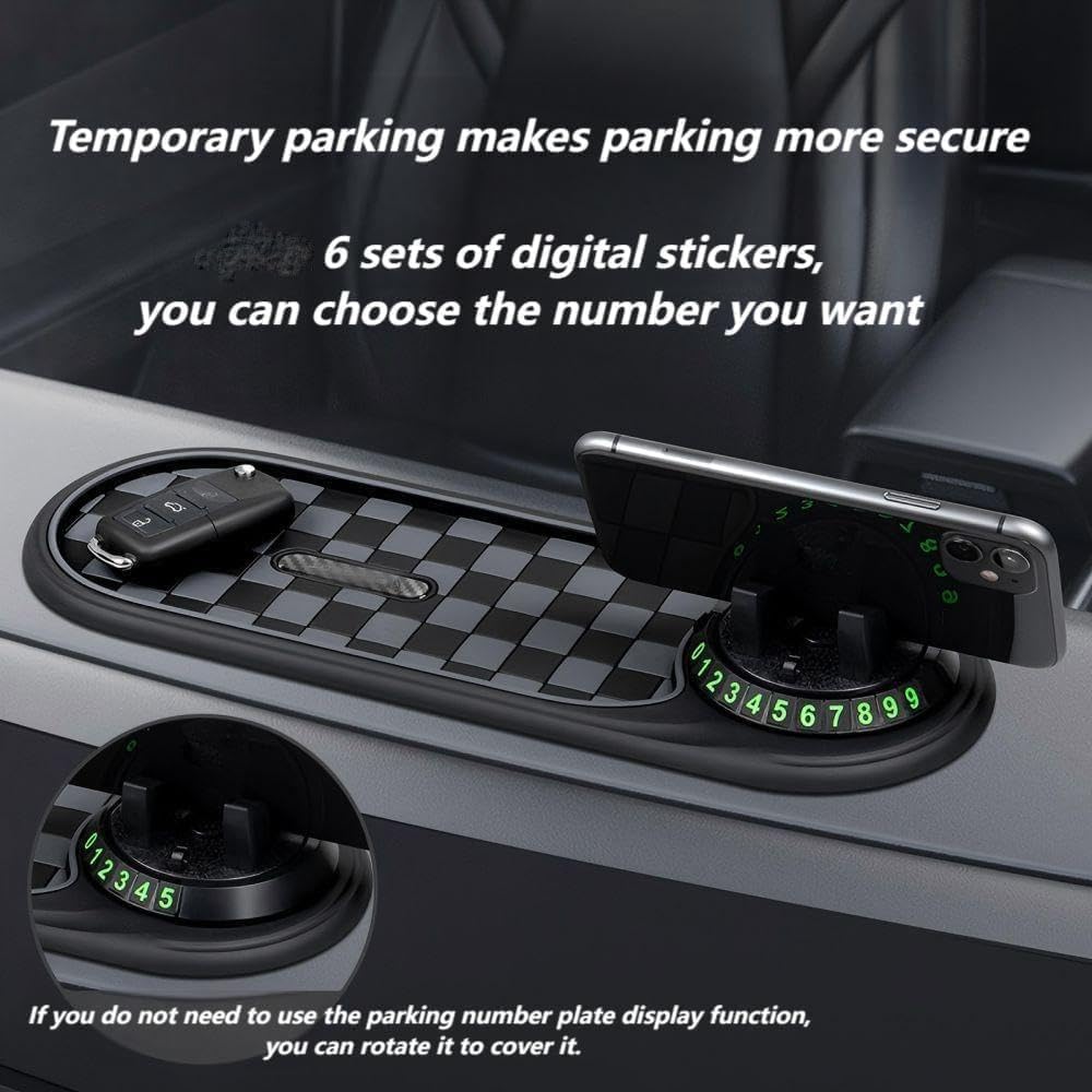 【Nettoyage facile : 】Aucune installation compliquée n'est requise ; il suffit de le placer sur le tableau de bord et il se fixe instantanément et en toute sécurité pour une utilisation immédiate. Support Téléphone Tableau De Bord CiuGear Tapis Antidérapant Pour Tableau De Bord De Voiture - Rotation à 360° - Support Pour Téléphone Portable,GPS,porte-clés Et Pièces De Monnaie Support Telephone Tableau De Bord - Un numéro de stationnement temporaire peut être utilisé pour créer un numéro de téléphone portable et faciliter le contact pendant le stationnement. Tableau de bord de voiture Tapis antidérapant Support de téléphone en silicone Rotation a 360 ° HOLD-15 ; Taxe TVA. 23% ; Poids. 0,074kg ; Code du produit. 02186 Le support réglable assure un maintien sûr. Une plaque d'immatriculation de stationnement temporaire rétractable, conçue avec soin, permet un affichage flexible ou une confidentialité optimale, facilitant ainsi la prise en main. 360 ° Tapis antidérapant rotatif pour voiture, avec support pour téléphone et numéros de stationnement, organisateur de tableau de bord antidérapant pour clés... 【Support rotatif à 360° : 】La base permet une rotation à 360°, vous permettant d'ajuster le support à n'importe quel angle, garantissant une vue dégagée pour la navigation et les appels. - Son design unique à bords surélevés empêche efficacement les téléphones, les objets décoratifs et autres objets de glisser. 【Adhérence élevée et antidérapant :】 Le tapis antidérapant adhère fermement au tableau de bord, garantissant sa stabilité même en cas de freinage brusque ou de route accidentée. Tapis antidérapant multifonction pour voiture - Tapis de téléphone Polyvalent, il intègre trois fonctions principales : antidérapant, support de téléphone et panneau de stationnement temporaire., Pratique et pratique. Rangez facilement de petits objets comme des lunettes de soleil, des pièces de monnaie, des clés, des cartes et des parfums, éliminant ainsi l'encombrement de votre console centrale et gardant votre voiture organisée.