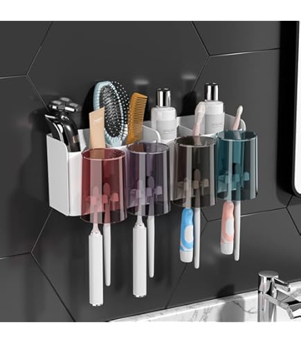 Porte-Brosse à Dents et Verre pour Salle de Bain - Fixation avec ou sans perçage. 129.00 Dhs. (2). Ajouter au panier. Accessoires de Salle de Bain... Fonction de rangement : Ce support de tasse non seulement fixe le gobelet à aspiration magnétique, mais possède aussi un espace de rangement pratique, permettant de stocker facilement des brosses à dents ordinaires, des brosses à dents électriques, du dentifrice, des peignes, des appareils de nettoyage du visage et d'autres petits objets de salle de bain, optimisant ainsi l'espace mural De nombreuses couleurs : Ce porte-gobelet allie praticité et esthétique, avec des couleurs vives et plusieurs choix, pouvant s'intégrer naturellement dans différentes styles de décoration de salle de bain, ajoutant une touche de couleur à l'espace Support Dentifrice Brosse à Dents Famille Porte-Gobelet Pour Bain De Bouche Support Mural Pour Brosse À Dents Porte-gobelet Magnétique Matériau sûr : Ce porte-gobelet est fabriqué en plastique de haute qualité, non toxique et sans odeur, résistant à la chaleur et difficile à déformer, solide et résistant aux chocs. Godsale-Porte-gobelet de rangement pour brosse à dents Bear Support de... Installation facile : Ce porte-gobelet utilise un design auto-adhésif puissant, sans perçage ni clouage, ce qui permet une installation simple, économisant du temps tout en préservant l'apparence d'origine du mur Porte-gobelet mural magnétique pour salle de bain, support