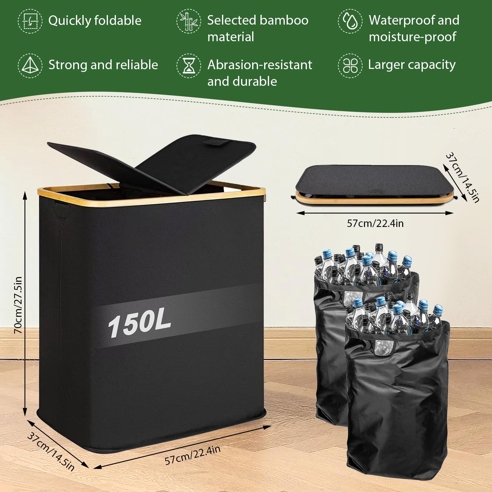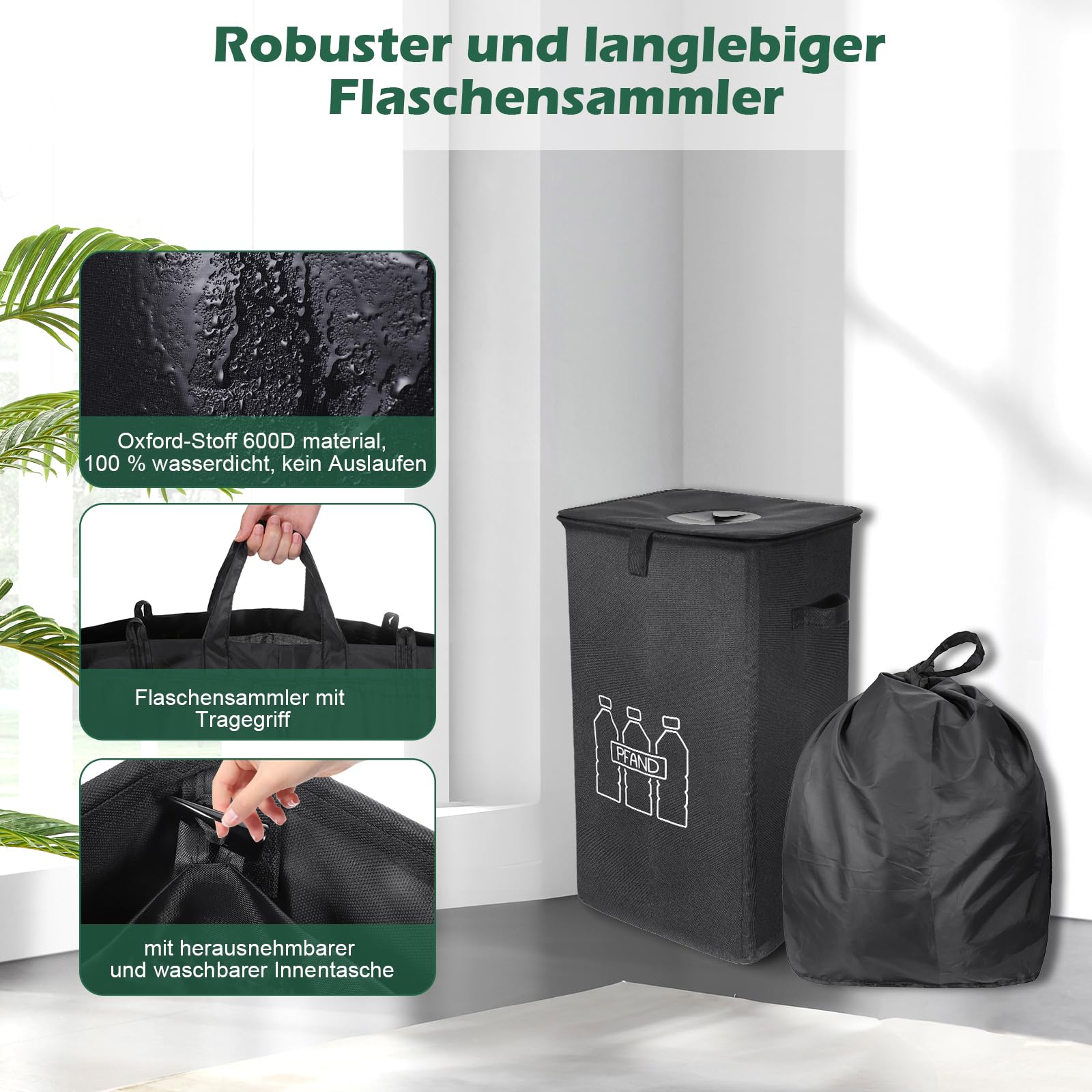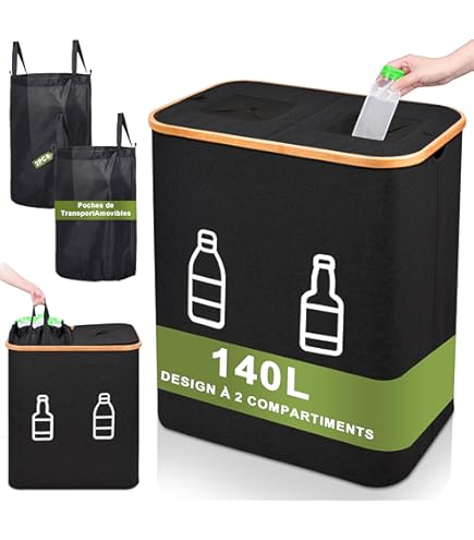 Rangement Bouteilles Consigne Poubelle De Tri 100L Avec 2 Sacs De Transport - Poubelle Recyclage Transparente, Idéale Bouteilles Et Verre Poubelle Double Cela vous permet d'insérer facilement les bouteilles sans ouvrir le couvercle. Collecte Bouteilles Consignées LUMITERRA 100L Collecteur De Bouteilles Avec Couvercle Poubelle Exterieur Le sac intérieur peut même servir de sac de courses réutilisable. Il permet de stocker facilement les bouteilles consignées, les boîtes de conserve et les déchets de verre, ce qui favor le recyclage durable des matériaux et contribue à la protection de l'environnement Il stocke facilement les bouteilles, canettes et déchets de verre consignés, favorisant ainsi le recyclage durable des matériaux et contribuant à la protection... Le coffre à bouteilles est également pliable, pour plus de confort et de praticité. Il suffit d'insérer les bouteilles dans les trous, ce qui simplifie l'utilisation et retient efficacement les odeurs, préservant ainsi la propreté de l'environnement. 【Multifonctionnel】 Ce coffre de rangement pliable d'une capacité de 100 litres permet non seulement de ranger bouteilles, canettes et verres, mais aussi de ranger vêtements sales, vieux journaux, chaussures ou jouets, favorisant ainsi le recyclage durable et contribuant à la protection de l'environnement. Il permet de ranger facilement les bouteilles en plastique recyclables, les bouteilles en verre, les canettes et autres, favorisant ainsi un recyclage durable et respectueux de l'environnement. Lorsque vous ne l'utilisez pas, vous pouvez retirer la tige de support pour gagner de la place. 【Dimensions 】 Ce coffre de rangement noir mesure 43 x 32 x 70 cm et offre une capacité pratique et spacieuse de 100 litres, offrant un espace de rangement généreux pour vos bouteilles vides.