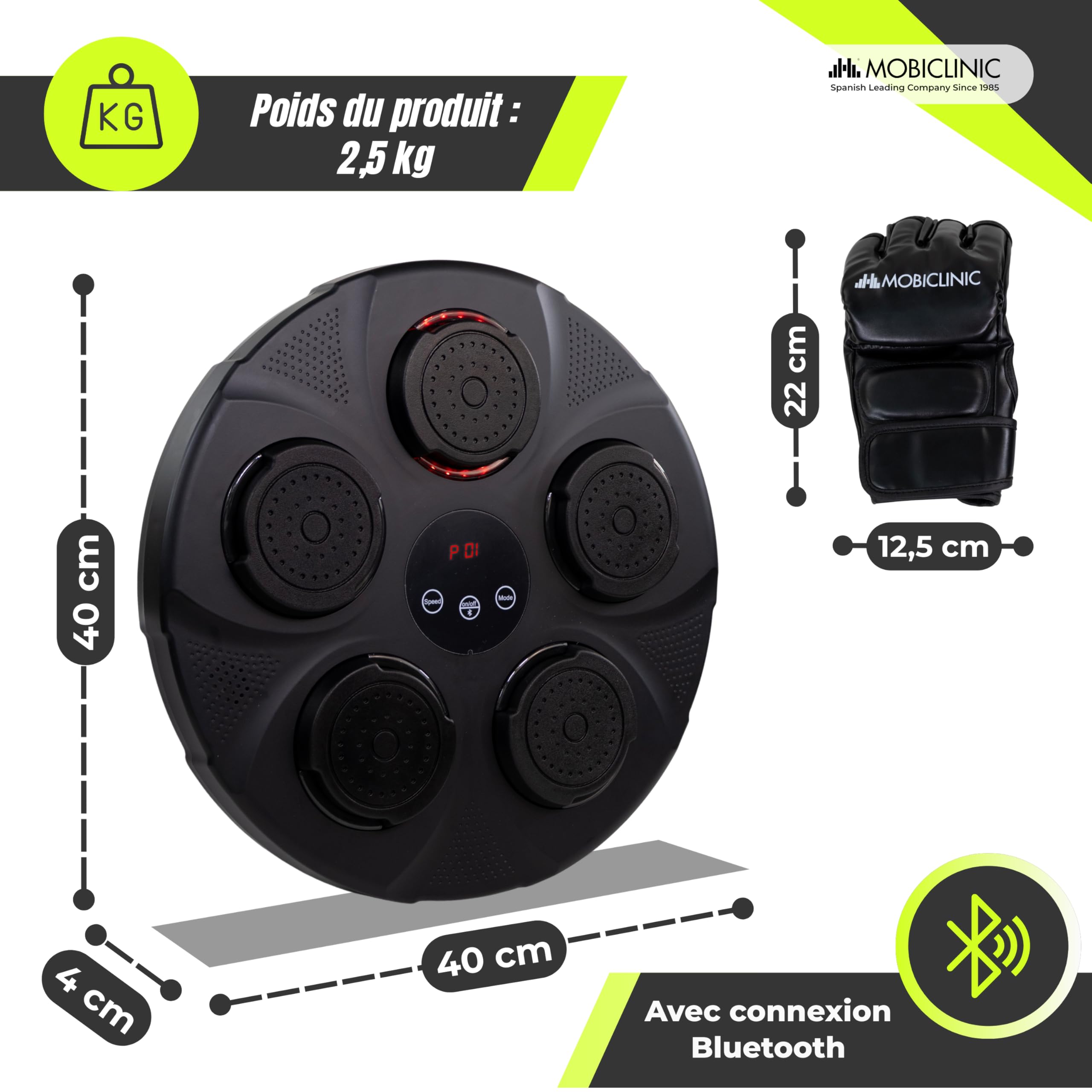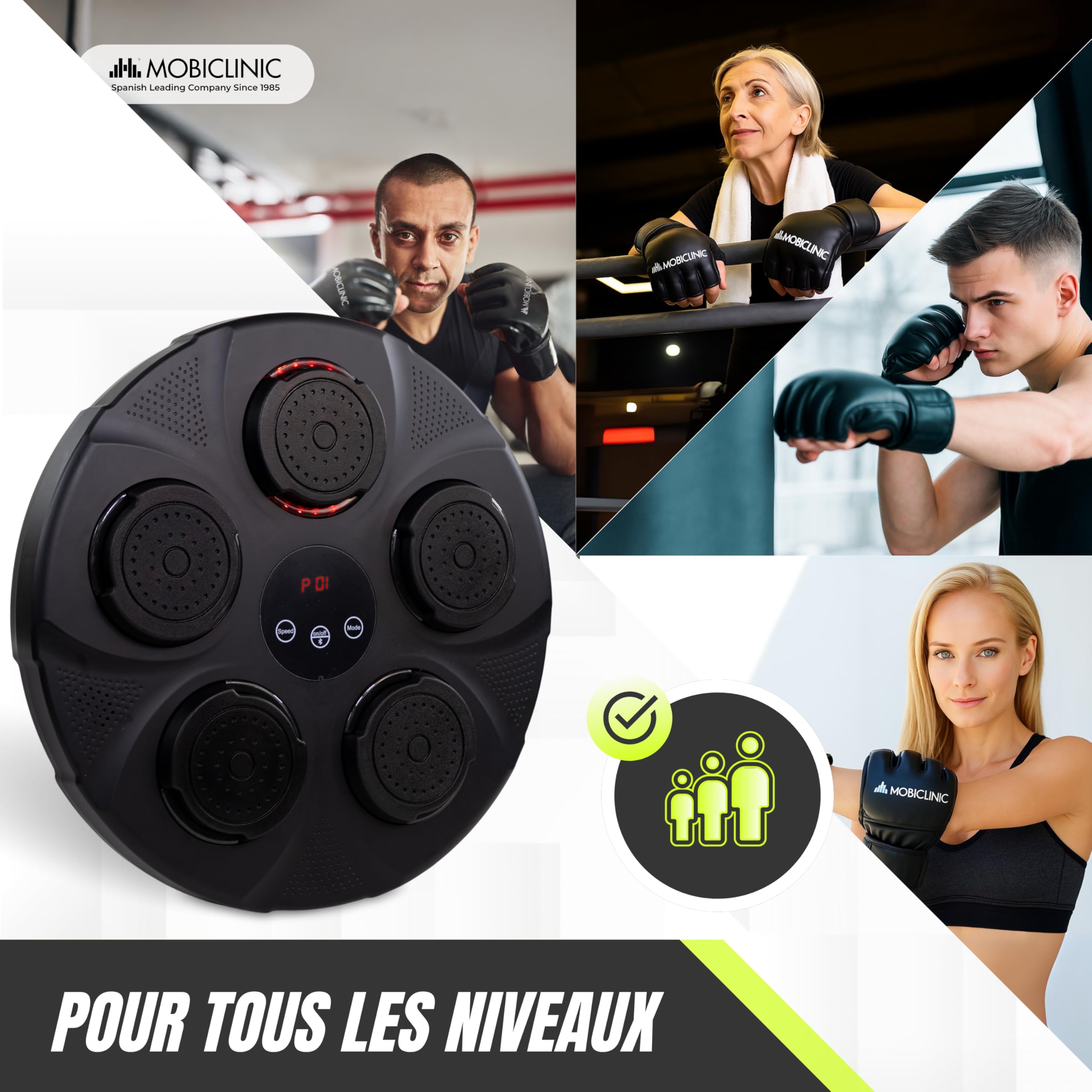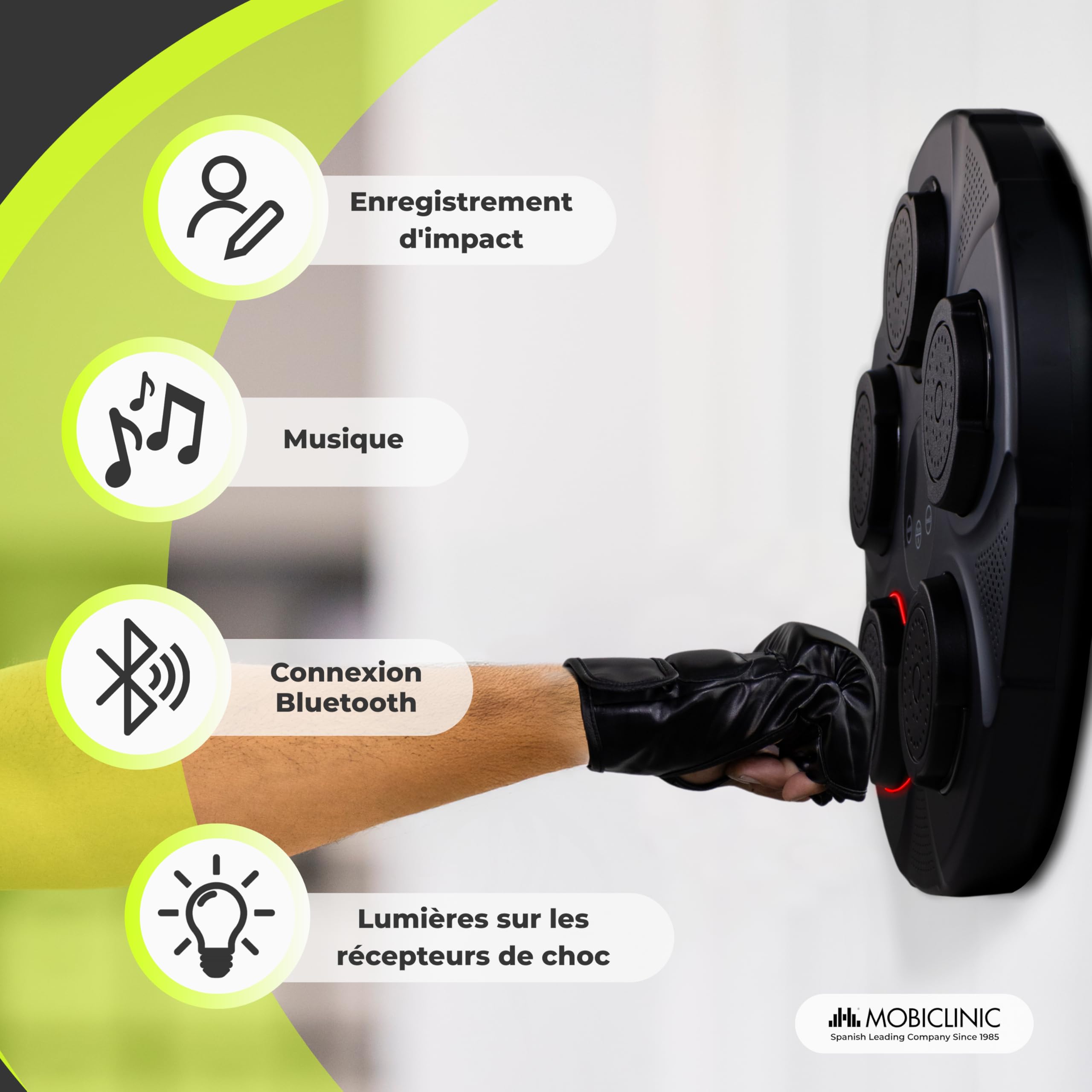 Elle inclut des gants de boxe, une connexion Bluetooth et des lumières LED interactives. Machine de boxe musicale - MOOHOP - 9 réglages de vitesse - Bluetooth 🧤 FACILE À INSTALLER, PRÊTE À L’EMPLOI : Pas besoin d’outils ni de montage complexe. Music Boxing Machine Machine De Boxe Mobiclinic 9 Modes Et Vitesses Comprend Des Punching Ball électronique MusicKangu Son écran numérique permet de suivre vos performances et d’ajuster l’intensité facilement. Installation facile sur toute surface grâce à ses bandes adhésives. Machine de Boxe Musicale avec Gants, Cible Murale de Boxe Électronique Parfait pour les entraînements à domicile : conçue pour tous les membres de la famille... offre qualité et confiance depuis 1985., Marque du Groupe R. Grâce à son écran numérique, vous suivez en temps réel votre intensité et le nombre de coups, idéal pour progresser avec un punching ball électronique Avec connexion Bluetooth, tu peux boxer sur ta musique préférée. 9 vitesses et modes réglables, plus un compteur de coups LED pour suivre tes progrès. La... Sa... 💡 MODES ET VITESSES ADAPTÉS À VOTRE NIVEAU : Cette machine de boxe offre 9 modes et 9 vitesses réglables pour un entraînement personnalisé. L'option idéale pour se défouler tout en s’amusant avec une music boxing machine 🔊 CONNECTEZ VOTRE MUSIQUE POUR RESTER MOTIVÉ : Grâce à la connexion Bluetooth, vous écoutez vos playlists préférées pendant vos séances. Adaptée à tous les niveaux, elle propose 9 modes et 9 vitesses pour personnaliser chaque séance. La machine de boxe musicale idéale pour s’entraîner chez soi , ✔️ MOBICLINIC S., L.