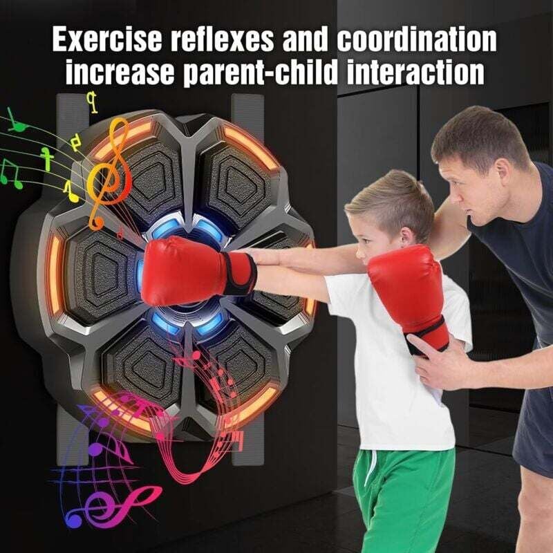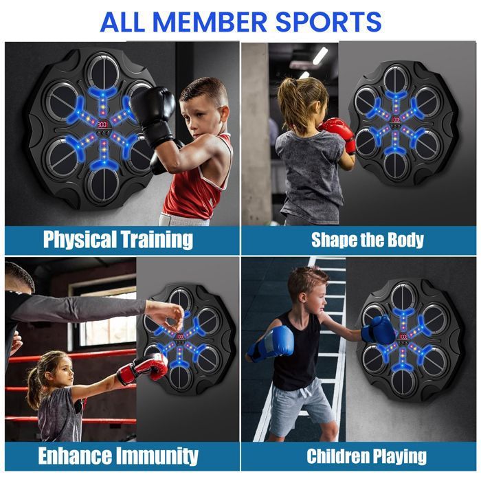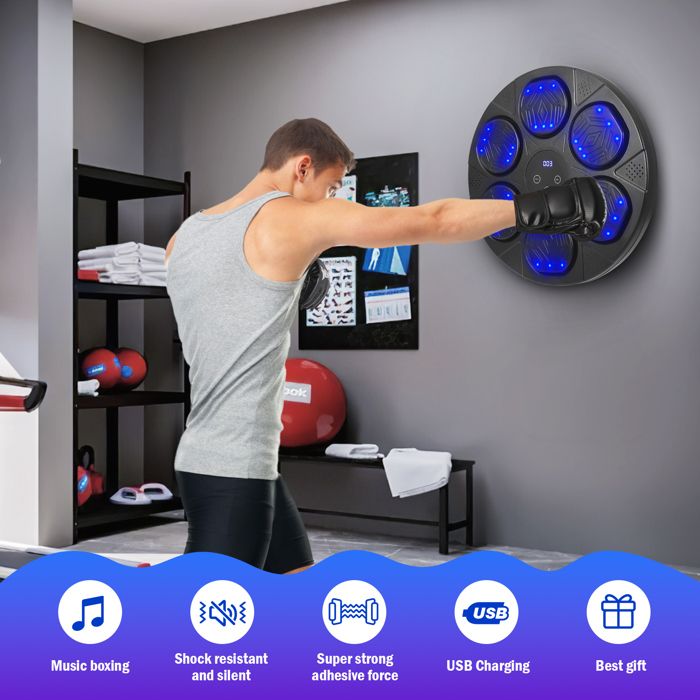 SWBSLL Machine de Boxe Musicale, Boxe Mural Musique avec Gants de 🧤 [Matériaux Sûrs et Confortables] Fabriquée avec des matériaux résistants et amortissants, cette machine de boxe réduit efficacement les risques de blessure pendant l’utilisation. Compteur De Coups Intelligent Ikodm Machine De Boxe Montage Mural Bluetooth Musique Boxing Machine De Jouet Enfant Chaque coup devient une partie du rythme, transformant la boxing machine en un outil d'entraînement interactif et stimulant. Grâce à son système de réglage en hauteur, elle convient aussi bien aux enfants qu'aux adultes TTLIFE Music Boxing Machine Adulte - Cible Boxe Mural Musique avec... 🔋 [Affichage LED et Comptage Intelligent] La machine de boxe se recharge via un port Type-C, rapide et pratique. Les gants inclus, respirants et ergonomiques, offrent une protection optimale et un confort durable, rendant l’entraînement plus agréable pour tous les passionnés de sports de combat. Chaque coup porté sur la cible lumineuse est automatiquement comptabilisé et affiché sur un écran LED intégré, permettant de suivre en temps réel la vitesse de réaction et les progrès. Adatta sia per adulti che per bambini, è una beatpunch machine de boxe musicale versatile per uso domestico o professionale. La hauteur est réglable pour s’adapter à tous les gabarits. La regolazione del volume su 30 livelli permette di personalizzare l’esperienza sonora durante l’allenamento.