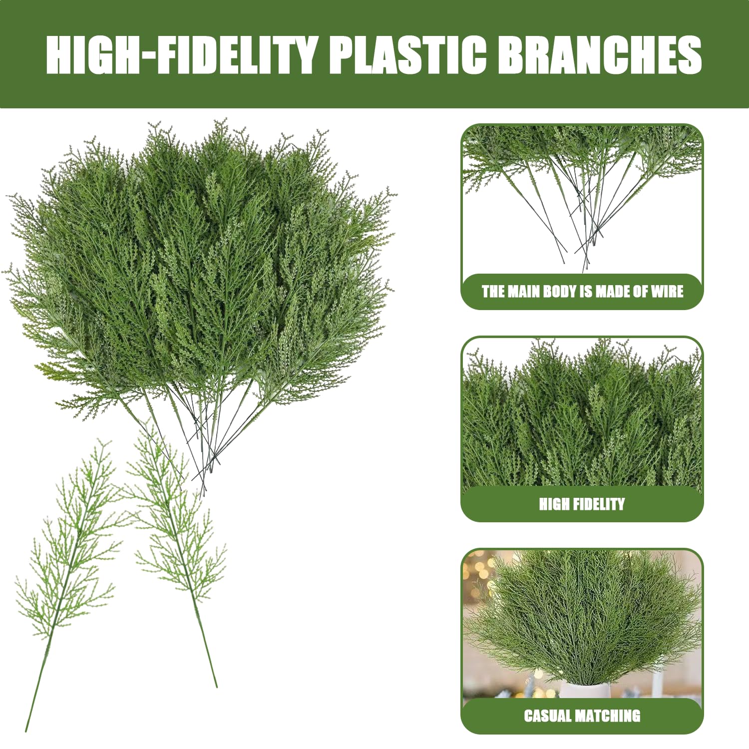 Décoration Mariage Hiver 50 Pièces De Branches De Pin Artificielles Pour Noël On Branche Sapin Artificiel Nous vous répondrons dans les 24 heures. Nous nous efforcerons de vous donner une réponse satisfaisante dans les plus brefs délais ! Les grandes branches de sapin artificielles sont le choix idéal pour les décorations de mariage hivernales, les décorations d'anniversaire, les décorations de Noël et les emballages cadeaux. Éviter tout contact avec les yeux. Description du produit Bienvenue dans la petite boutique de TILONKJ ! Grâce à leur résistance aux intempéries, les branches de pin décoratives conviennent aussi bien à un usage intérieur qu'extérieur. Si vous êtes à la recherche d'idées cadeaux, d'accessoires pour la maison au quotidien ou de petits objets de détente pour enfants et adultes, rendez-vous régulièrement dans la boutique TILONKJ ! Tenir éloigne de toute flamme ou source de chaleur. Dimensions du produit : veuillez vous référer au diagramme des dimensions pour les dimensions détaillées. Luckiner Couronnes de Noël artificielles Couronne de pin Aiguilles en... Dimensions de l'emballage : 33 x 22 x 5,5 cm. Le colis contient : 50 branches de sapin artificielles (34 cm de long). Si vous avez des questions ou des suggestions concernant nos produits, n'hésitez pas à nous contacter par e-mail. Branche de sapin en PE moulé, beschneit 52 cm//sapin vert ⏩【Matériaux Haut de Gamme】Des branches de sapin qui ne se fanent jamais, fabriquées en PE de haute qualité, avec des couleurs vives qui ne s'estompent pas, une surface lisse agréable au toucher et une structure de branches prononcée pour un design extrêmement réaliste. Nous vous prions de nous excuser pour la gêne occasionnée et vous remercions de votre compréhension., 4., Si vous avez des questions ou des suggestions concernant nos produits, n'hésitez pas à nous contacter. Tous les articles sont emballés dans un emballage résistant à l'humidité, à l'oxydation, aux déchirures et entièrement scellé afin de garantir que les petites branches de sapin artificielles vous parviennent en parfait état. Elles peuvent être pliées à plusieurs reprises et se combinent facilement avec d'autres éléments décoratifs pour créer sans effort une couronne raffinée. Précautions d'utilisation : tenir à l'écart de toute source de chaleur., Remarque : 1., Les dimensions sont mesurées manuellement et peuvent présenter de légères erreurs., 2., Vous pouvez utiliser un chiffon humide ou un sèche-cheveux pour éliminer la poussière en surface., 3., Remarque : les branches de sapin artificielles ayant été traitées par pulvérisation de pigments, elles peuvent présenter des résidus odorants. Chaque branche mesure 34 cm de long.