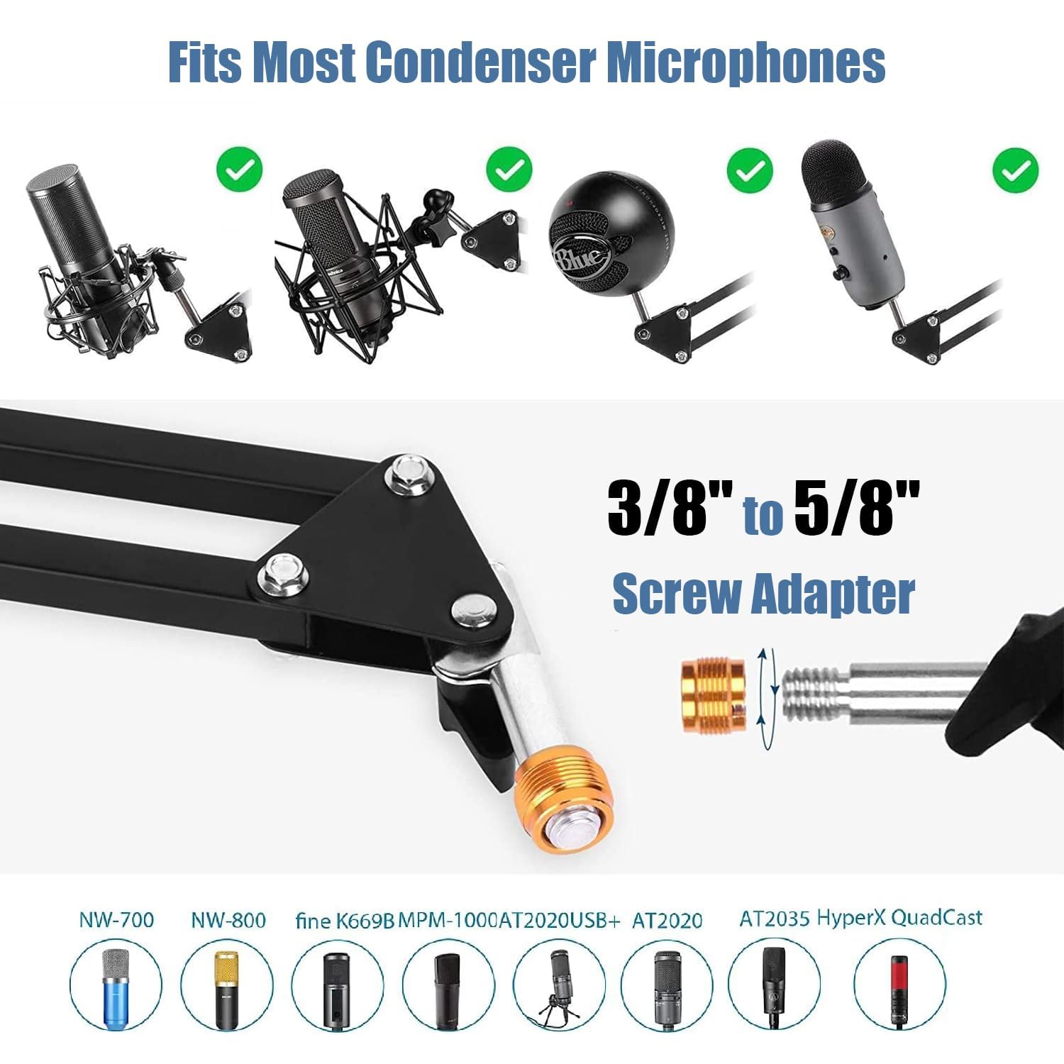 Support De Bras Microphone SUNGOOYUE Support De Bras De Icrophone à Tête Filetée En étal Robuste Support Micro Tête Filetée 1/4 Bras de perche réglable : ce bras de microphone offre un positionnement flexible à 190 degrés pour placer votre microphone exactement là où vous en avez besoin.Le mécanisme d'articulation renforcé maintient fermement la position, offrant une stabilité constante pour vos sessions d'enregistrement Support de bras de microphone - DIOCHE - Professionnel [Conception d'économie d'espace] Libérez un espace de bureau précieux avec cet accessoire incontournable pour les studios à domicile et les stations de radio. Ashata Support de microphone Trépied Boom Microphone Stand... [Matériau durable] Fait de fer avec une excellente capacité de charge pour une stabilité durable et un support de suspension. [Angles réglables] Ajustez facilement l'angle pour présenter votre voix parfaite avec la conception du trou à vis 1/4 pour le positionnement polyvalent. [Fixation stable] Empêchez les oscillations et assurez-vous un placement de microphone constant dans n'importe quelle position pour des enregistrements plus rapides. [Installation facile] Configuration rapide et sans effort sans endommager votre bureau.