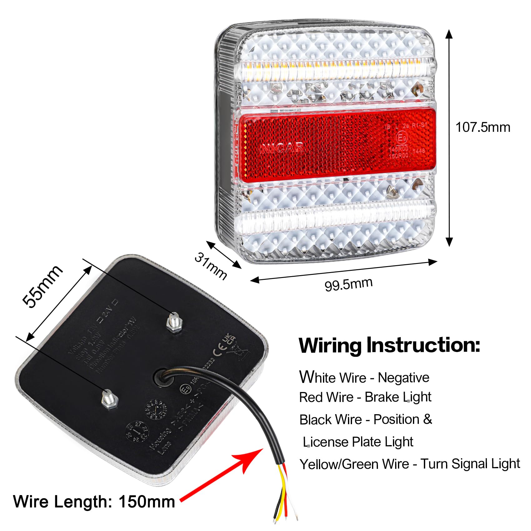 DWW-Feux Arrire De Remorque Magntique, 12V Incandescent Feux De Remorque Avec 7 Broches Et 75m Cble Feux Arrire Feux Stop Clignotant Feux De Plaque Distinction entre feu arrière gauche et droit : vérifiez la position du clignotant, sur le côté gauche, c'est le feu arrière gauche, sur le côté droit, le feu arrière droit Feu Clignotant Frein Position Feu Arrière De Brouillard Lot De 2 Feux Arrière 12 V Pour Remorque, Camion, Caravane, 26 LED, Clignotant, Indicateur Freinage, Plaque D'immatriculation, Recul. Feu Arrière Feu Remorque Ampoules Remplaçables Câble gris - Feu de recul. LED Plaque de Feux Remorque Sans Fils - Magnétique, Rechargeable... FEUX ARRIÈRE LED Néon Clignotant Séquentiel 12/24V E9 pour Camion... Caractéristiques techniques des feux arrière : tension 12 V universelle, température de fonctionnement -40 °C ~ + 65 °C. Qualité supérieure : Certifié ECE, c'est-à-dire que la qualité et la sécurité du produit sont garanties et conformes aux normes britanniques et européennes. Aide et Service : si vous avez des questions sur l'utilisation du produit, n'hésitez pas à nous contacter, nous vous répondrons dans les plus brefs délais et vous proposerons une bonne solution. Câble vert - Feu clignotant droit. Design Amovible: Chaque feu arrière dispose de 4 ampoules intégrées, la lumière est clairement visible et augmente votre sécurité de conduite. Câble marron - Feu de position droit et éclairage de plaque d'immatriculation., Câble blanc - GND.