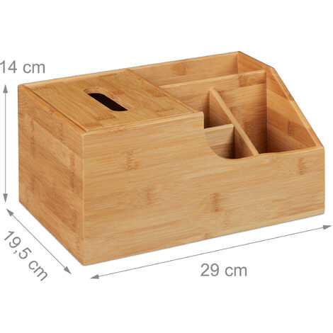 Compartiments : Rangement en 3 compartiments - Idéal pour trier les chouchous, les barrettes, etc 3 compartiments pour trier produits de maquillage et cosmétiques Rangement Maquillage Tiroir Relaxdays Organiseur De Bureau, 2 Compartiments Ouverts, Bambou & MDF Organisateur Pour Produits Beauté Relaxdays Organiseur à maquillage, lot 2, plastique, produits beauté, pinceaux, accessoires... Organiseur de maquillage Design transparent permettant une vue d’ensemble sur le contenu du rangement Rangement avec couvercle en bambou Cet organiseur en trois compartiments permet un rangement ordonné de vos produits cosmétiques et accessoires de maquillage. Rangement à maquillage avec couvercle en bambou Pour le rangement de salle de bain ou coiffeuse 7,5 x 23 x 9,5 cm - Chaque compartiment HxLxP: env., 5,5 x 7 x 8,5 cm Rangement en plastique simplement à nettoyer à l’eau courante Que vous soyez à la recherche d’un rangement pour votre maquillage, vos fards à paupières, votre poudre etc ou de compartiments pour stocker cotons et divers accessoires, cet organiseur est polyvalent et saura répondre à vos besoins ! Design intemporel : Support transparent en plastique - Couvercle en bambou pour une touche naturelle Matériaux : plastique, bambou , Couleurs : transparent, nature 3 compartiments : boîte à bijoux avec niveaux rotatifs à 360 degrés - accès facile - protection contre la poussière grâce au couvercle Détails Couvercle en bambou pour apporter une touche naturelle et moderne Contenu de livraison 1 x Organisateur à maquillage Pratique : Organiseur pour salle de bain et coin coiffeuse - Simplement à nettoyer à l’eau De plus, le design intemporel de ce rangement composé d’un couvercle en bambou convient à n’importe quelle salle de bain ou coiffeuse. Relaxdays Pot de rangement avec couvercle, lot de 3, bambou, plusieurs