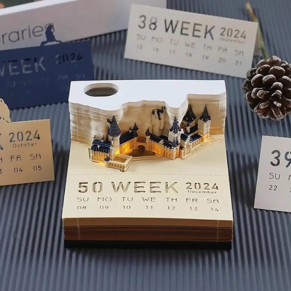Calendrier Avec Lumière Cadeau Calendrier De Bureau 3D 2026, Arbre Décor Bureau | Sculpture Calendrier 3d 2026 Calendrier 2026 · Sculpture château en papier · Bloc-notes Polyvalent et pratique : ce calendrier de bureau 3D enregistre non seulement vos plans quotidiens, mais sert également de porte-stylo, de marque-page et même de décoration de bureau Pages 170Contenu de l’emballage : 1 bloc-notes 3D1 boîte de présentation1 coffret cadeauRemarque :1., Les mesures étant prises à la main, une marge d’erreur de ± 1 cm peut exister., 2., La couleur peut varier en fonction de la résolution de l’écran. Matériaux de haute qualité : notre bloc-notes tridimensionnel est fabriqué en papier de haute qualité respectueux de l'environnement, mettant en valeur l'art de la sculpture sur papier fin à travers des papiers décoratifs multicolores et des formes fascinantes Souvenir DIY : œuvre d'art en papier, écriture fluide, sans fuite d'encre. Dimensions : 9 x 9 x 5 cm. Largement applicable : ce bloc-notes est non seulement un calendrier hebdomadaire pratique pour marquer les anniversaires et les événements, mais peut également être utilisé comme porte-stylo, marque-page, calendrier de bureau et décoration Cadeau parfait : chaque lot comprend le calendrier 2026 château enchanté 3D (170 pages, 52 semaines), une boîte en acrylique et une belle boîte cadeau. Un emballage soigné garantit que le produit arrive intact et en fait également un choix de cadeau idéal Cadeau idéal : le calendrier 2026 est un choix phénoménal pour les anniversaires et les fêtes spéciales. Convient aux personnes de tous âges. Offrez un cadeau d'imagination et de praticité illimités pour Noël, Thanksgiving, un anniversaire, la Saint-Valentin et bien plus encore. Voir plus de détails