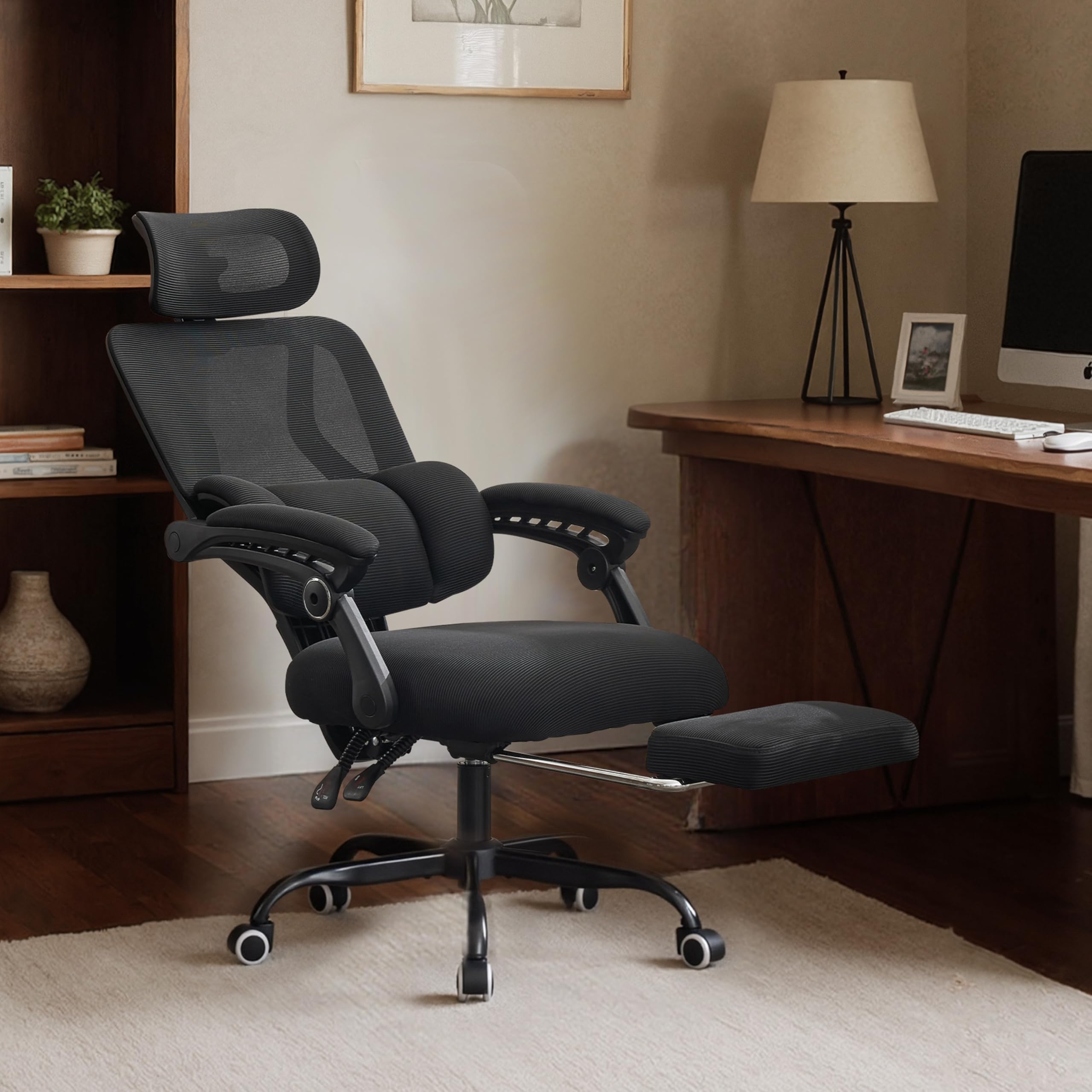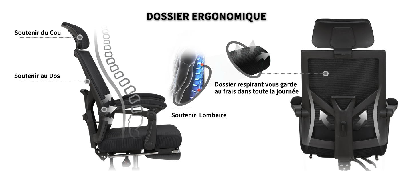 UEV Chaise de bureau ergonomique - Fonction bascule - Charge Cela vous permet de la ranger facilement sous votre bureau après utilisation, pour un gain de place. Chaise Bascule Confort UEV Chaise De Bureau Ergonomique, Fauteuil Avec Appui-tête Et Repose Chaise Bureau Ergonomique 【Réglage Flexible】Les accoudoirs de la chaise de bureau peuvent être soulevés et placés de part et d'autre du dossier de la chaise. Parfaitement adapté à vos besoins : Avec un réglage en hauteur de 8 cm, le siège s'adapte à toutes les morphologies. Actionnez simplement le levier, c'est un jeu d'enfant et sans outils. Le dossier peut être verrouillé en position verticale ou doté d'une fonction de bascule pour le soulagement Chaise de bureau en cuir ergonomique TRAHOO - Fonction bascule 135... 【Stable et Robuste】La chaise de bureau utilise une base en métal, dure et résistante à la déformation, créant une base solide pour la structure globale. De courtes périodes de balancement peuvent vous aider à vous détendre, à améliorer votre confort au repos et à augmenter votre concentration au travail. Sa capacité de charge maximale est de 150 kg et elle reste stable même en position assise prolongée. Le soutien lombaire spécial épouse parfaitement la taille, réduisant ainsi la pression sur la colonne vertébrale. Cela améliore le confort, réduit l'inconfort causé par la transpiration et contribue à maintenir l'efficacité au travail. 【Conception Ergonomique】Nos chaises sont conçues selon les dernières normes ergonomiques.