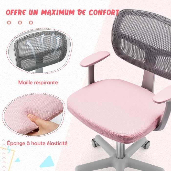 【Design facile à déplacer】5 roulettes universelles permettent à votre enfant de déplacer facilement cette chaise multifonctionnelle. Ajustez la hauteur avec précaution en tirant sur le levier. Chaise 5 Roulettes 150kg COSTWAY Chaise De Bureau Pivotante Avec Siège Rembourré Large, Bascule Chaise Bureau Sans Accoudoirs La surface en maille respirante garde votre enfant frais et confortable toute l'année, tandis que le large dossier ainsi que la mousse haute résilience garantissent aucune fatigue même après de longues heures assis. COSTWAY Chaise de Bureau Ergonomique Pivotante à Haut Dossier Réglable COSTWAY Chaise de Bureau Pivotante Enfants avec Hauteur Réglable 80... 【Assise confortable】La surface de la chaise est en tissu en maille, très respirante et gardant l'utilisateur confortable en toute saison. 【Design ajustable en hauteur】Notre chaise est ajustable en hauteur de 77 à 89 cm, ce qui la rend adaptée aux personnes de différents âges et tailles. Et le coussin en mousse haute densité peut vous faire sentir aucun fatigue. Conçue pour offrir un soutien optimal lors de longues heures de travail ou d'étude, cette chaise présente un design ergonomique qui s'adapte parfaitement aux courbes des enfants et répartit la pression sur le corps. La base stable à 5 étoiles rend notre chaise de bureau plus fiable. Description du produit Description : Mettez à niveau votre bureau ou votre espace d'étude avec notre chaise de bureau en maille ergonomique.