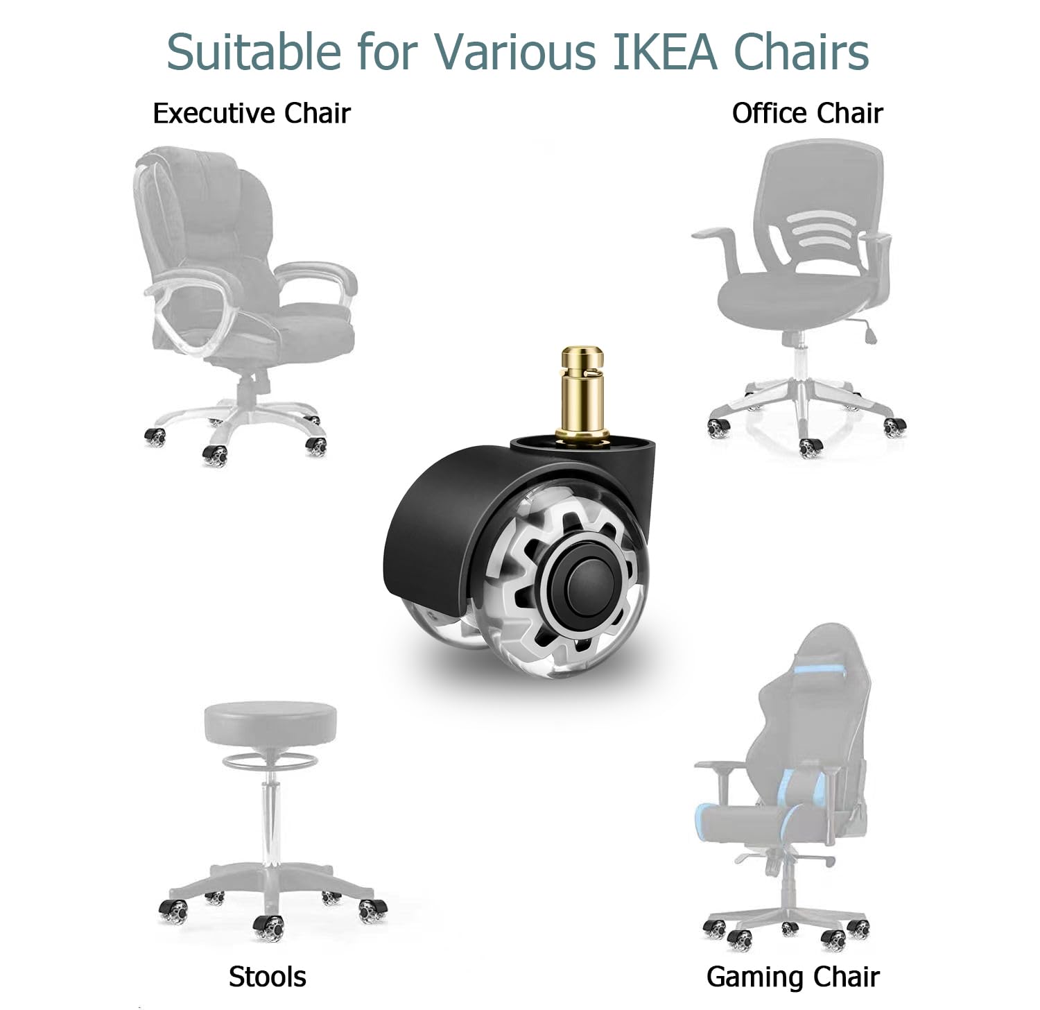 Vous pouvez choisir la taille après avoir mesuré le diamètre de l'ancienne barre de roulement. Cela évite un mauvais ajustement. Rotation à 360° Les roulements sur les roues de la chaise de bureau assurent une excellente maniabilité, de sorte que vous pouvez vous déplacer en douceur à 360° sur n'importe quel sol. Convient aux chaises de bureau 1KEA ou à un petit nombre d'autres marques. Capacité de charge élevée Chaque roue dispose d'un roulement à billes de précision de haute qualité avec une capacité de charge totale de 500 kg, sûr à utiliser et durable. Champ d'application général : ces barres de roulettes de chaise de bureau de qualité supérieure mesurent 10 (±0,15) mm x 22 mm. Convient aux chaises de bureau 1KEA ou à un petit nombre d'autres marques. Vous pouvez choisir la taille après avoir mesuré le diamètre de l'ancienne barre de roulement Il suffit de retirer les anciennes roulettes de chaise de bureau et de glisser les nouvelles roulettes de rechange pour chaise de bureau et elles sont déjà montées. Champ d'application général : ces barres de roulettes de chaise de bureau de qualité supérieure mesurent 10 (±0,15) mm x 22 mm. Die 11mm x 22mm Bürostuhlrollen sind für die meisten normalen Bürostühle geeignet, jedoch nicht für IKEA-Bürostühle. Roulettes Chaise 10x22 Mm Argenté Roulettes Pour Chaise De Bureau,Roulettes De Chaise De Remplacement À Roulettes Silencieuses Sol Dur Tapis Lot de 5 roulettes pour chaise de bureau - 10 x 22 mm - Pour chaises de jeu - Roues de rechange pour sols durs, parquet, tapis, stratifié et carrelage - Pas... Installation facile : aucun outil n'est nécessaire pour l'installation, elle peut être effectuée manuellement. Équipée de deux roulements de précision à double bille transparents et d'un pneu en polyuréthane absorbant les chocs, la chaise ne perturbera pas les autres par le bruit lors du déplacement pour garder votre chaise en parfait état, une option économique qui ne nécessite pas l'achat d'une nouvelle chaise. Capacité de charge : les roulettes de chaise de bureau peuvent supporter jusqu'à 1 000 livres, ce qui les rend idéales pour les personnes plus lourdes. Vous pouvez également l'installer pendant les appels car cela ne prend que 5 minutes et votre chaise sera comme neuve. Roues Bureau Protection Sol 5 Roulettes COSYLAND Pour Chaise Bureau - Silencieuses 11x22mm Pour Parquet Roue Chaise De Bureau Protection du sol : que vous utilisiez nos roulettes pour chaises de bureau sur les revêtements de sol, la moquette, le carrelage ou le bois, les roulettes améliorées en caoutchouc polyuréthane amortissant les chocs protègent votre sol des rayures et des marques et économisent ainsi de l'argent. N'endommage pas les sols Amtake Chaise de bureau universelle Roues Lot de 5 - Noir Largeur des roues : 58 mm - Diamètre des roues : 50 mm - Hauteur de montage : 59 mm - Hauteur des pôles : 22 mm - Diamètre de la tige : 10 mm environ Matériau : alliage Polyuréthane (PU) Setzen Sie die neuen Stuhlrollen ein.
