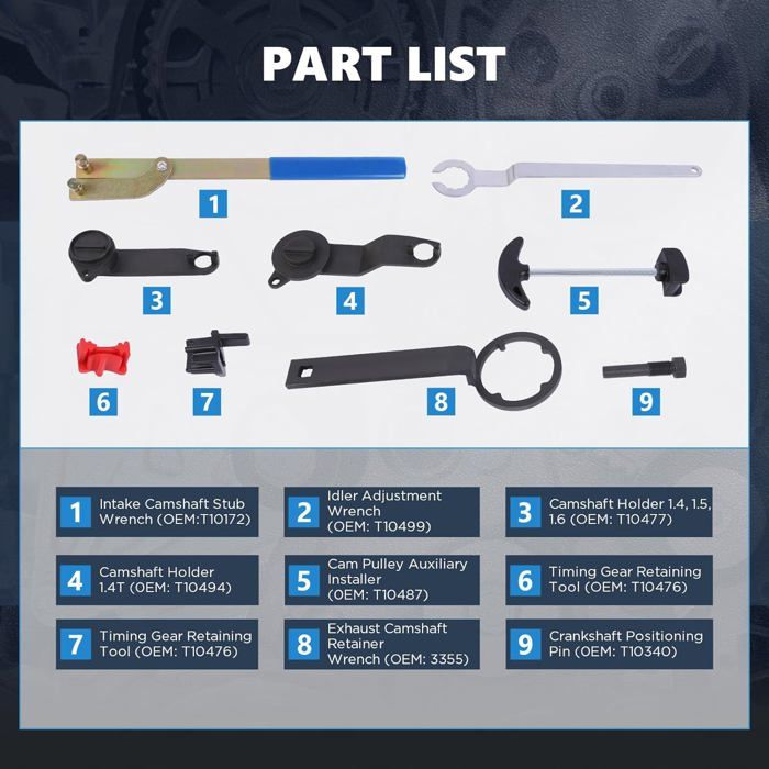 Large Compatibilité Moteur, Le kit est compatible avec une variété de moteurs, y compris ceux dotés de courroies et de chaînes. Pour Courroie Et Chaîne Kahaybeall Kit De Calage De Distribution Complet, Pige De Calage Calage Distribution Compatibilité Étendue avec Divers Moteurs : Ce kit est compatible avec plusieurs moteurs, y compris ceux à courroie de 1., 25 16 V, 1., 4 16 V, 1., 6 16 V, et 1., 8 16 V, ainsi que les modèles à chaîne tels que les 1., 8 16 V, 2., 0 16 V et 2., 3 16 V. Adapté à un Usage Professionnel et Personnel : Conçu pour répondre aux besoins des professionnels et des bricoleurs, ce kit d’outils de verrouillage d’arbre à cames est idéal pour toute application. Vous n’avez pas besoin d’un niveau d’expertise élevé pour l’utiliser, ce qui en fait un choix idéal pour quiconque souhaite réaliser des travaux d’entretien sur leur véhicule. Ensemble Complet avec Outils Prêts à l’Emploi : Le kit comprend 5 pièces d’outils spécialement conçues pour faciliter le processus de calage de distribution. KIT CALAGE DISTRIBUTION POUR OPEL 1.0 - 1.2 - 1.4 L - Auto Outil pour Professionnels et Bricoleurs, Ce kit a été conçu en pensant à la flexibilité d’utilisation. Ensemble Complet Prêt à Utiliser, Inclus dans le kit, vous trouverez 5 outils essentiels qui répondent à tous vos besoins de calage de distribution. Praticité et Efficacité, L’outil de calage de distribution vous permet de maintenir les composants du moteur en place pendant toute la durée de l’opération. Que vous soyez un mécanicien chevronné ou un amateur, cet ensemble vous permettra d’effectuer des réparations de manière précise et efficace, économisant du temps et des efforts. Avec tout ce dont vous avez besoin dans un seul coffret, vous pouvez réaliser vos réparations rapidement et efficacement, vous évitant d’avoir à chercher des outils supplémentaires dans votre atelier. Piges réglage / calage distribution | Alfa / Fiat 1.2 / 1.4 16V essence KIT CALAGE DISTRIBUTION POUR RENAULT ESPACE OPEL MOVANO VIVARO NISSAN... Conçu pour être utilisé sur divers modèles de voitures, ce kit d’outils de calage vous permettra de travailler en toute confiance sur la courroie de distribution de votre moteur. Que vous soyez un professionnel de l’automobile ou un particulier, vous apprécierez son caractère intuitif et son efficacité. Grâce à cet outil, vous pouvez garantir que toutes les pièces du moteur restent en place, minimisant ainsi le risque de dommages internes et assurant un fonctionnement optimal après la réparation. Le Kit de Calage de Distribution Complet est l’outil indispensable pour toute personne souhaitant effectuer des réparations de moteur avec précision et fiabilité.