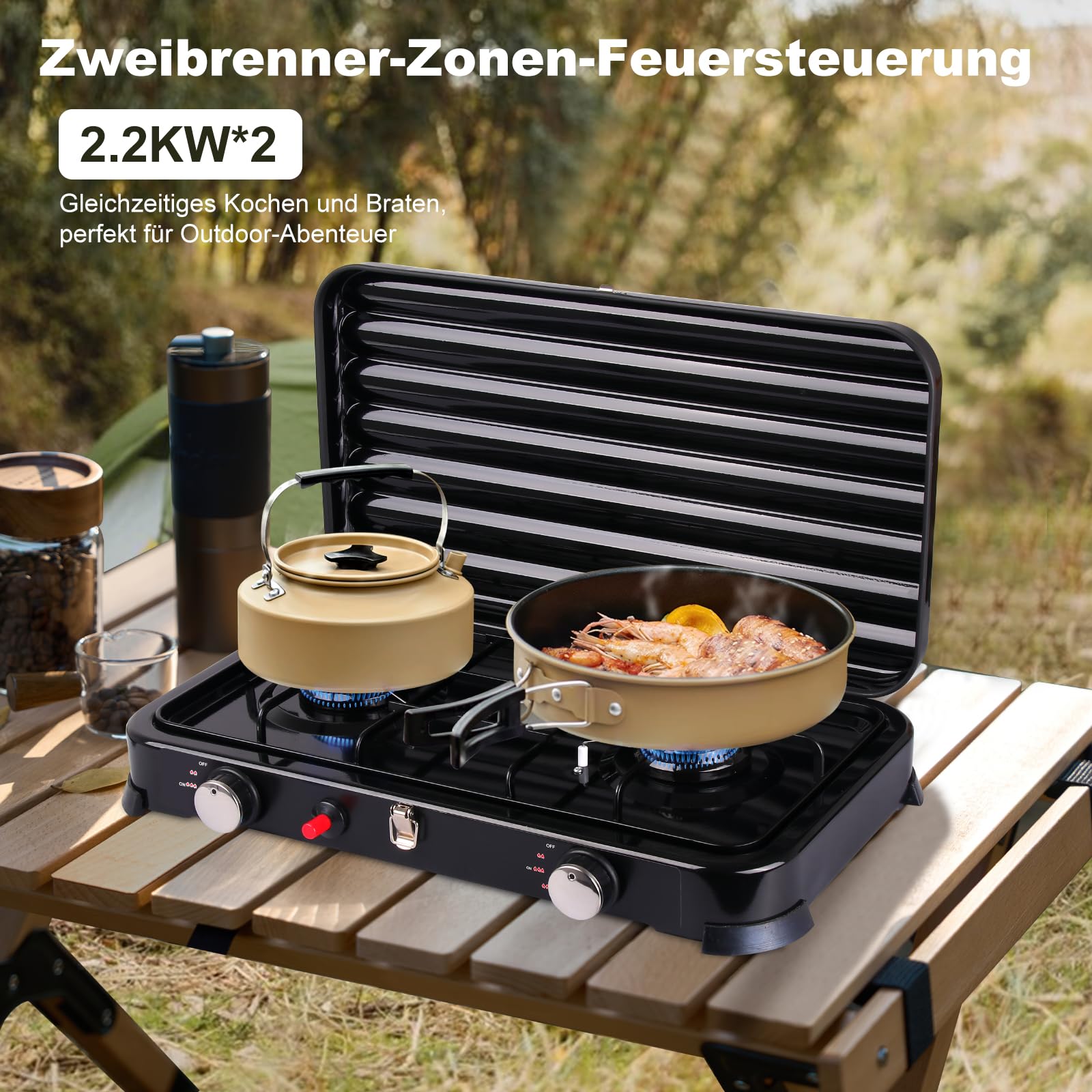 La plaque de cuisson amovible permet un nettoyage rapide. 【Durabilité et Facilité de Nettoyage】: Fabriqué en acier laminé à froid durable. Le Réchaud à Gaz Portable ATLAS MOUTAIN est un choix fiable pour les amateurs de camping et d'activités en plein air. Avec ses 2 feux de 2200W chacun, il offre une puissance totale de 4400W, garantissant une cuisson rapide et efficace où que vous soyez 【Nouvelle Version du Réchaud de Camping 2 Brûleurs】 : Contrairement aux réchauds au butane traditionnels, ce nouveau modèle de réchaud de camping portable est doté d'une coque à 2 brûleurs, ce qui le rend ultra-portable et facile à ranger et à emporter partout. Haute qualité, durabilité et facilité d'entretien Fabriqué en acier laminé à froid durable. Idéal pour préparer des œufs, des hamburgers, des steaks, du pain et des légumes. Dimensions dépliées : 48,8 x 23 x 7,25 cm. Montage et démontage en quelques secondes. Réchaud A Gaz Decathlon Réchaud De Camping, Réchaud à Gaz 2-En-1 4400W 2 Brûleurs Réchaud De Camping Decathlon Il a passé les tests CSA et CE et est certifié de sécurité. Réchaud gaz 2 feux 4400w inox portable avec thermocouple interieur - exterieur allumage piezo... 【4400 W, Deux Brûleurs Puissants et Très Efficaces】: Ce réchaud de camping à gaz peut accueillir deux casseroles de 20 cm et est équipé d'un allumage piézoélectrique et de brûleurs scellés. 【Réchaud de Camping Pliable et Ultra-portable】: Dimensions pliées : seulement 24 x 23 x 11,5 cm pour un poids inférieur à 2,48 kg. Tuyau gaz flexible, facile à déplacer, plus sûr et sans souci pour chauffer la bouteille gaz. Réchaud à gaz 2 feux 4400W INOX + Cartouches de gaz ALPEN Camping 【Certificat de Sécurité】: Un réchaud de qualité ; sa construction solide et son assemblage impeccable. Les poignées et les plaques cuisson intégrées permettent un transport aisé, idéal pour les aventures spontanées. Une sonde d'un mètre est incluse, ainsi qu'une plaque de cuisson et des pinces supplémentaires. Ce réchaud de camping très efficace offre une puissance de 2200 W, soit un total de 4400 W pour les deux brûleurs, permettant de faire bouillir de l'eau en un rien de temps. Grâce à un adaptateur propane à pression régulée, la flamme reste stable pour une sécurité accrue. Certification sécurité Un réchaud qualité ; il est solidement construit et tout s'assemble parfaitement. Le réchaud est très facile à installer, à entretenir et à nettoyer, car toutes les pièces principales sont faciles à démonter, nettoyer et remonter. Compatible avec les cartouches gaz isobutane ou isobutane-mélange. Livré avec un sac transport pour ranger tous les accessoires. Le tuyau de gaz flexible est facile à déplacer pour plus de sécurité, vous assurant une tranquillité d'esprit lors du chauffage de la bouteille.