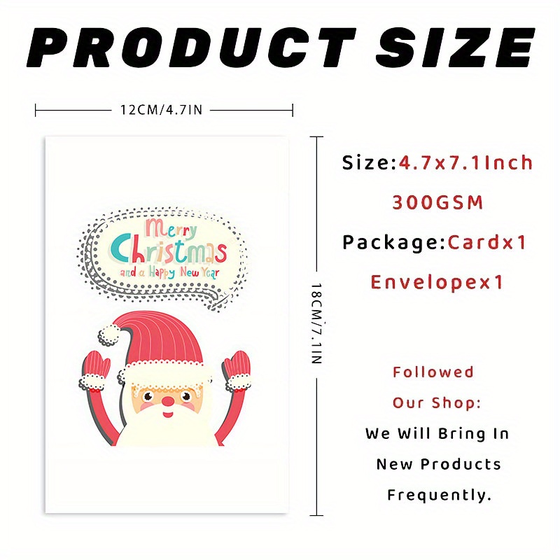 Taille de la carte de vœux : environ 17,1 x 20,9 cm. Design : chaque carte de Noël présente des éléments de vacances distinctifs tels que les arbres de Noël, les rennes, les bonshommes de neige et le Père Noël... Liste 1 jeu de cartes de Noël., Remarque : 1., En raison des effets d'éclairage et des angles d'affichage, il peut y avoir des différences de couleur dans le produit., 2., En raison de la mesure manuelle, il peut y avoir des erreurs dans la taille du produit, merci de votre compréhension. Partagez l'esprit de Noël grâce à ces cartes de vœux polyvalentes. Kaartjes De Noel Gratis Kit De Cartes De Vœux De Noël Avec Numéros 5D Père Noël Nouvel An Avec Cartes Bas De Noël Cadeau Emballage : 6 cartes, 6 enveloppes, 6 autocollants. Les cartes de vœux de Noël avec enveloppes sont fabriquées à partir de papier de haute qualité et présentent des motifs assortis pour répondre à différents goûts. Dimensions de l'emballage : environ 20,3 x 23,5 cm. Ensemble de cartes tout compris : ce lot de cartes de Noël et enveloppes offre une solution complète de cartes de vœux de vacances, permettant aux utilisateurs d'exprimer une joie festive sans effort tout en gagnant du temps sur la recherche de composants individuels, parfait pour les réunions de famille et les célébrations saisonnières Grandes cartes vierges pour la créativité : conçues pour accueillir des notes significatives, ces grandes cartes vierges offrent suffisamment d'espace pour les vœux de bricolage, permettant aux utilisateurs d'exprimer des sentiments distinctifs qui renforcent les liens avec la famille et les amis lors d'occasions spéciales de vacances Idéales pour envoyer des vœux chaleureux pendant les vacances, ces cartes conviennent à différents environnements, y compris la maison, le bureau, l'école et les décorations de fête. Caractéristiques : Nom du produit : lot de cartes de Noël. Carte de Noël virtuelle gratuite : répandez la joie Les guirlandes illuminent les rues, les chants résonnent dans les maisons, le feu de cheminée réchauffe les coeurs, le sapin décoré trône dans le salon... Voilà les ingrédients d'une carte de Noël réussie ! Sans oublier les cadeaux emballés avec soin, les rires en famille et la magie des retrouvailles sous la neige qui font de ce... Ces cartes comprennent de superbes autocollants qui ajoutent une touche festive parfaite pour la saison des fêtes. Sélection de cartes joyeux : les cartes de vœux festives présentent six délicieuses options sur le thème de Noël, fusionnant des motifs de vacances classiques avec un esprit joyeux, vous permettant de créer des liens significatifs et de partager la joie saisonnière tout au long de la période de célébration de Noël Carte De Noël Avec Ensemble D'Enveloppes, Carte De Joyeux Noel 3D Pop