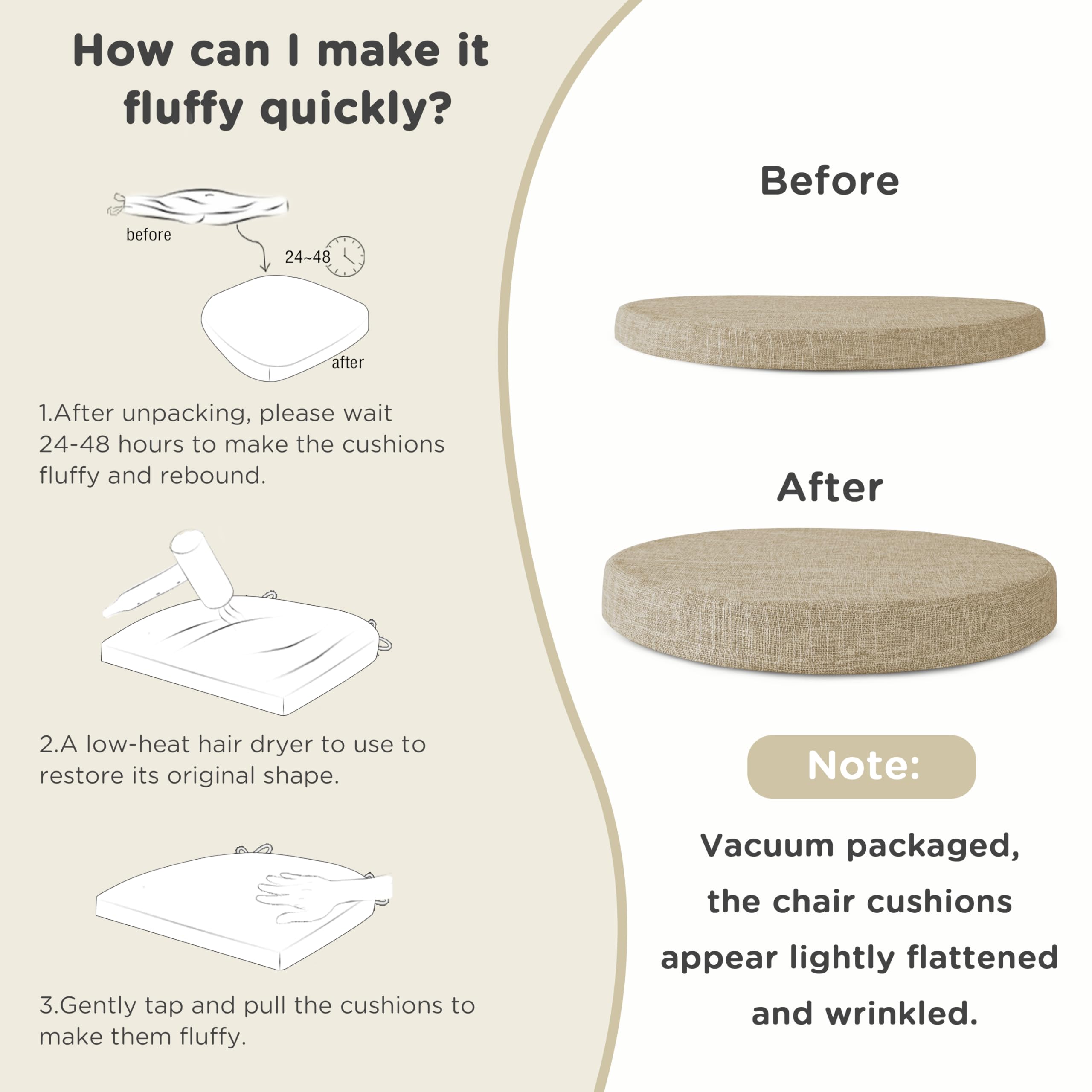Housse Amovible Lavable Coussin De Chaise Rond Duo Ecru - Déco Textile AddGrace Coussin Confort Largement utilisé : ces coussins de chaise ronds pour chaises de salle à manger sont disponibles dans une variété de couleurs et peuvent décorer chaque coin de votre vie, tels que le salon, la salle à manger, la chambre, etc. Coussin de chaise rond rembourré - Coussin de chaise doux pour jardin... Mesurant 40,6 x 40,6 x 5,1 cm, ces coussins sont conçus pour s'adapter parfaitement à la plupart des chaises, assurant un complément parfait à vos assises. Pour un toucher plus moelleux, appuyez et tapotez doucement après le déballage pour restaurer leur forme originale et leur confort. Améliorez votre expérience culinaire avec les coussins de chaise ronds AddGrace – où le confort rencontre le style Points forts : Tissu et rembourrage de qualité supérieure Housse en tissu 100 % polyester et rembourrage en mousse de haute qualité pour une douceur et une durabilité supérieures., Coupe universelle. Taille : ce coussin de chaise de salle à manger rond mesure 41 cm et est adapté à la plupart des chaises de bureau, chaises de salle à manger, tabourets de bar, chaises d'avion, etc. Matériau : l'extérieur de ce coussin de chaise bistrot est fabriqué en faux lin, confortable et respirant, ne bouloche pas et ne se décolore pas facilement, et est polyvalent tout au long des quatre saisons. L'intérieur est composé d'éponge haute densité, qui a un bon soutien et ne s'effondre pas facilement. Coussin De Chaise Rond En Coton Doux - 10 À 12 Cm D'Épaisseur - Pour