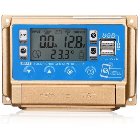 Regulateur MPPT Epever 12v / 24v 30A 100v maxi LCD XTRA3210N Contrôleur de charge solaire: puce principale de qualité industrielle, précision d'échantillonnage de 16 AD, température, courant de charge, affichage précis en temps réel du courant de décharge. La tension du panneau solaire contient un panneau solaire 12 V, 18 V, un panneau solaire 24 V, 36 V. Reconnexion de décharge: 12,6 V (par défaut, réglable). Fonction de suivi: chargement de... Régulateur USB Bluetooth Panneau Solaire Minifinker Régulateur De Charge Solaire 30A MPPT Régulateur De Charge Regulateur De Charge Solaire Mppt Eieenotee Nom: Contrôleur solaire BluetoothAffichage: écran LCDTension nominale: 12 V/24 V/36 V/48 V/60 VCourant de veille: moins de 10 mASortie USB: 5 V/2 A maxTempérature de fonctionnement: -10℃-+60℃Couleur: comme indiquéMatériau: plastique + aluminiumSpécification: 30AEn raison des différents lots de produits, l'apparence peut varier, ce qui n'affecte pas l'utilisationContenu du colis:1 * Contrôleur de charge solaireSeul le paquet ci-dessus, les autres produits ne sont pas inclus. L'erreur de mesure permis est de +/- 1-3 cm. 12V/24V Contrôleur de Charge Régulateur Panneau Solaire MPPT de... Note: réflexion de lumière et différents écrans peuvent causer la couleur de l'article dans un peu différente de la vraie chose. Compatibilité système universelle: Conçu pour les systèmes solaires, avec deux sorties USB, il est pratique de charger des appareils tels que des smartphones, des tablettes et des PC directement depuis votre installation solaire Améliorer l'efficacité: suivi intelligent MPPT, charge/mise au point automatique, contrôle intelligent, prise en charge du téléchargement de l'application, télécommande Bluetooth Ce contrôleur peut non seulement améliorer l'efficacité du système, mais également prolonger la durée de vie de la batterie