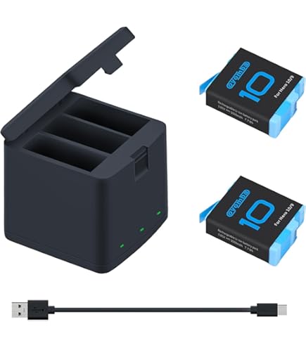 REYGEAK Chargeur triple portable Pratique pour charger 3 batteries GoPro simultanément, et stocker deux cartes mémoire en même temps ; suffisamment compact pour se glisser facilement dans un sac à dos, câble de chargement de type c inclus 【Protection de sécurité】 : système de protection intelligent en 8 points : protection contre la surcharge/décharge excessive, contrôle de la température (température de fonctionnement de -10 °C à 45 °C), protection contre les courts-circuits/surtensions, technologie de stabilisation de la tension. 【Kit d'accessoires complet】 : Le paquet contient : 3 batteries rechargeables haute capacité de 1800 mAh ; 1 station de charge rapide (entrée USB-C) ; 1 câble de charge. Station Charge LED Câble Type-C Kit De Chargeur De Batterie Pour GoPro Hero 12 11 10 9 Noir Dual Battery Charger 【Station de charge double intelligente】 : le chargeur unique et compact est livré avec un couvercle fermé, peut stocker et charger 3 batteries simultanément, avec un affichage LED intelligent, rouge pour la charge, vert pour la charge complète. Batterie Rechargeable GoPro pour Hero 4 - Accessoire caméra - Achat... 【Compatibilité totale avec la batterie Hero】La batterie Wikinu est entièrement compatible avec les modèles Hero 12 Black, Hero 11 Black, Hero 10 Black et Hero 9 Black. Gopro Hero 10 Vemico Hero 11 Batterie Chargeur Kit 3 Pack 1800mAh Hero 10 Batterie Type-C LED 3-Canaux Chargeur AHDBT-901 Pour Hero 12 Black/Hero 11 Black/Hero 10 Black/Hero 9 Black Go Pro Hero 10